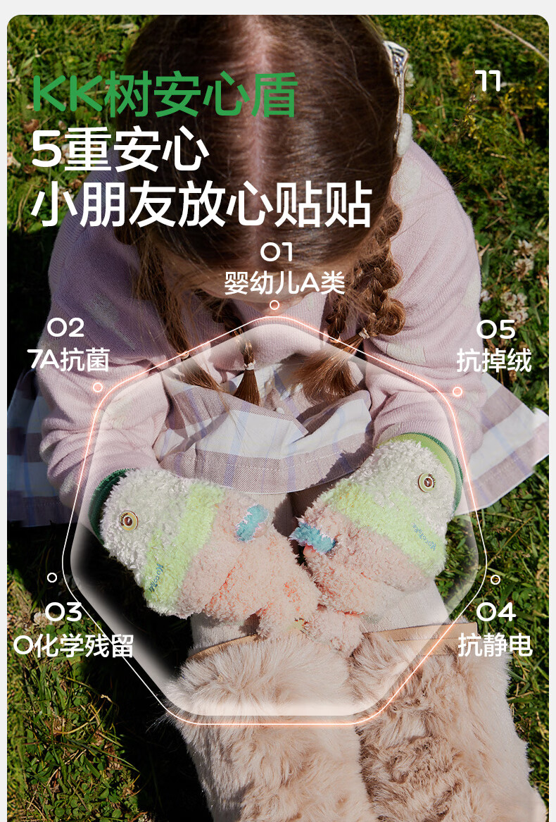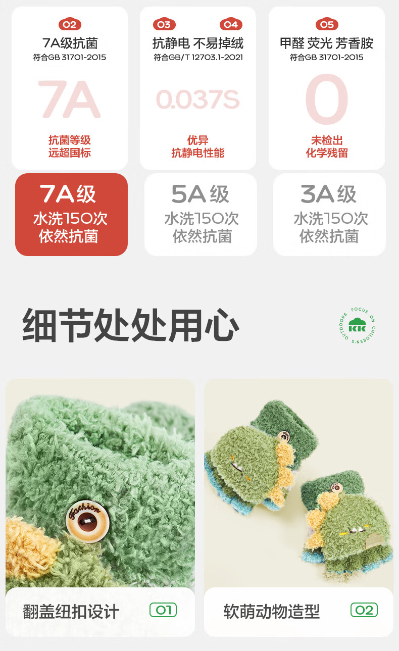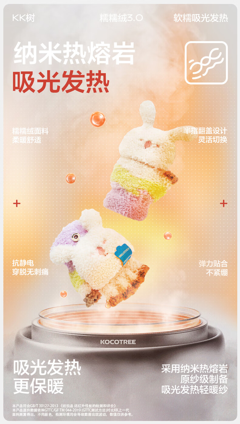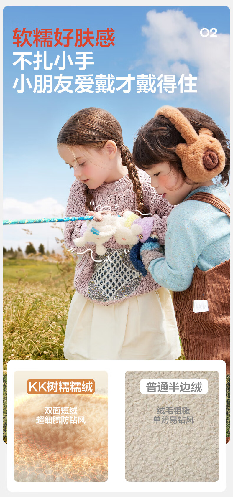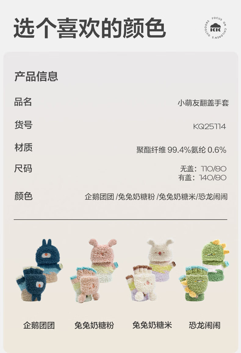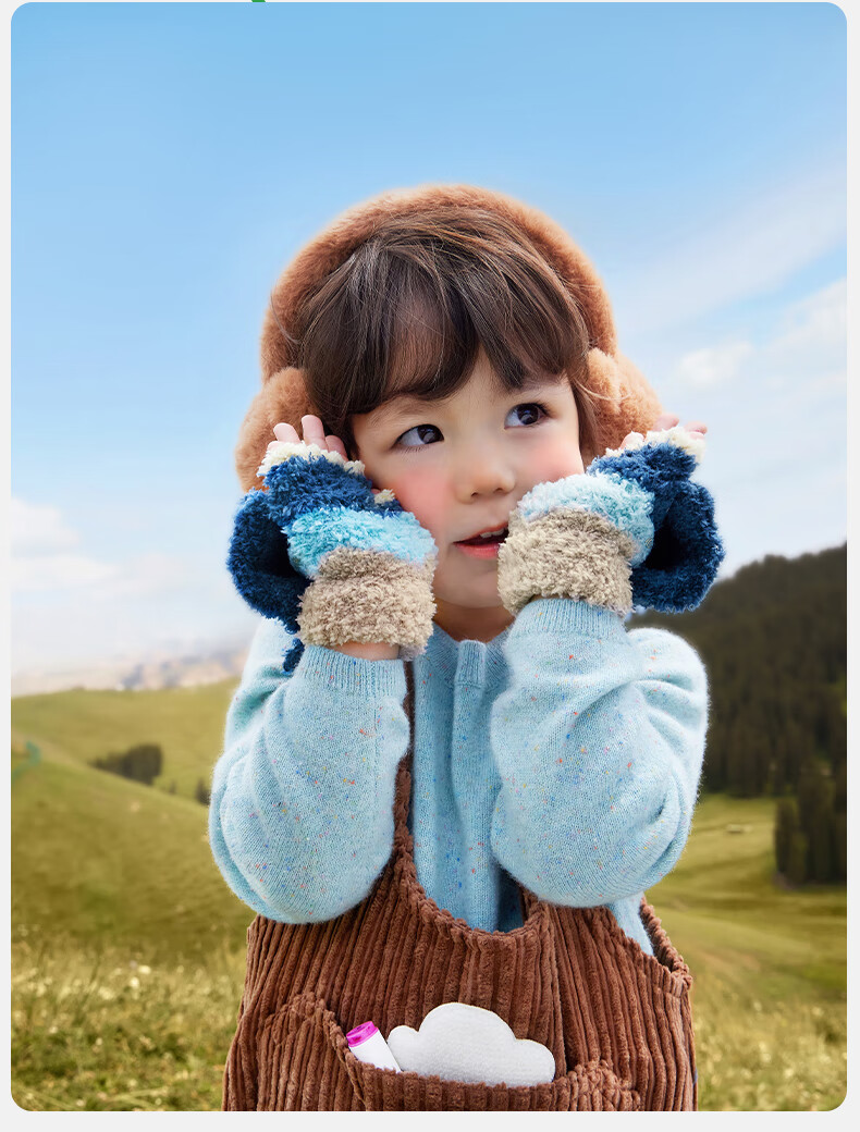 KocotreeKK树儿童手套半指翻盖宝宝保暖露指男童女孩写字小学生五指秋冬季 兔兔奶糖粉 均码:2-12岁