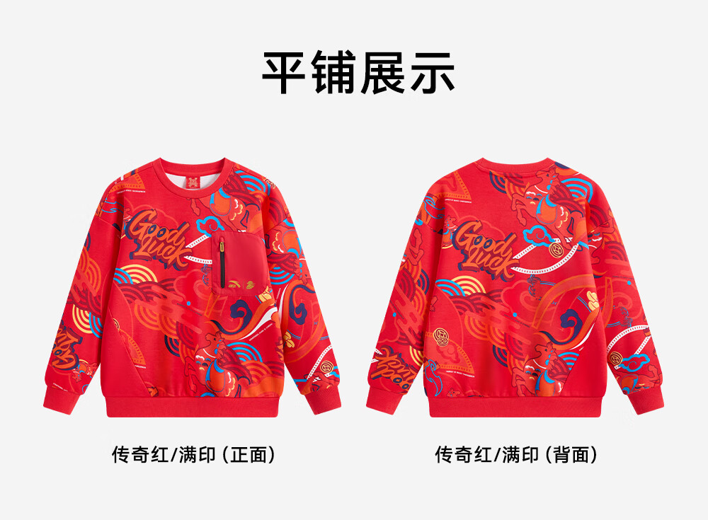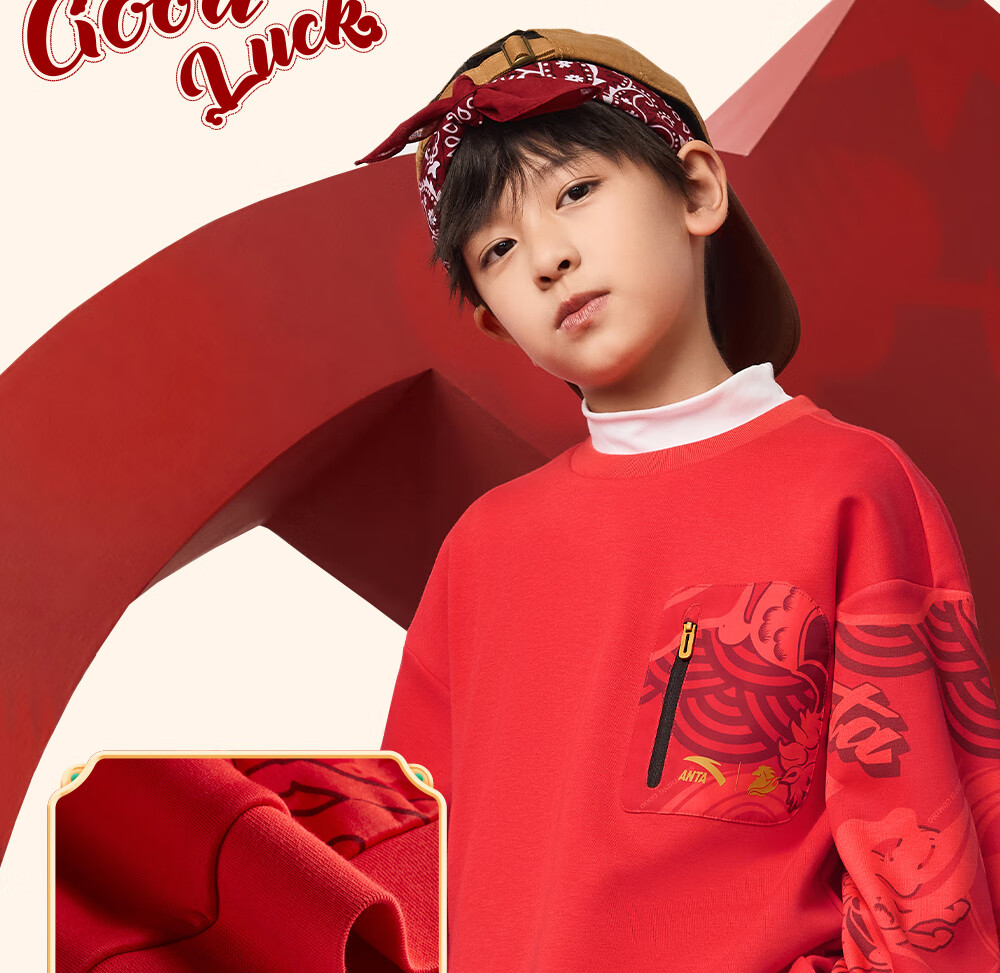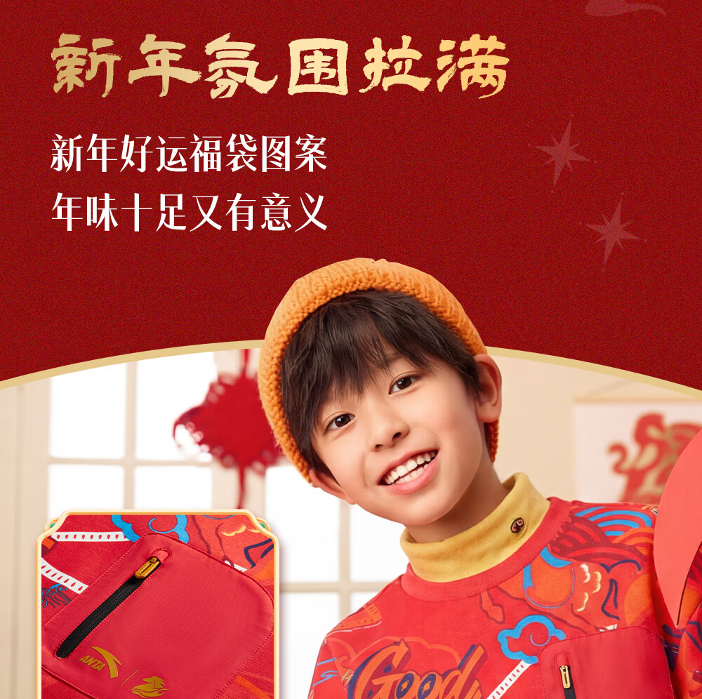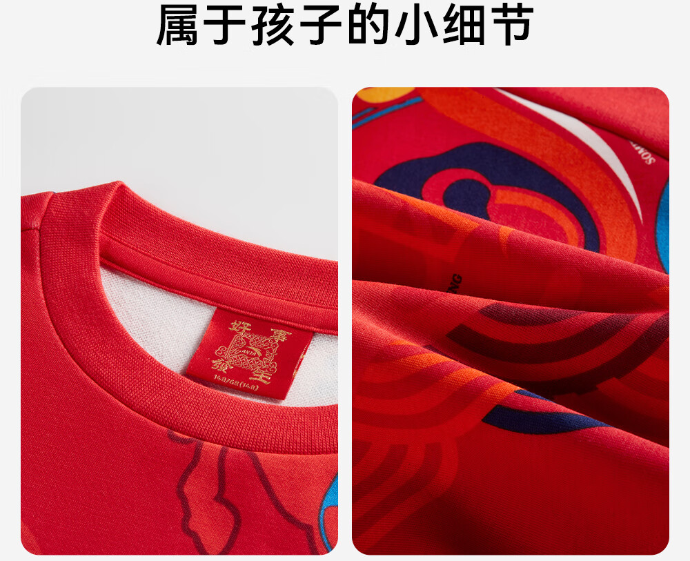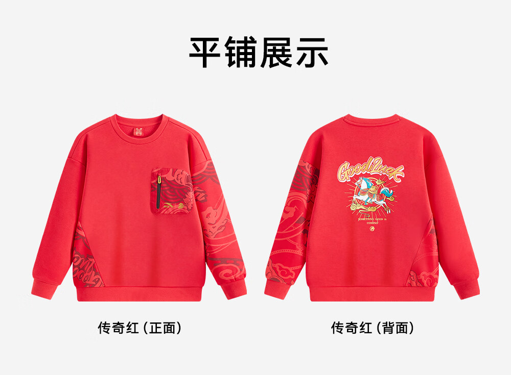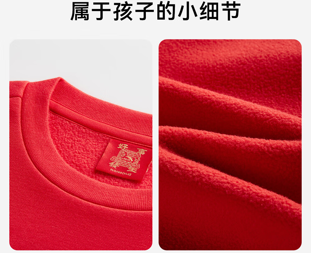 安踏儿童卫衣男女大小童装春季新年款马年喜庆红色加绒保暖亲肤套头衫 【店长推荐】传奇红8739 -1 150 cm