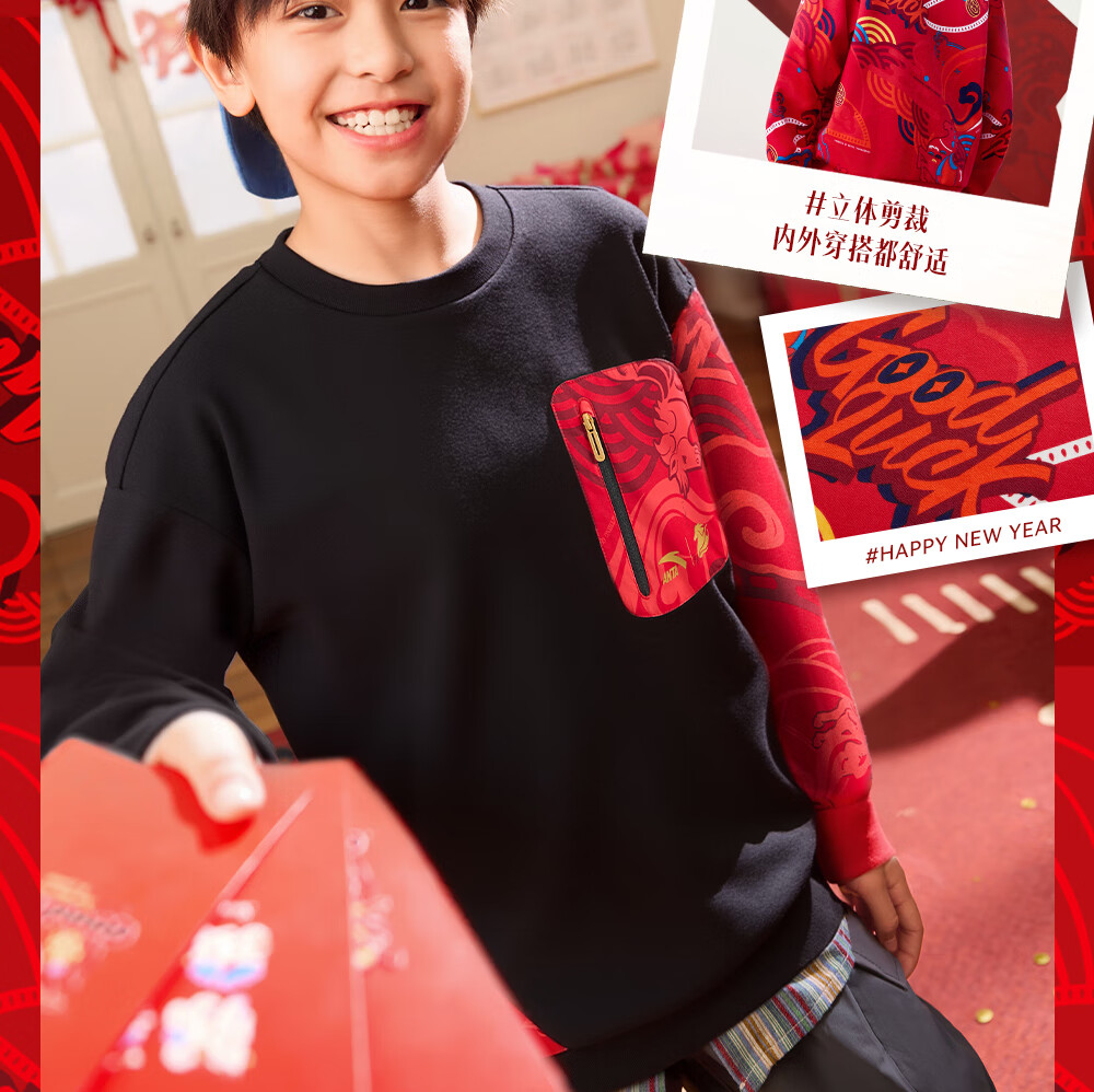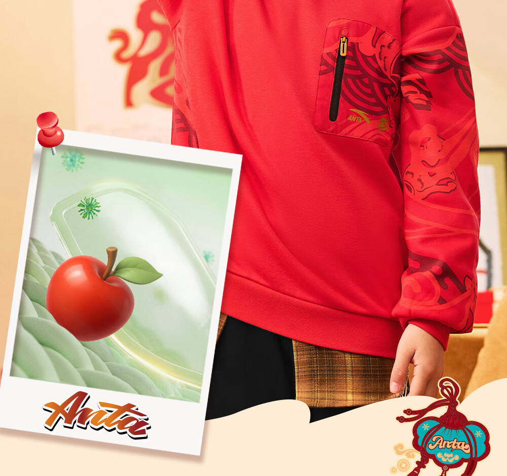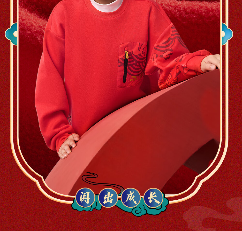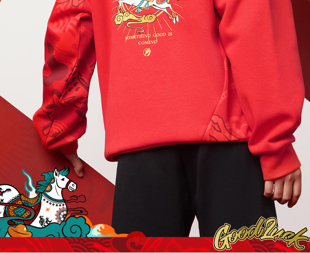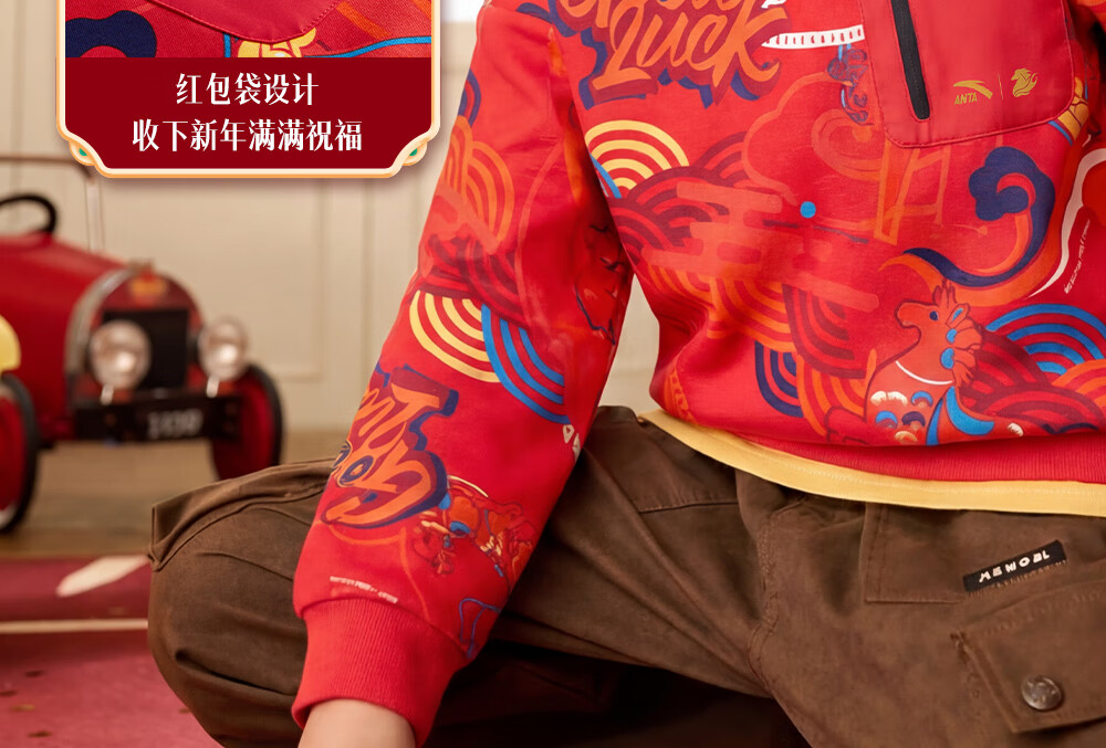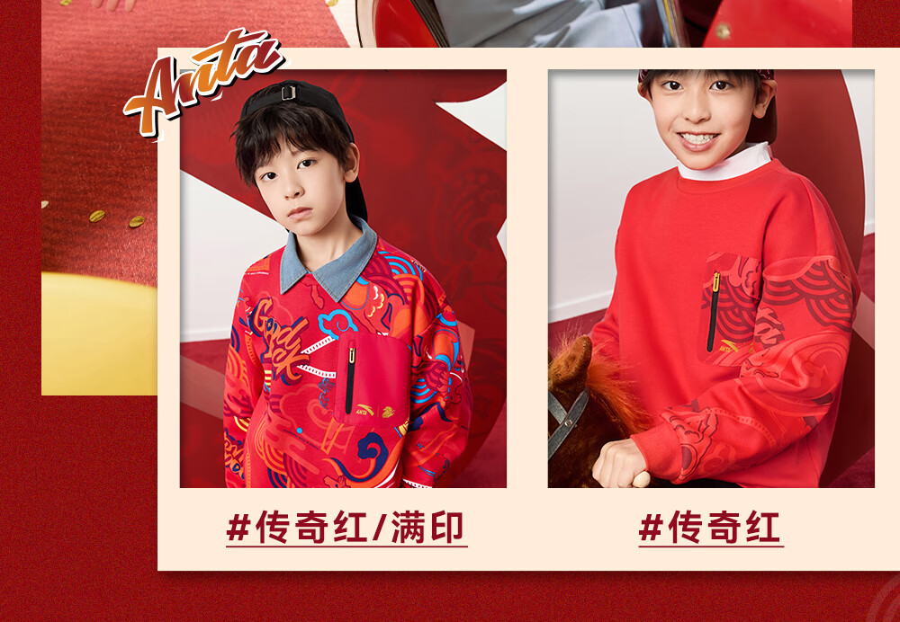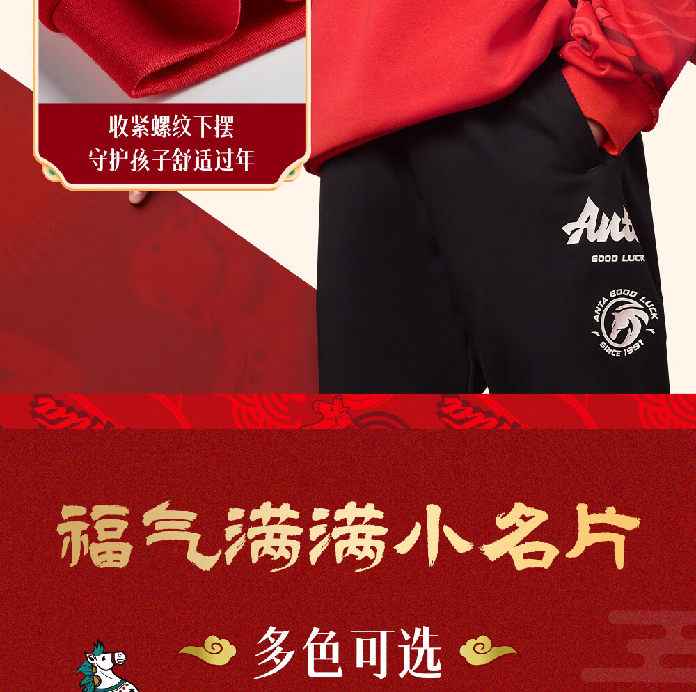 安踏儿童卫衣男女大小童装春季新年款马年喜庆红色加绒保暖亲肤套头衫 【店长推荐】传奇红8739 -1 150 cm