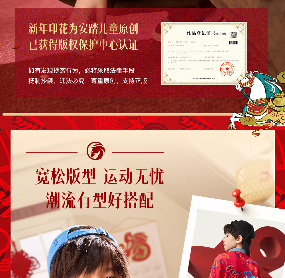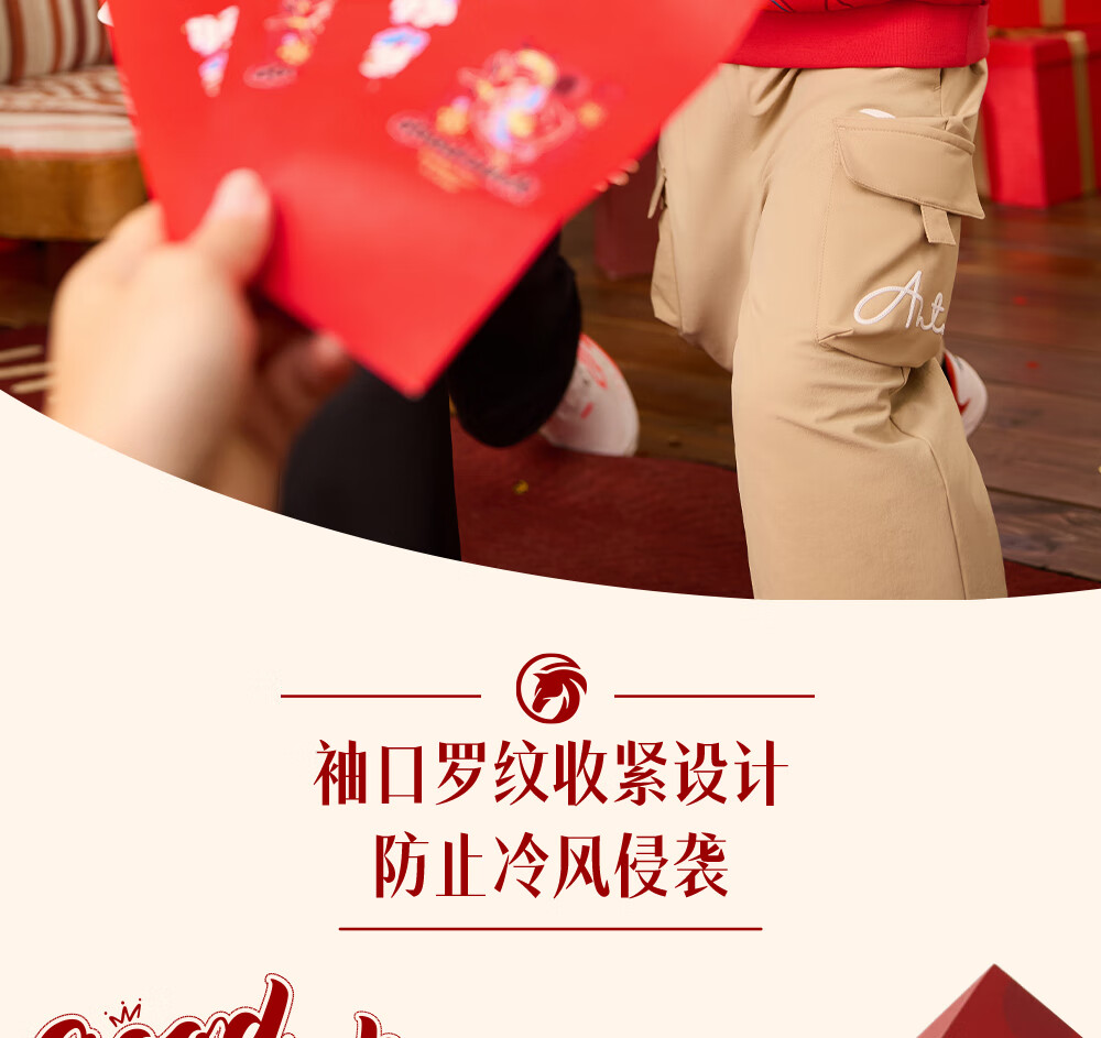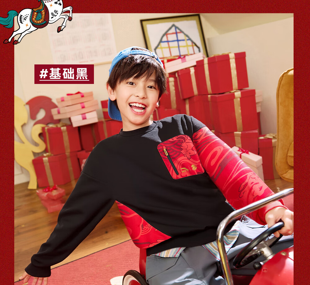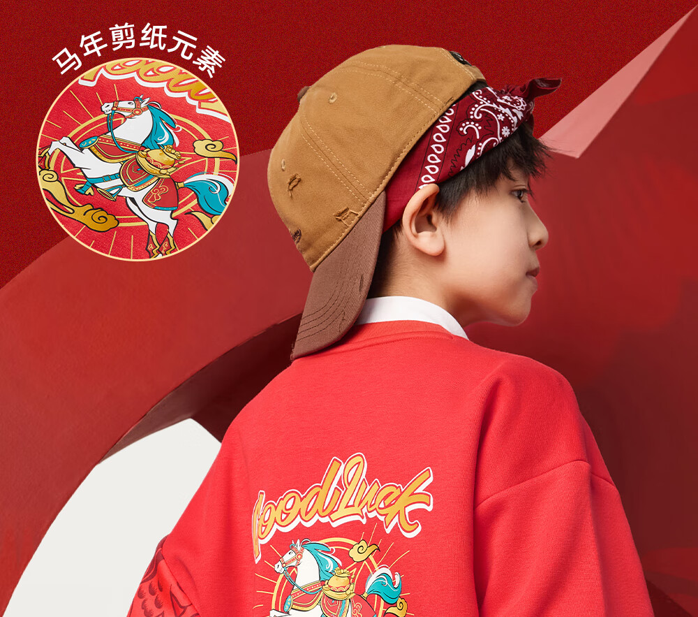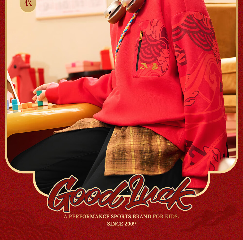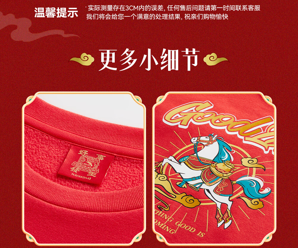 安踏儿童卫衣男女大小童装春季新年款马年喜庆红色加绒保暖亲肤套头衫 【店长推荐】传奇红8739 -1 150 cm