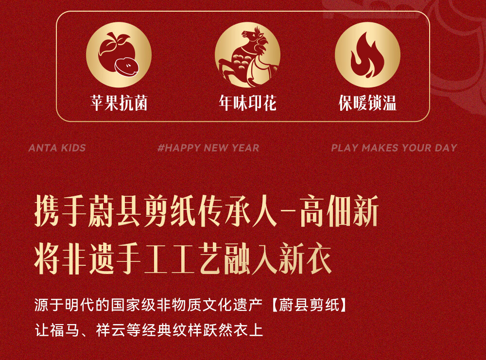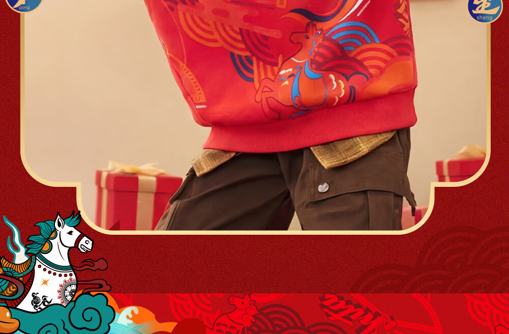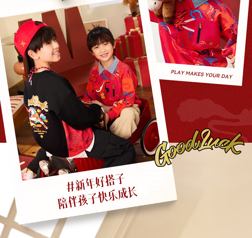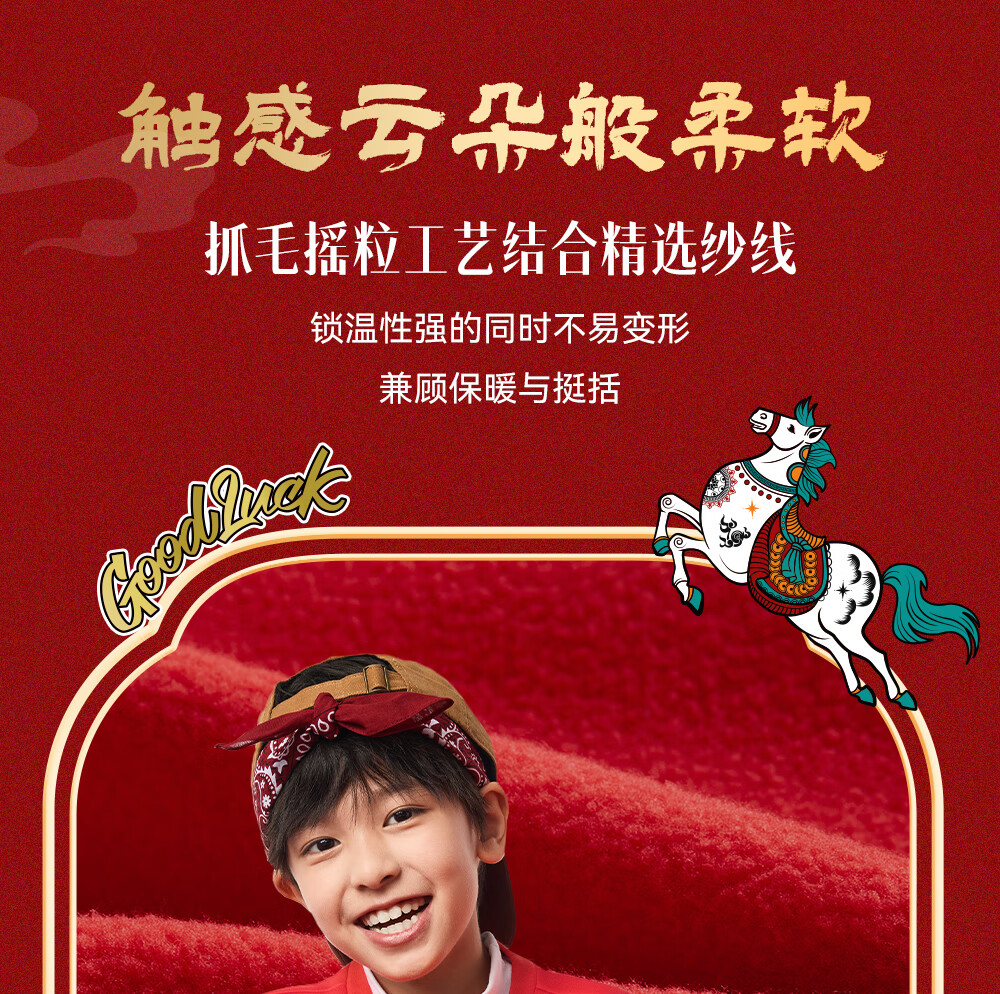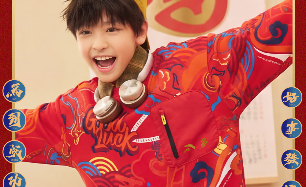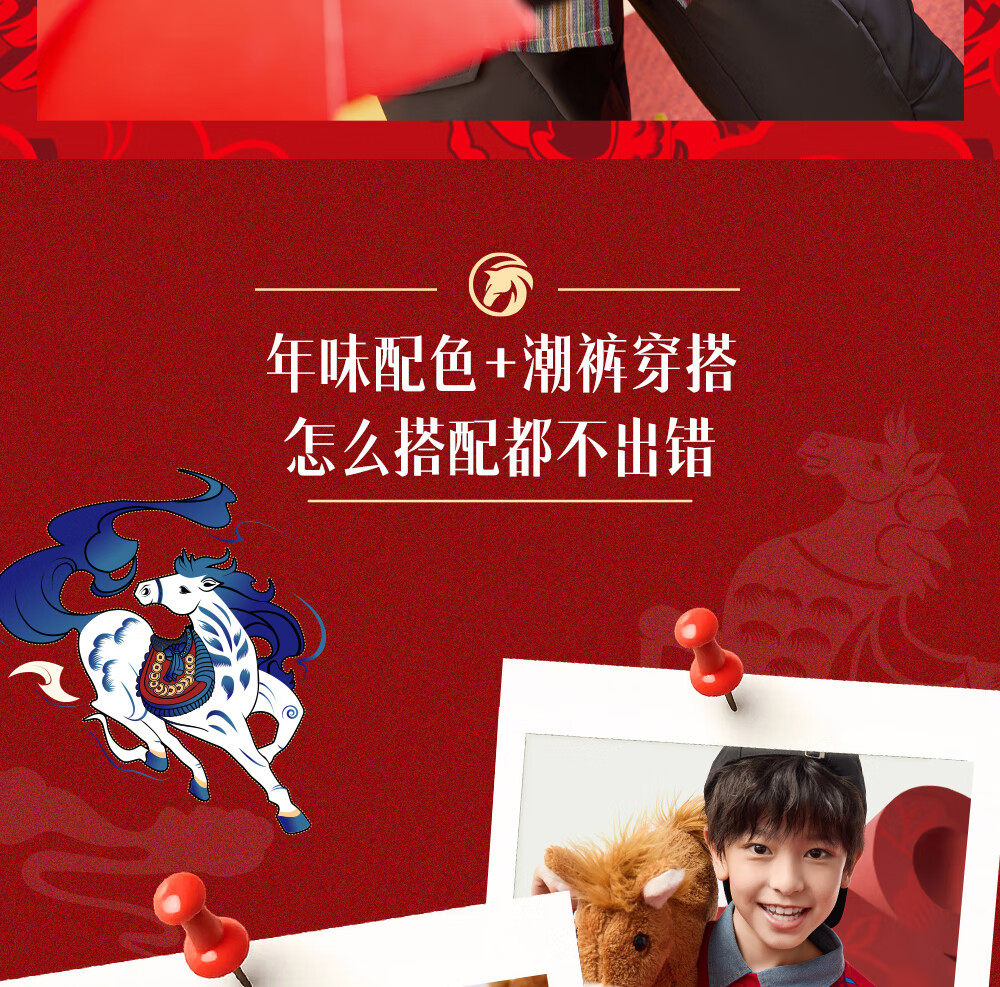 安踏儿童卫衣男女大小童装春季新年款马年喜庆红色加绒保暖亲肤套头衫 【店长推荐】传奇红8739 -1 150 cm