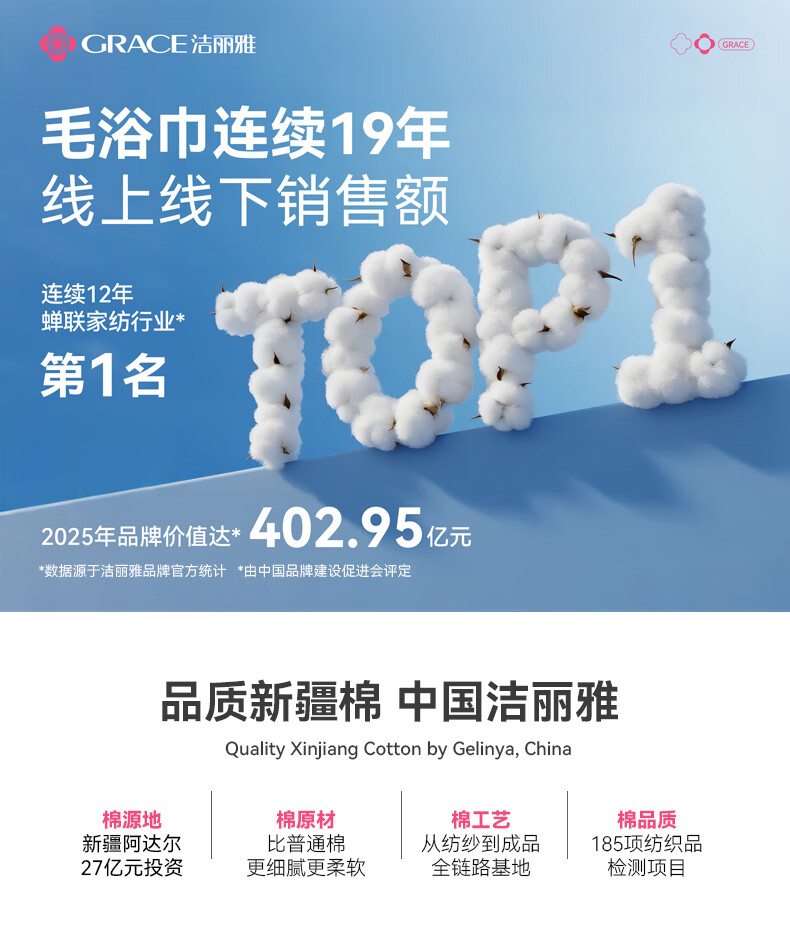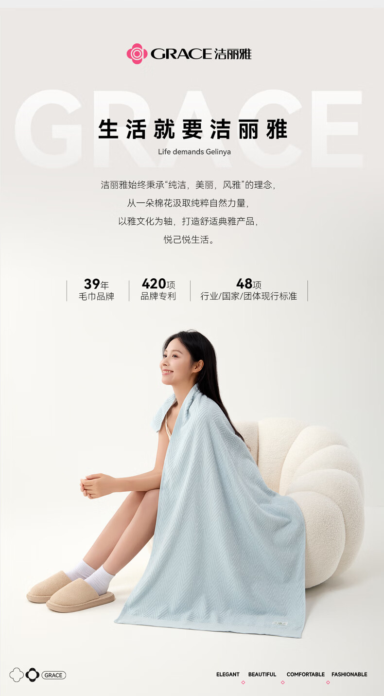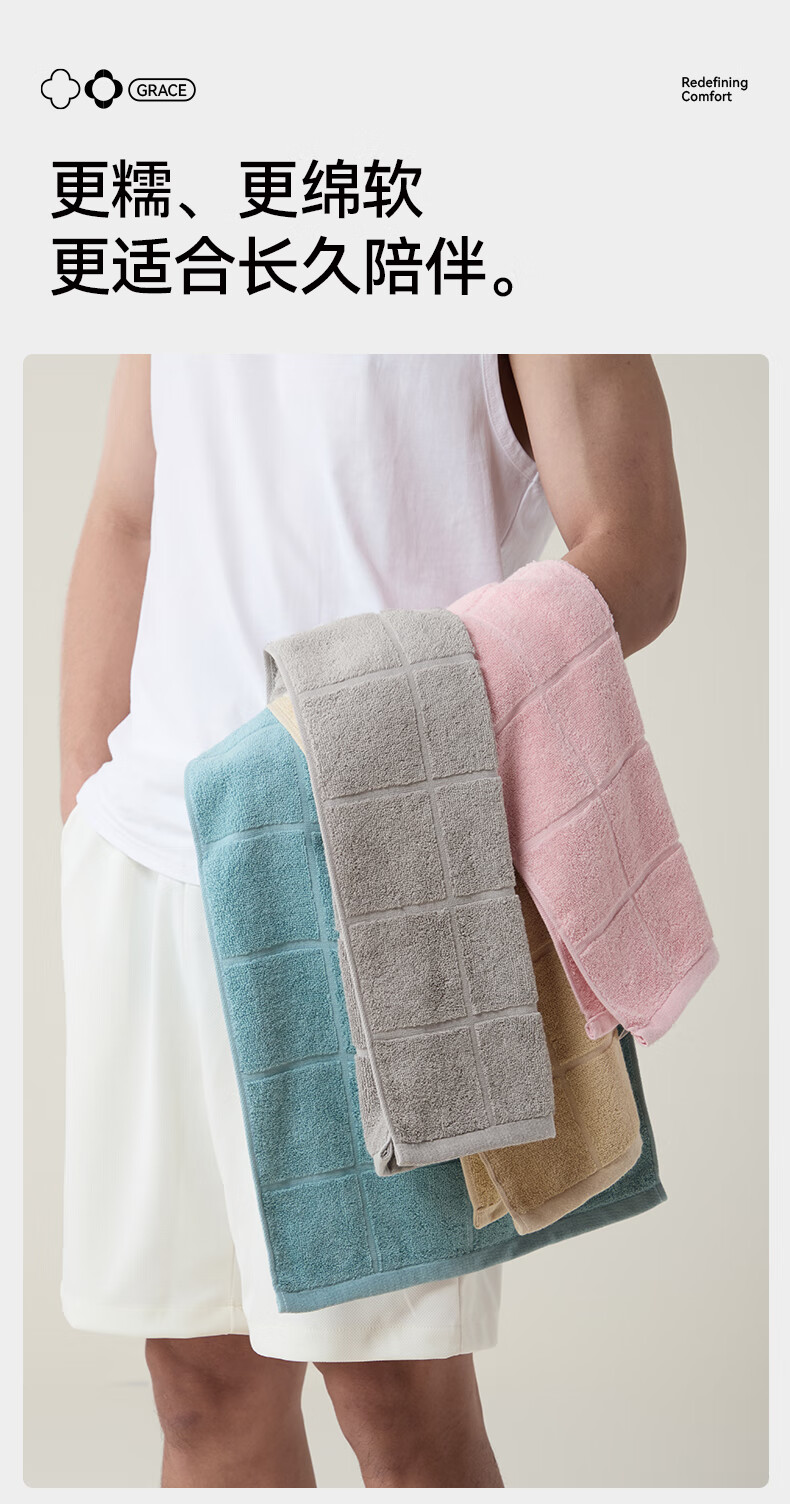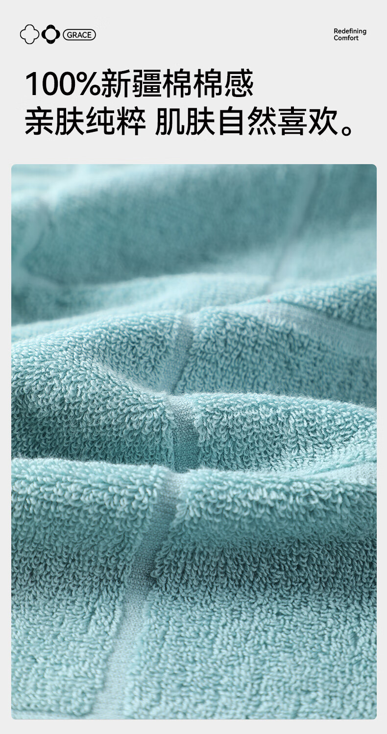 洁丽雅毛巾7A抗菌90克独立装新疆纯棉男女柔软不易掉毛洗脸洗澡加厚面巾