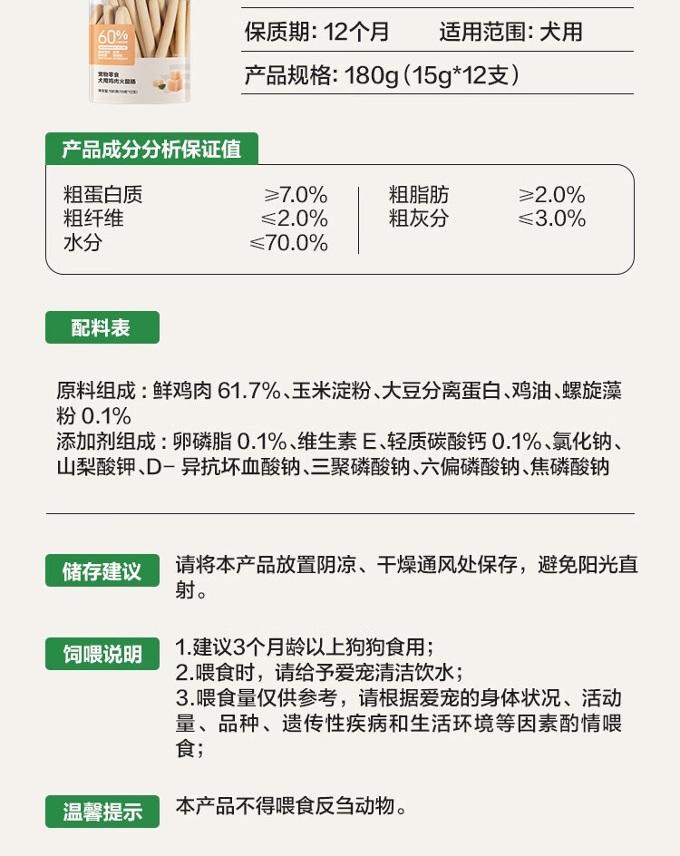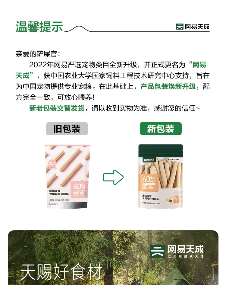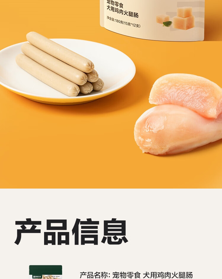 网易严选宠物零食狗狗通用零食鸡肉火腿肠 180g/袋
