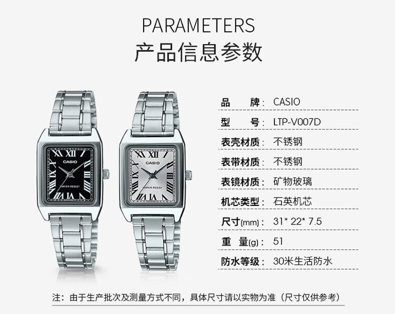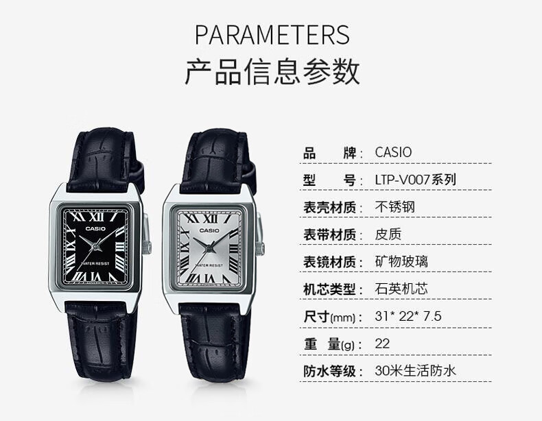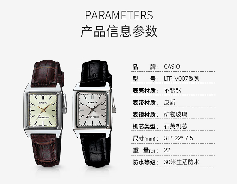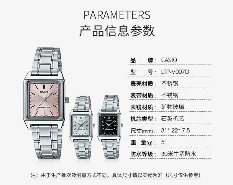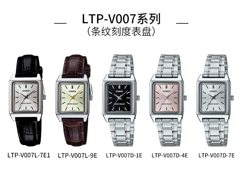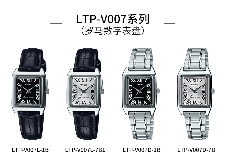 卡西欧(CASIO)网红复古经典小方表学生时尚气质石英女士女表 LTP-V007D-4EUDF