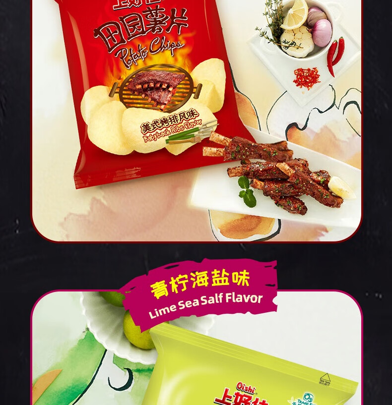 上好佳田园薯片办公室零食 小零食 口味随机 12g*20包
