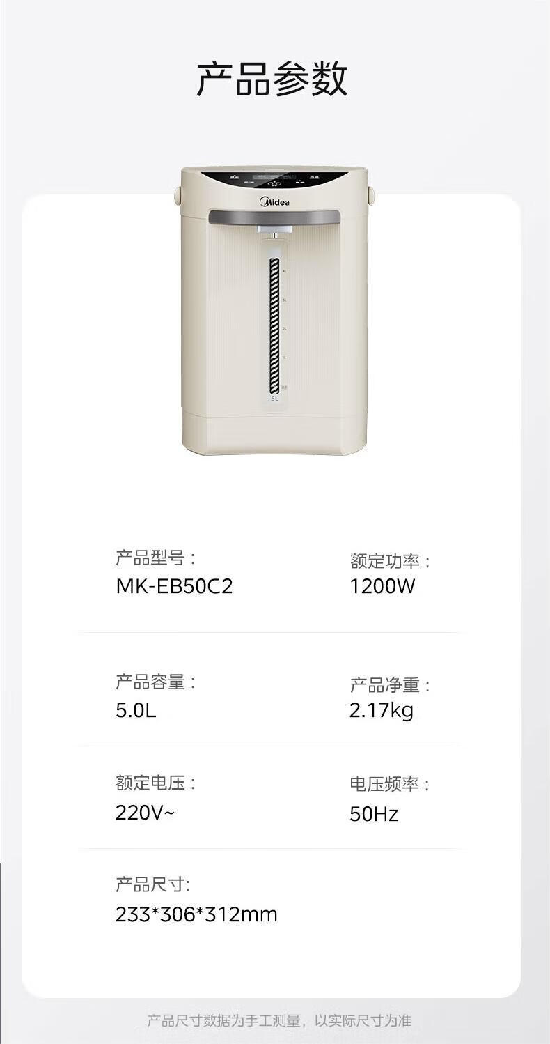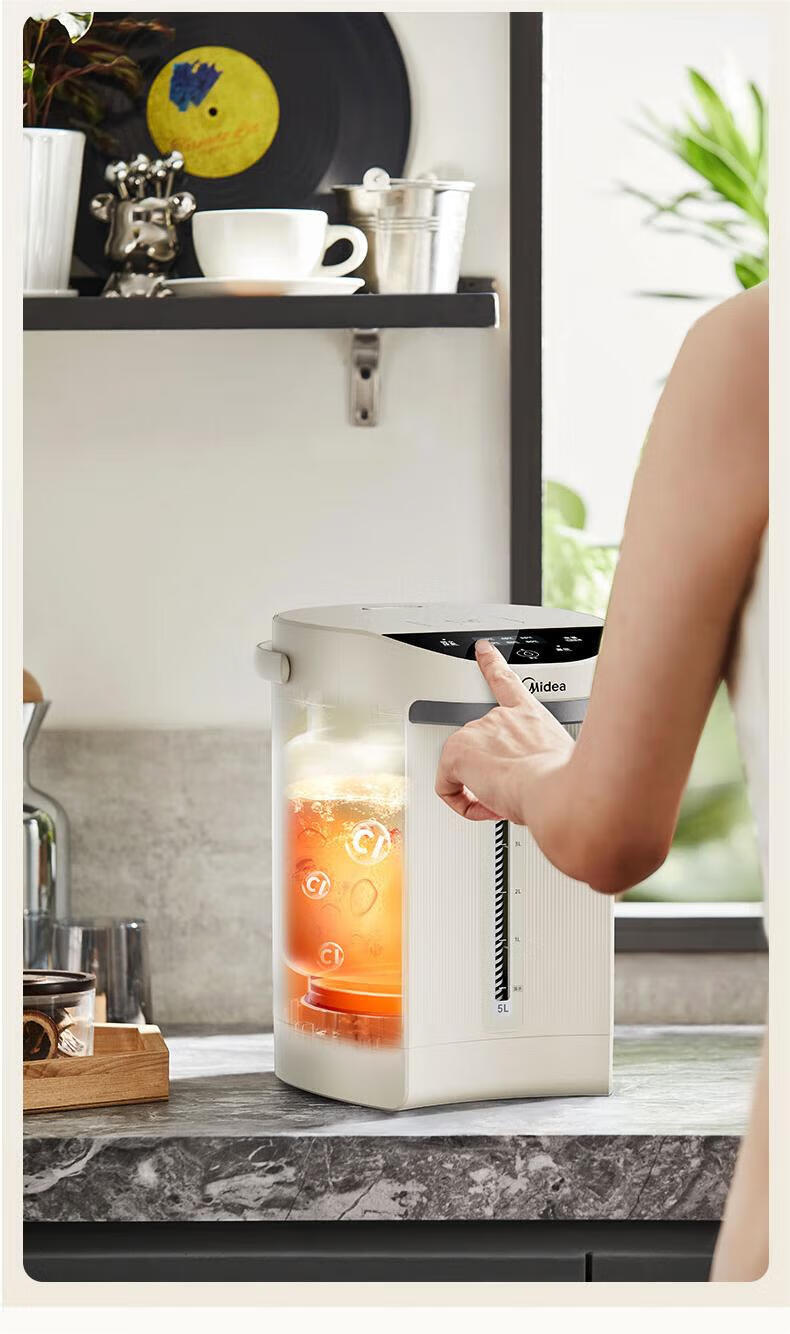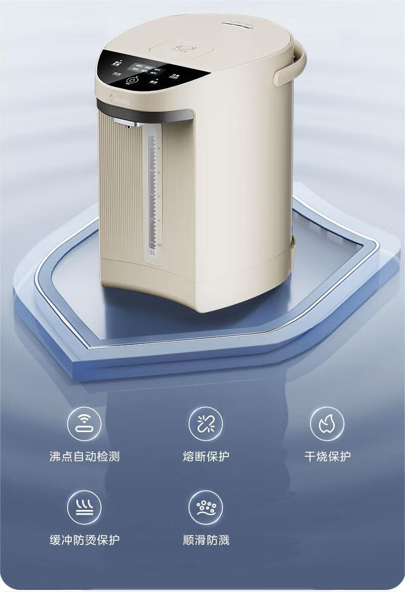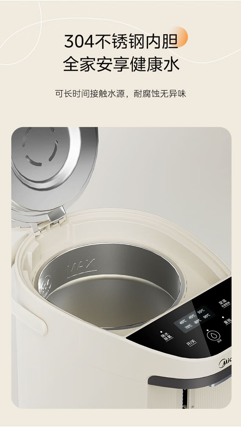 美的(Midea)电热水瓶热水壶电热水壶304不锈钢热水瓶5L大容量烧水壶智能6段控温48h保温恒温暖水壶除氯 EB50C2