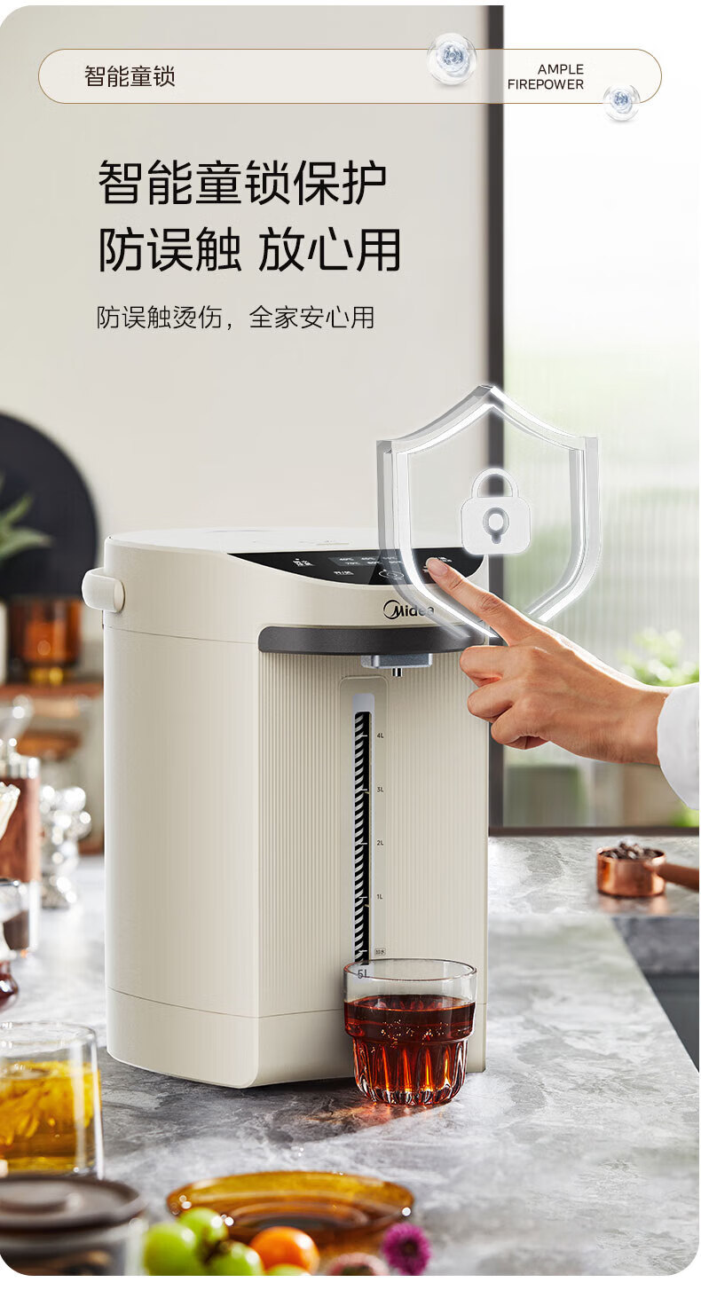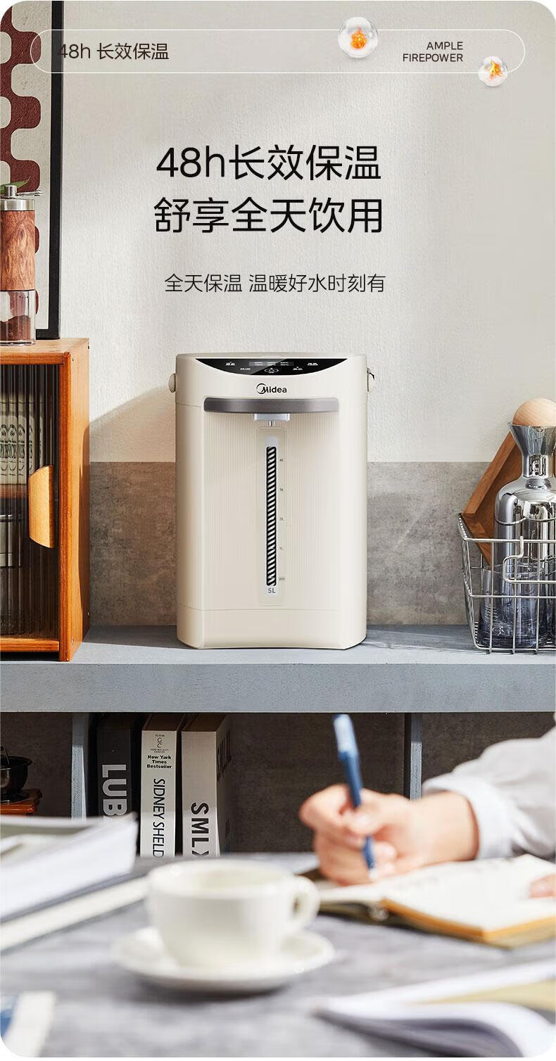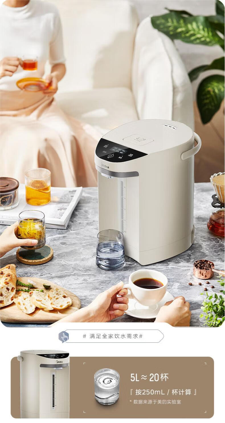 美的(Midea)电热水瓶热水壶电热水壶304不锈钢热水瓶5L大容量烧水壶智能6段控温48h保温恒温暖水壶除氯 EB50C2