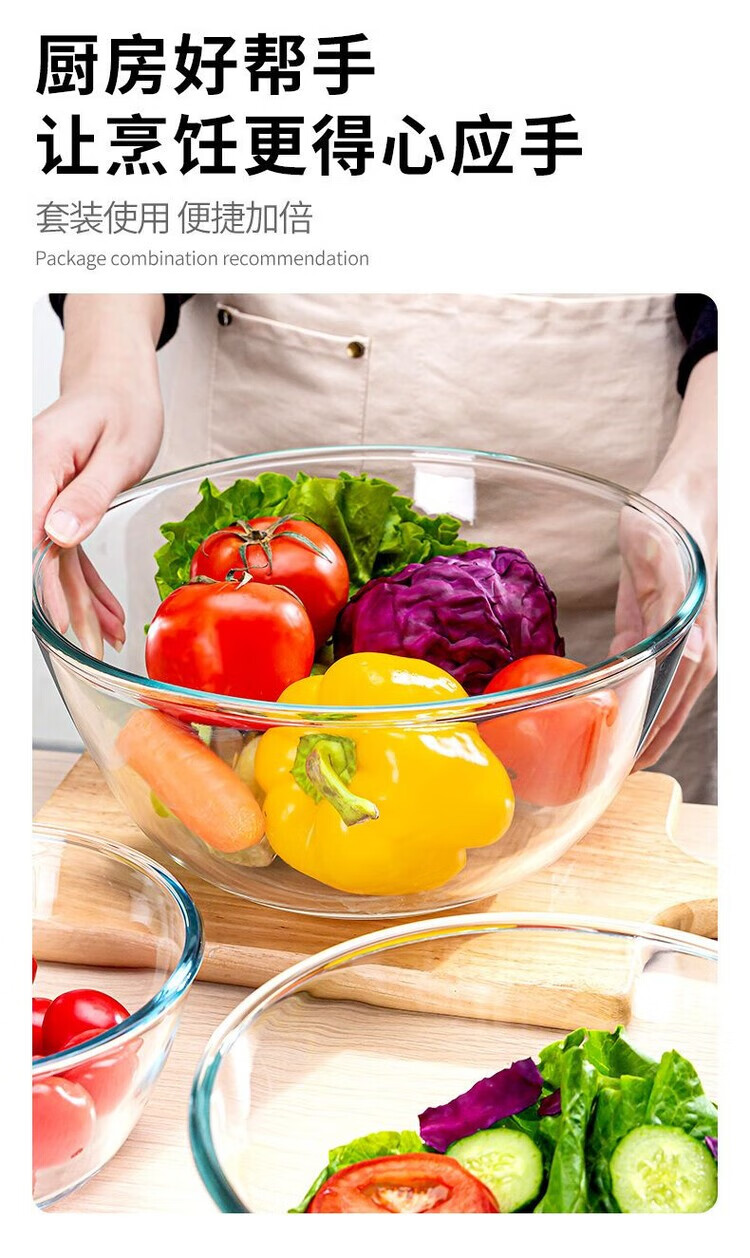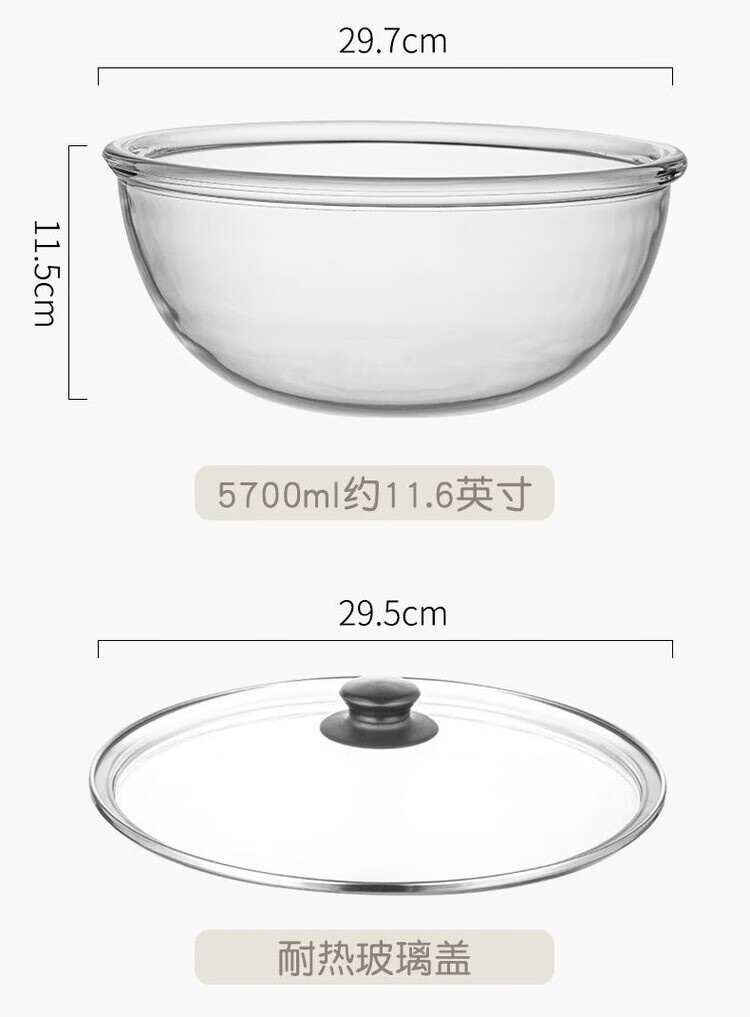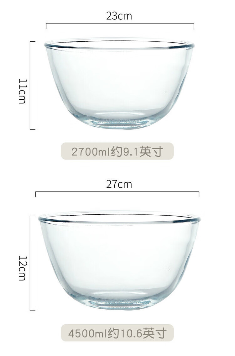 LZJV加厚耐热玻璃盆大号和面盆打蛋盆蛋糕玻璃碗家用沙拉料理碗 2700ML