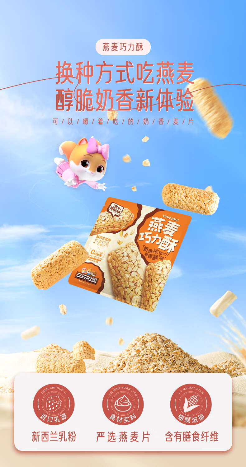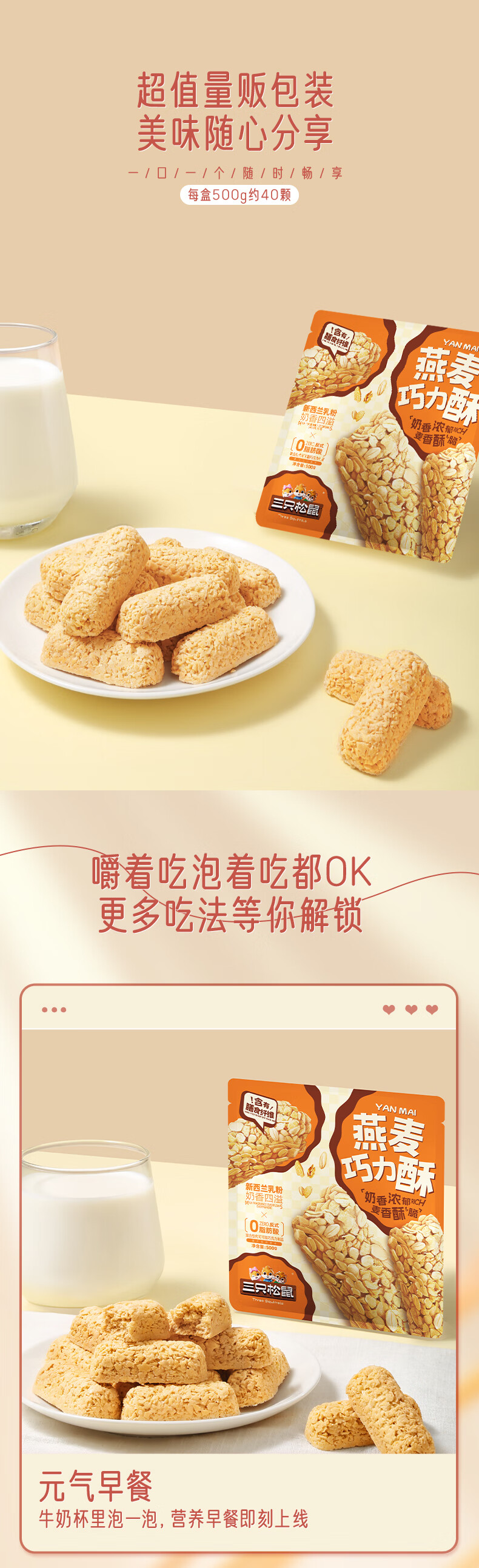 三只松鼠燕麦巧力酥500g 巧克力饼干燕麦片糕点点心办公室休闲零食小吃