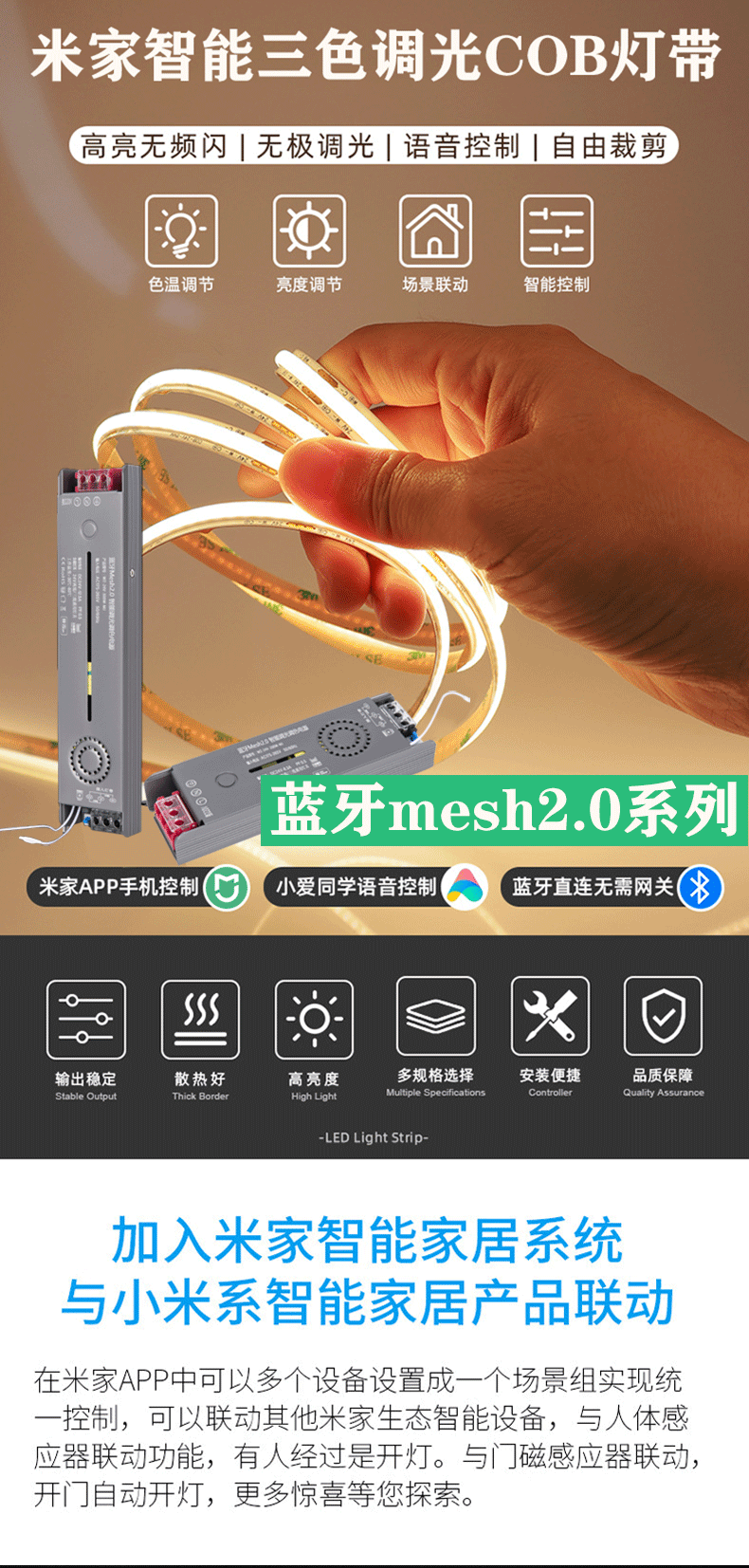 米家已接入米家mesh2.0智能cob灯带无极调光客厅双眼皮悬浮吊顶线性灯 米家智能12m灯带+mesh2.0变压器