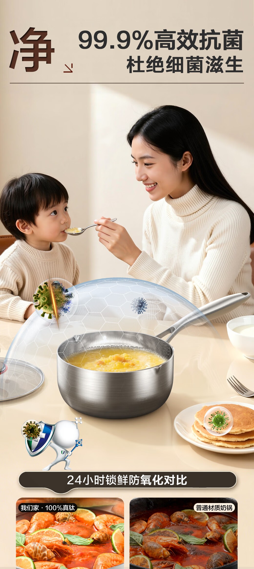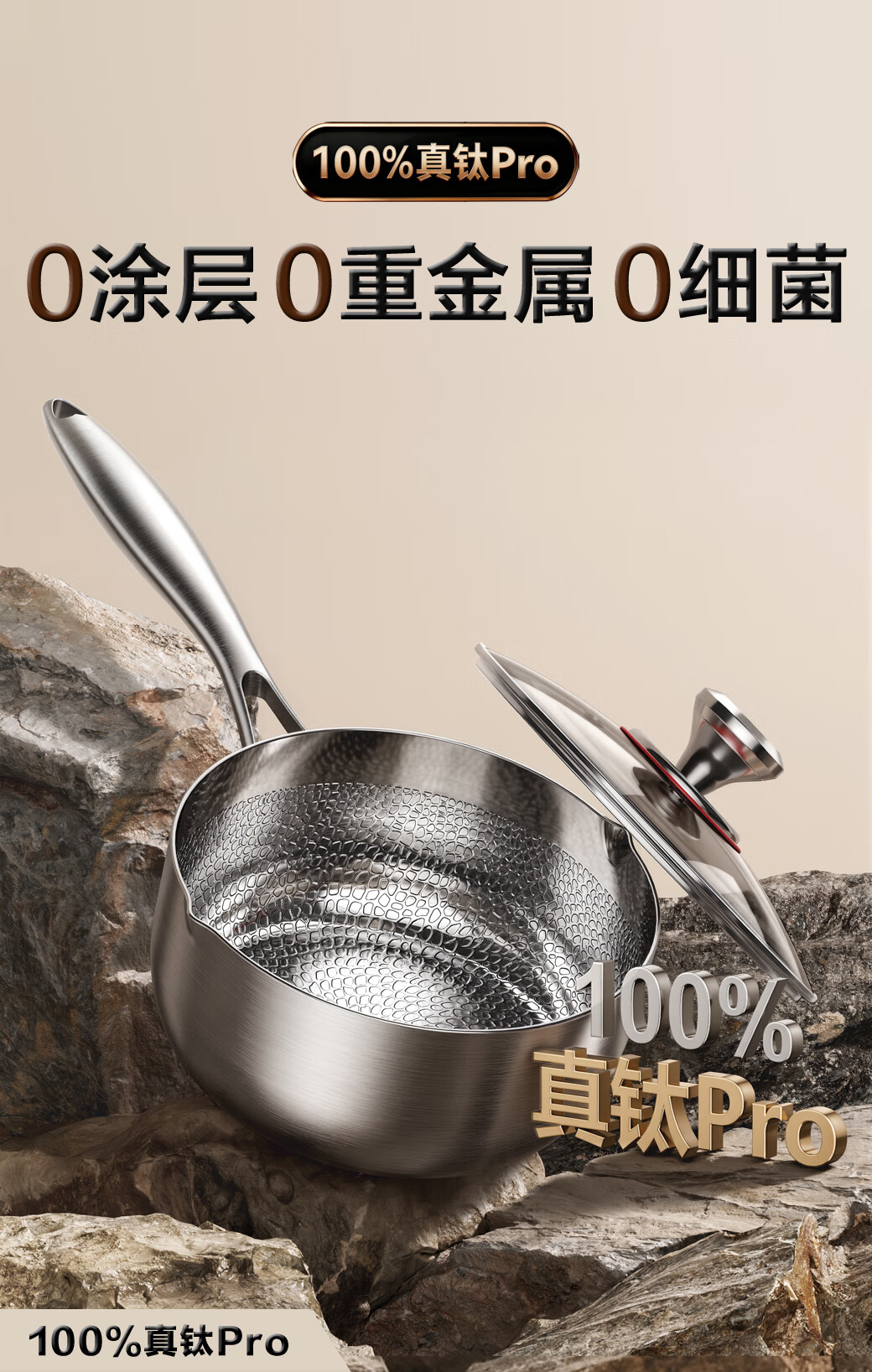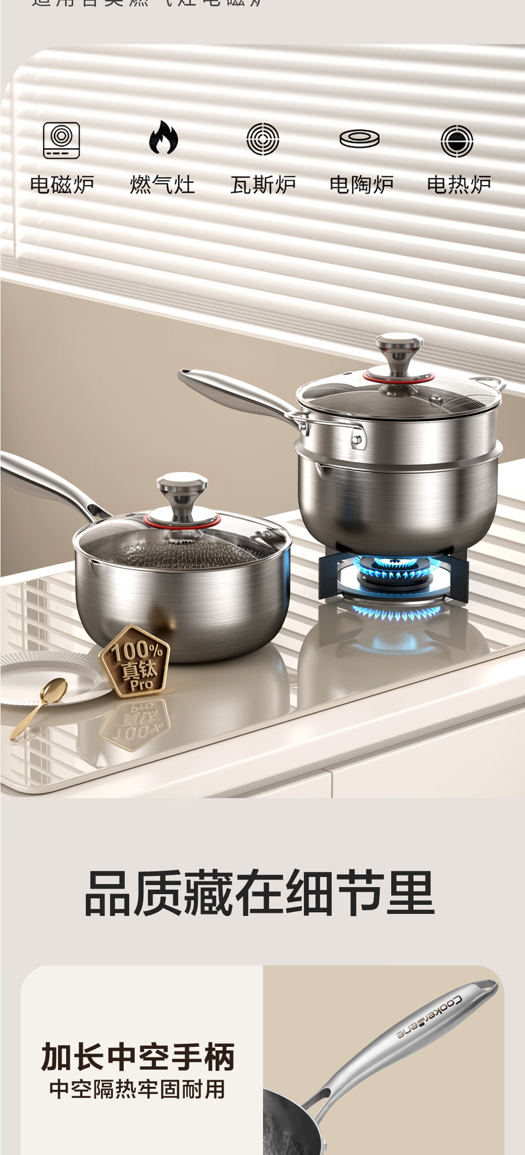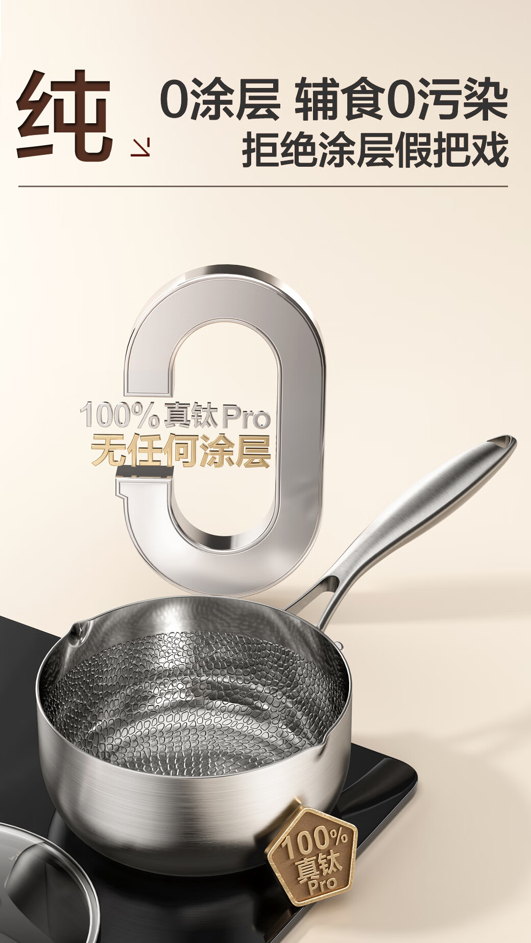 cookerbene真钛pro无涂层雪平锅奶锅泡面煮面宝宝婴儿辅食蒸煮一人食小汤锅 18cm【真钛Pro 无涂层 99.9%抗菌】1-2人 18cm