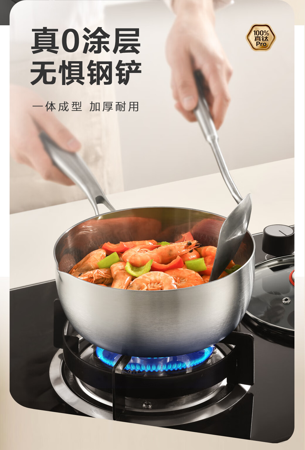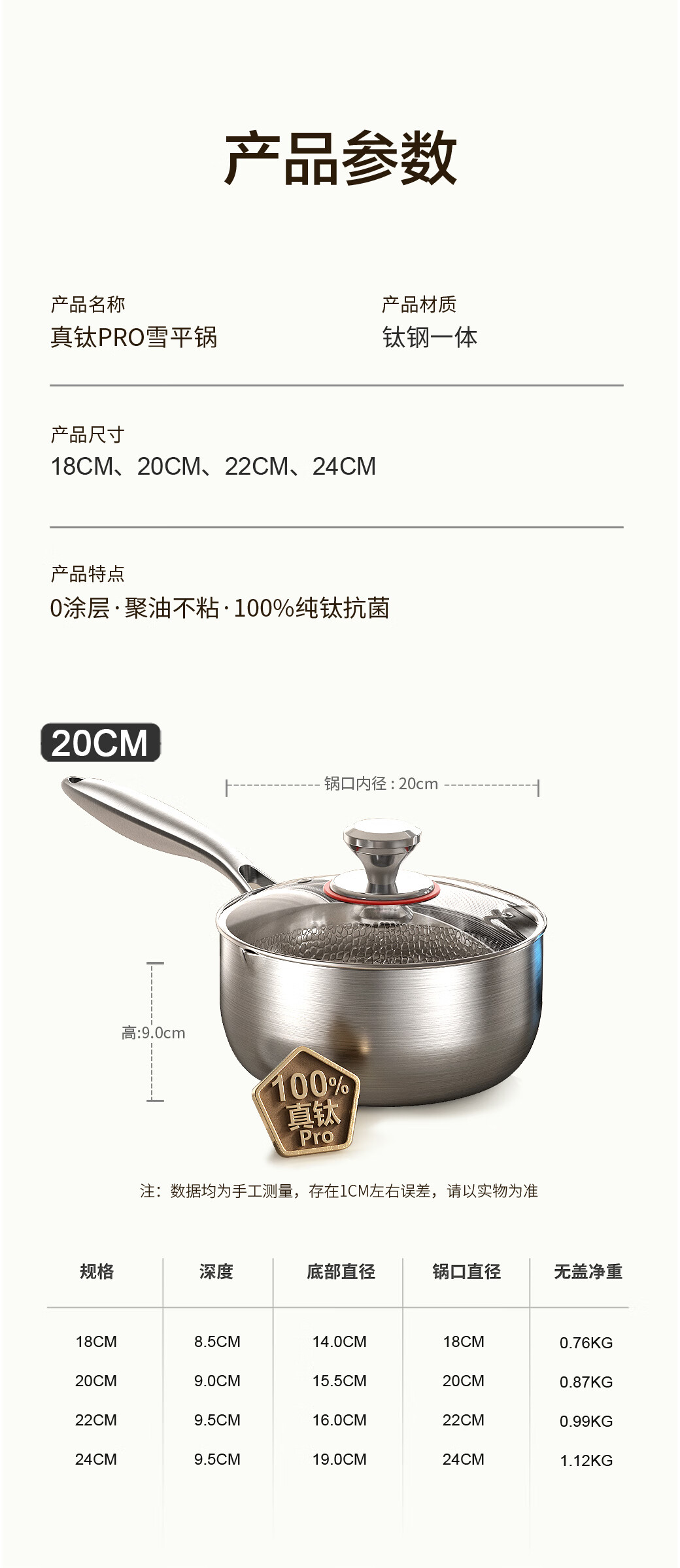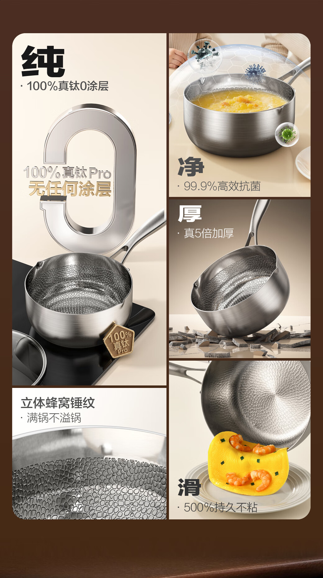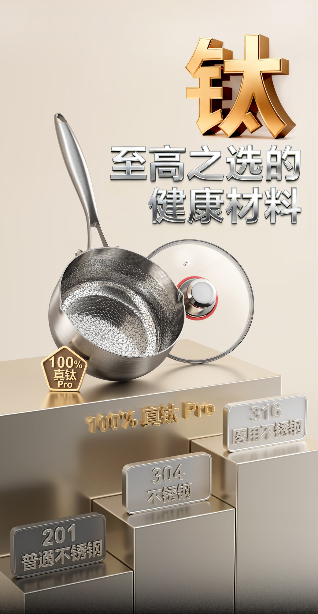 cookerbene真钛pro无涂层雪平锅奶锅泡面煮面宝宝婴儿辅食蒸煮一人食小汤锅 18cm【真钛Pro 无涂层 99.9%抗菌】1-2人 18cm