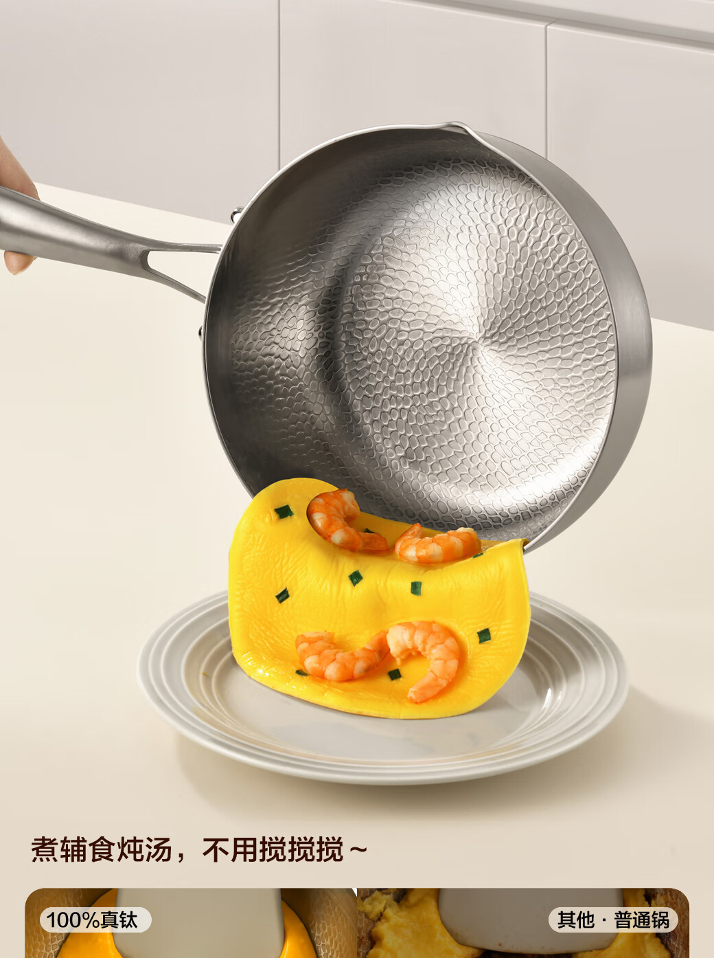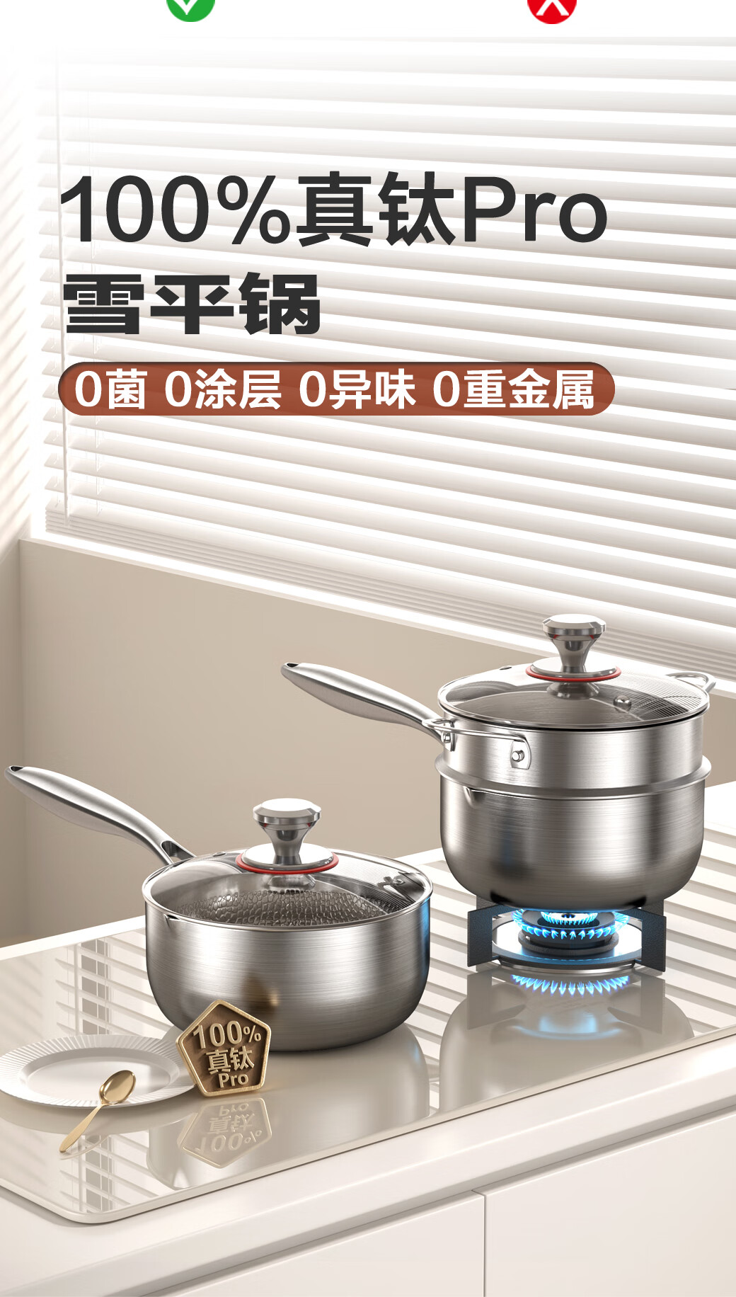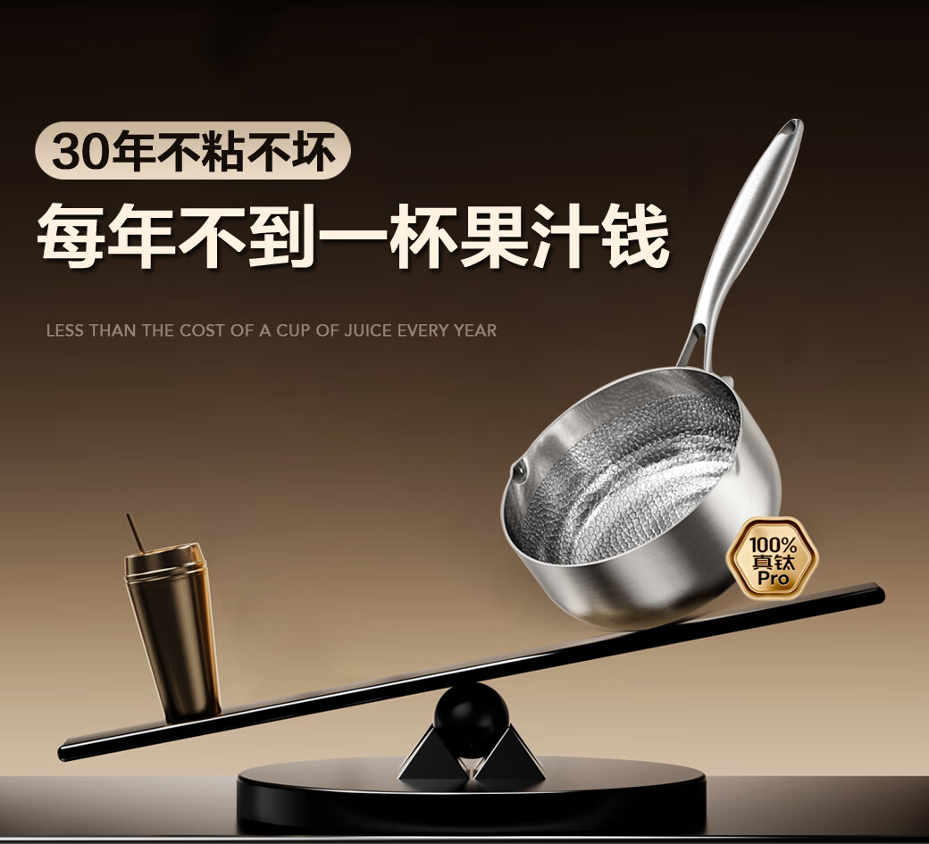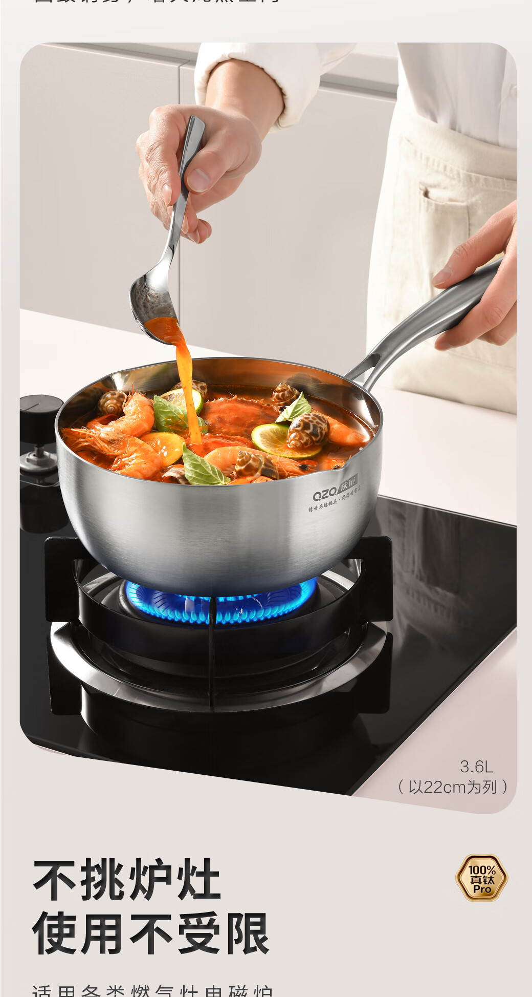 cookerbene真钛pro无涂层雪平锅奶锅泡面煮面宝宝婴儿辅食蒸煮一人食小汤锅 18cm【真钛Pro 无涂层 99.9%抗菌】1-2人 18cm
