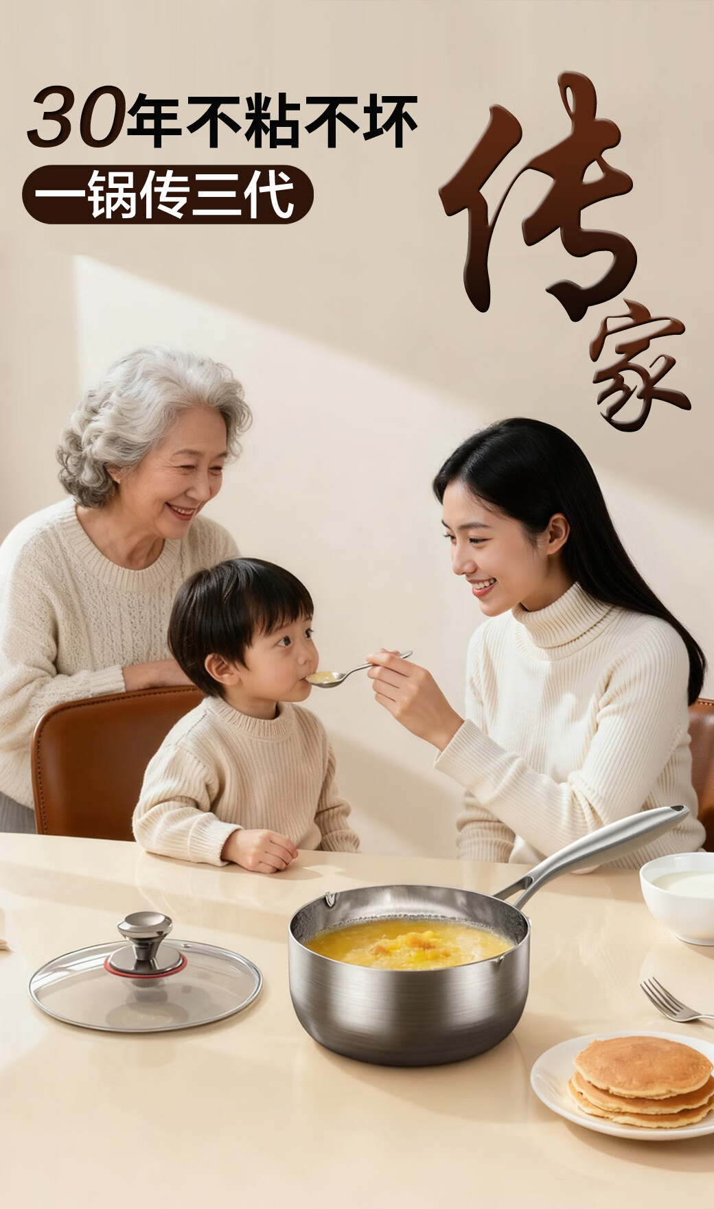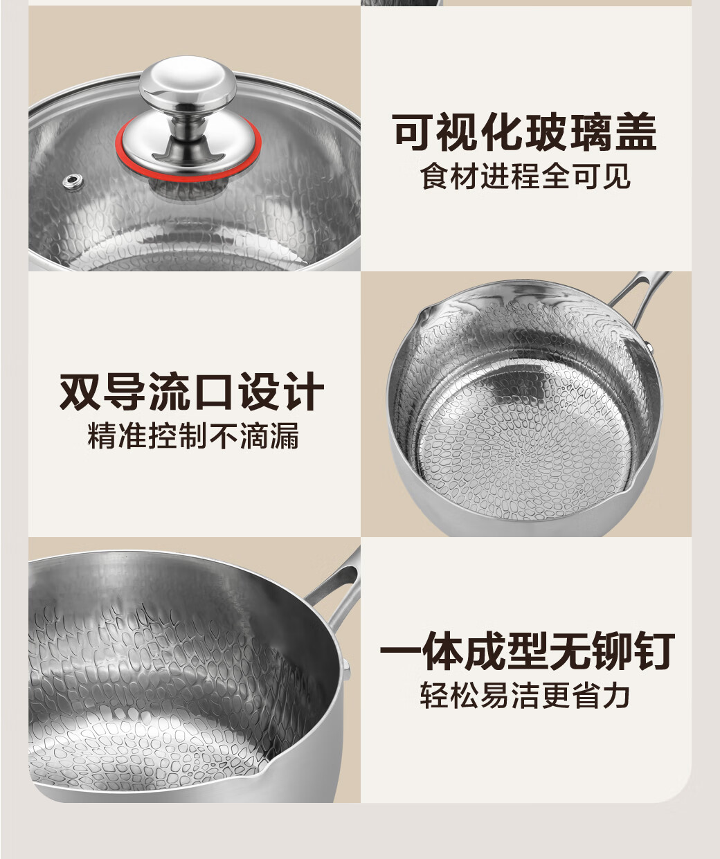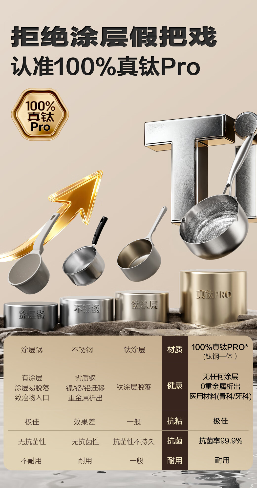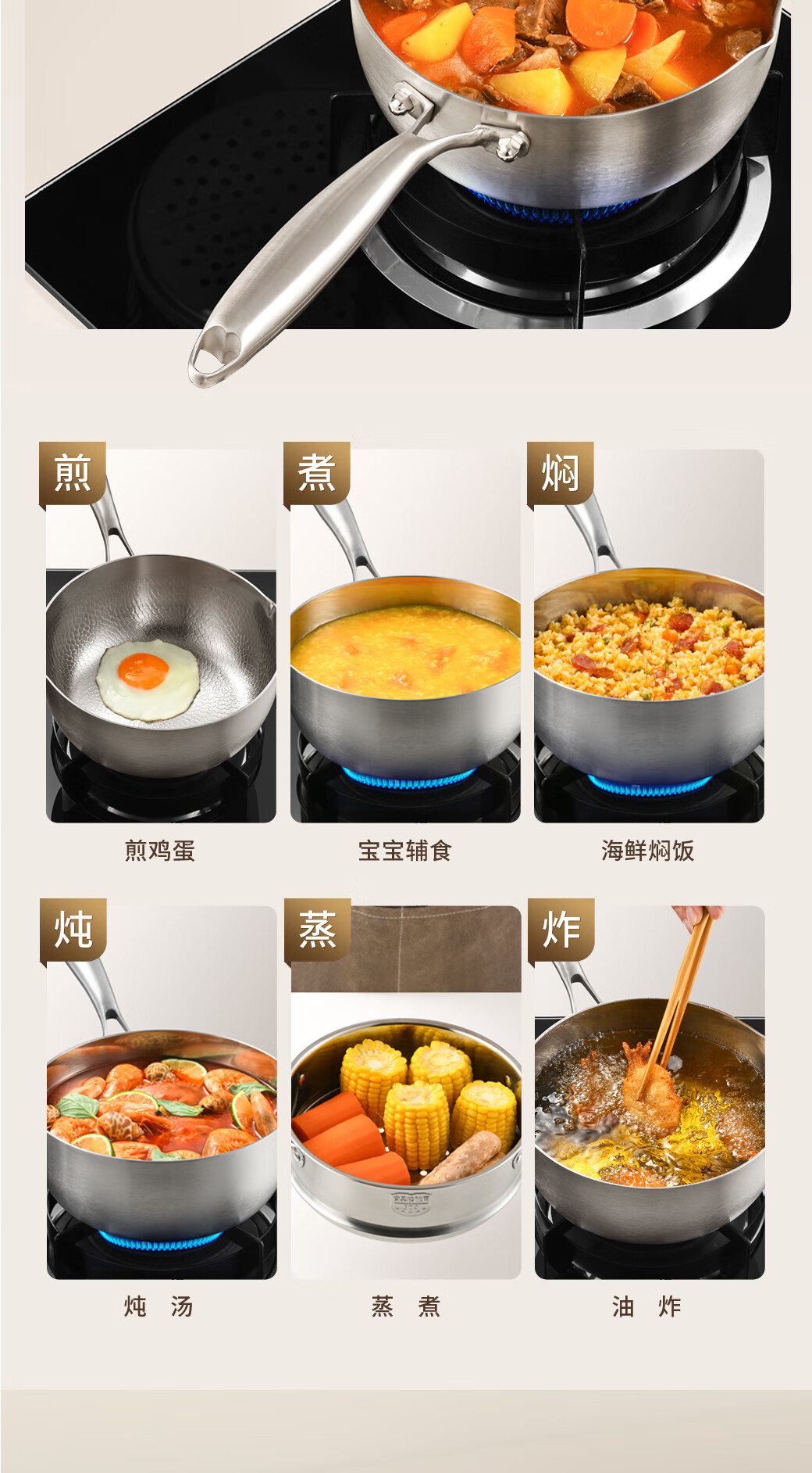 cookerbene真钛pro无涂层雪平锅奶锅泡面煮面宝宝婴儿辅食蒸煮一人食小汤锅 18cm【真钛Pro 无涂层 99.9%抗菌】1-2人 18cm