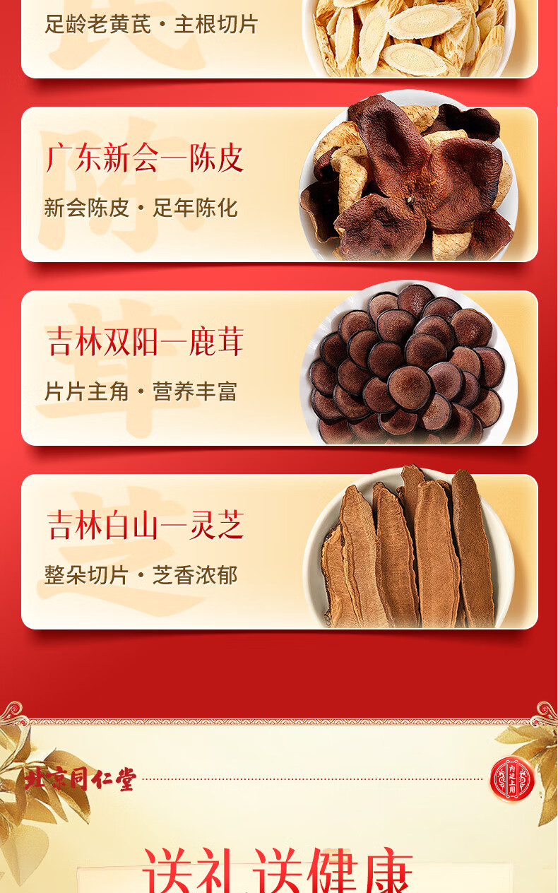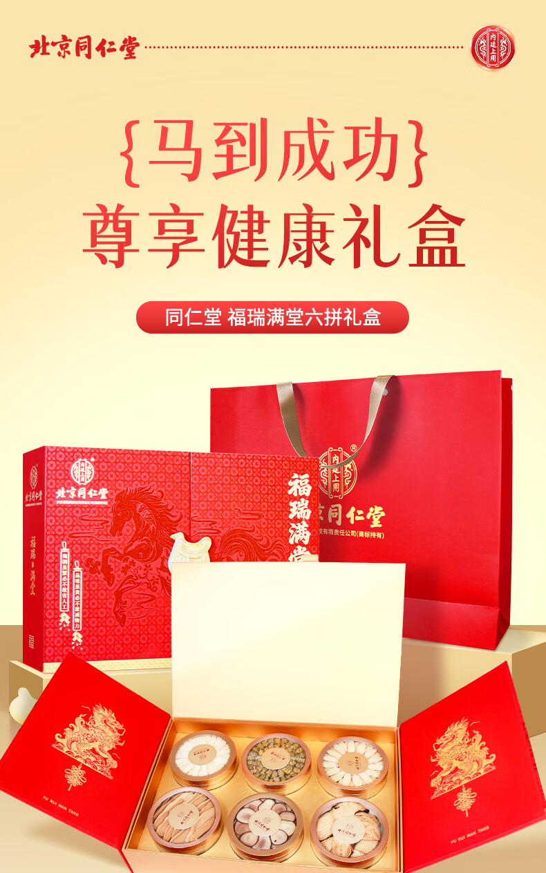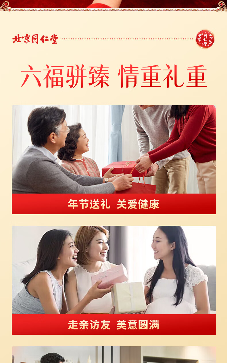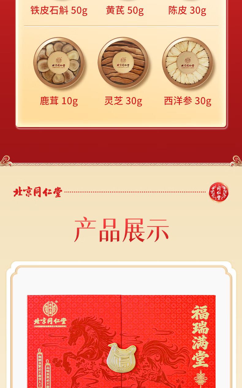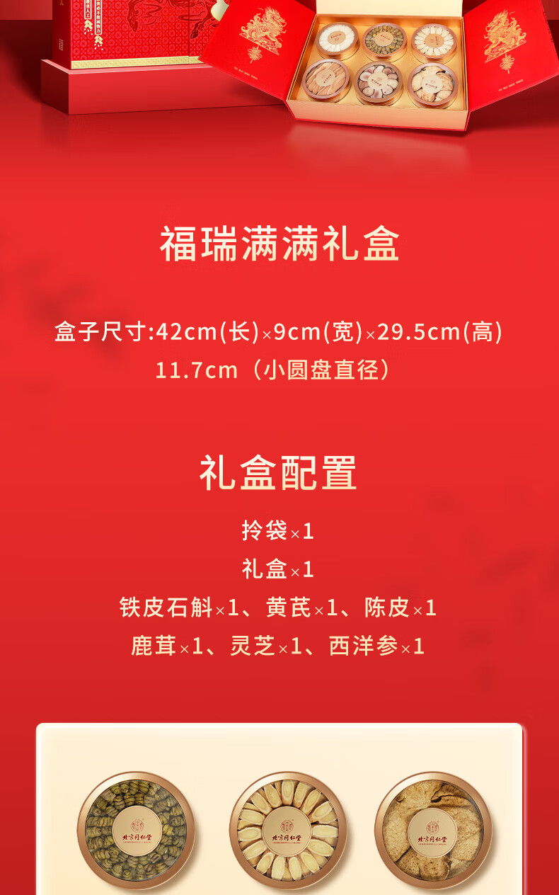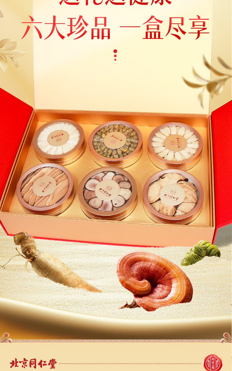 同仁堂(TRT)西洋参石斛鹿茸灵芝黄芪化橘红滋补福瑞满堂六拼礼盒送父母/送长辈/送亲戚/见客户 六拼礼盒