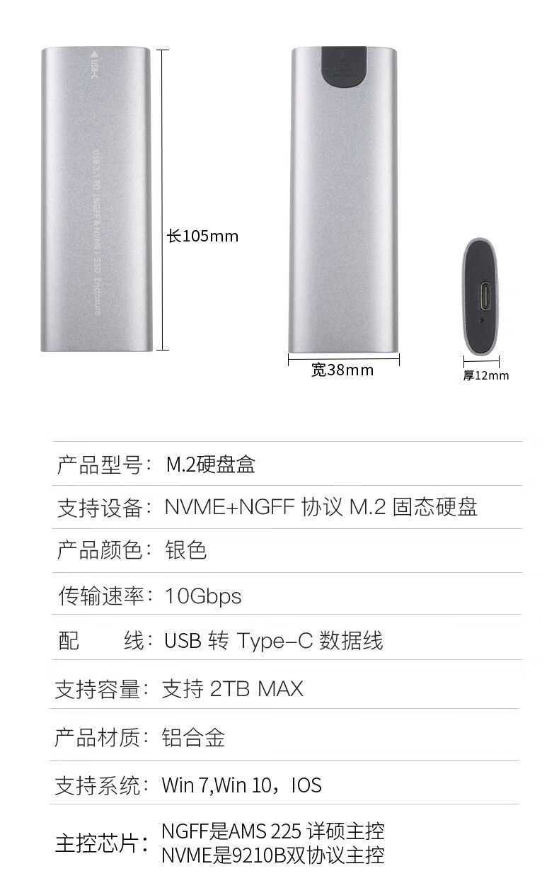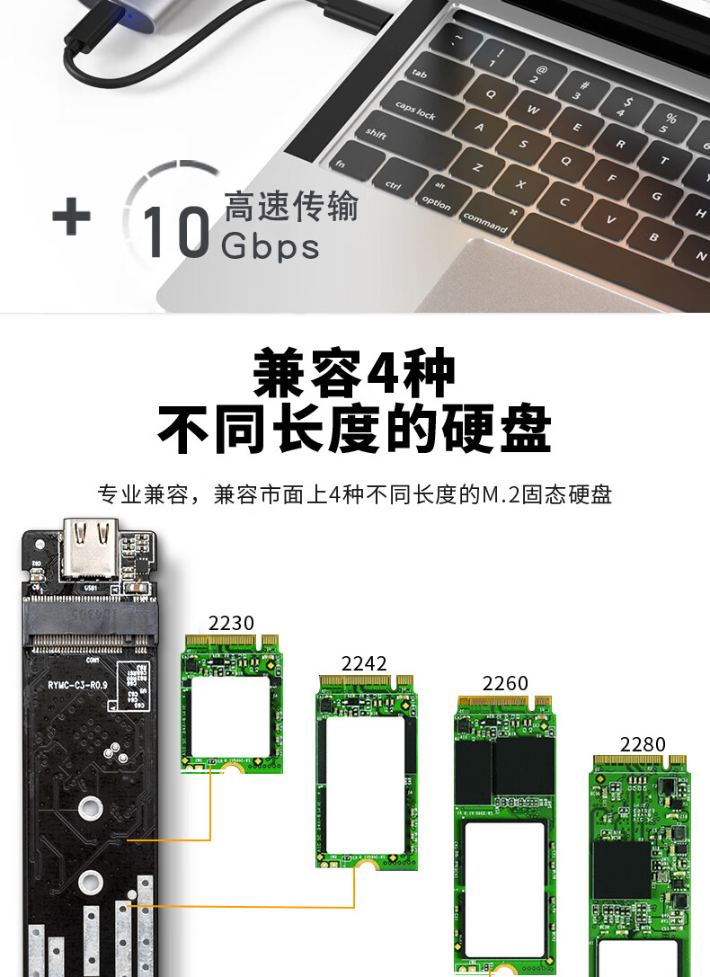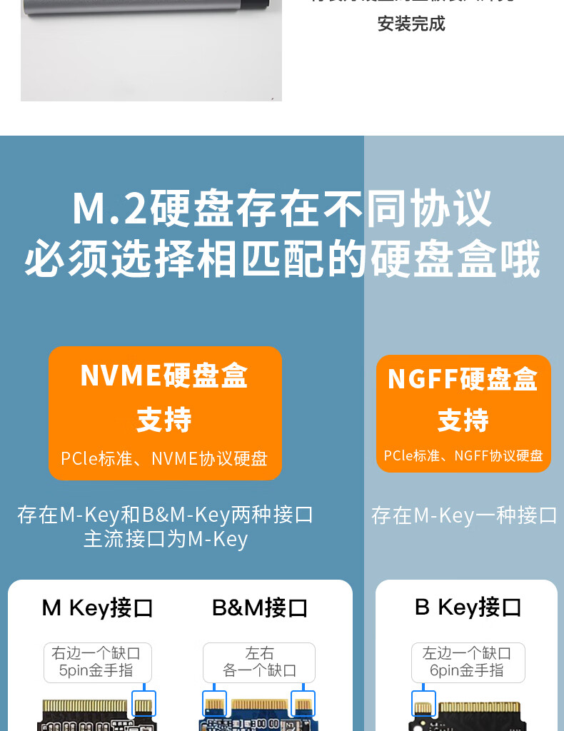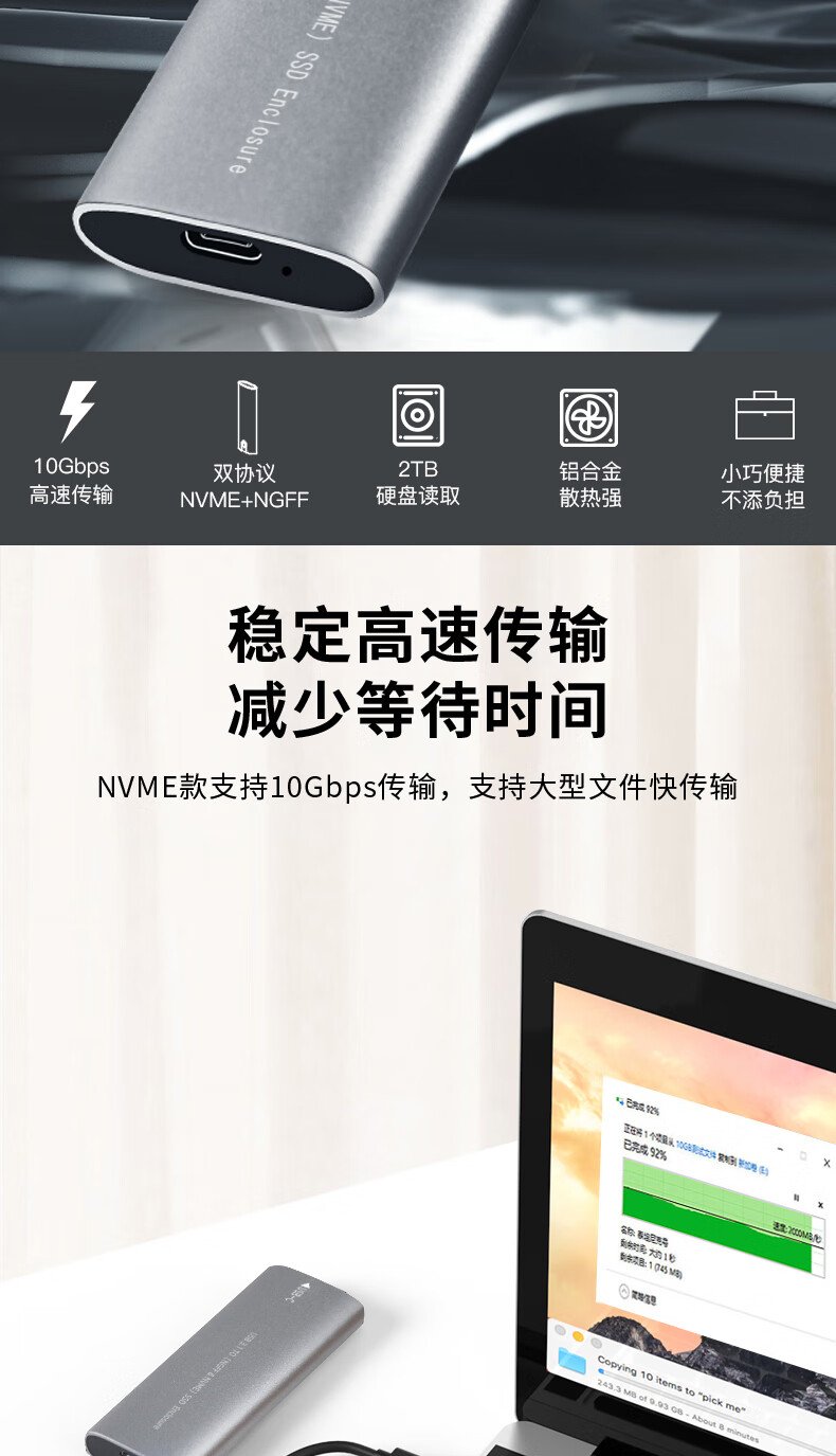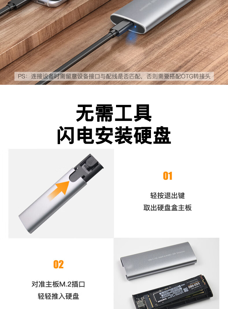 华顾M.2 NVMe/SATA移动固态硬盘盒USB3.0 SSD机械硬盘外接盒笔记本电脑高速硬盘盒子 双协议M2硬盘盒【配USB数据线】配保护套