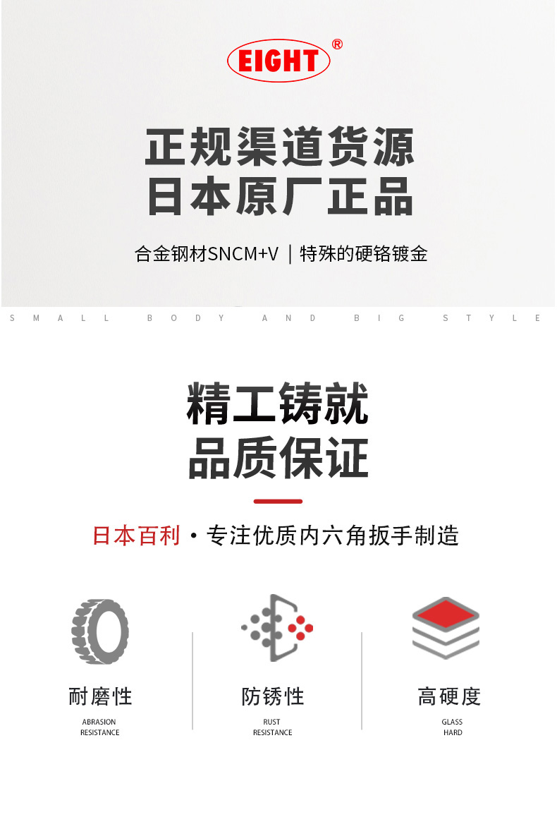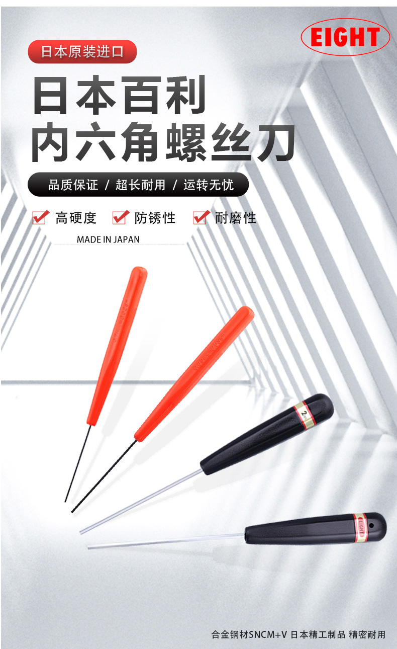 EIGHT进口日本百利单支微型六角匙手批直柄内六角扳手螺丝批型六角扳手 D-1.3(1.27mm)单支平头公制