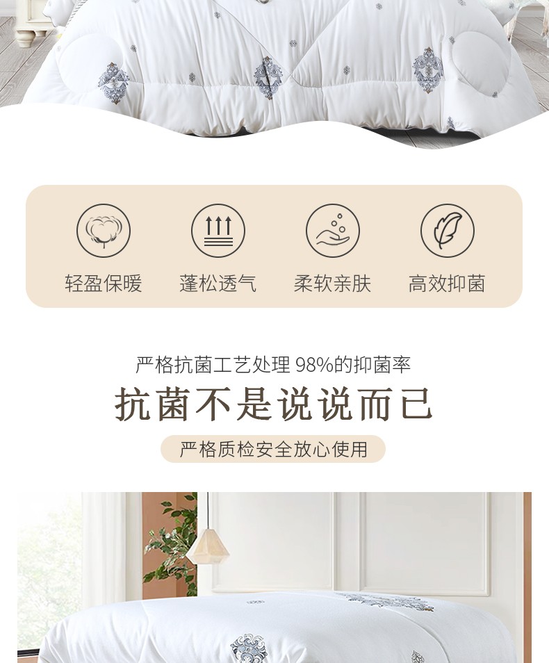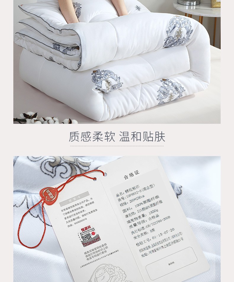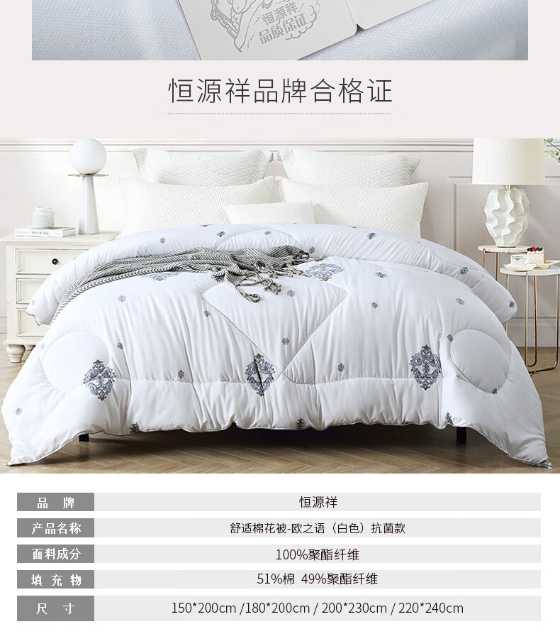 恒源祥 棉被子 新疆棉花被子抗菌学生宿舍单双人春秋被保暖加厚冬被芯 抗菌棉花被-灰色【升级款】 200*230cm 10斤
