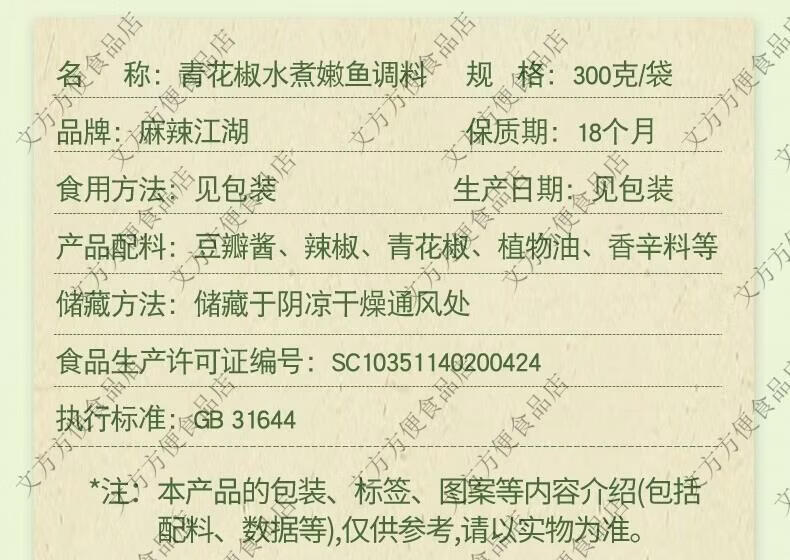 麻辣江湖青花椒麻辣鱼调料椒麻味火锅鱼底料香辣家常鱼水煮鱼调料 青花椒水煮嫩鱼300g*1