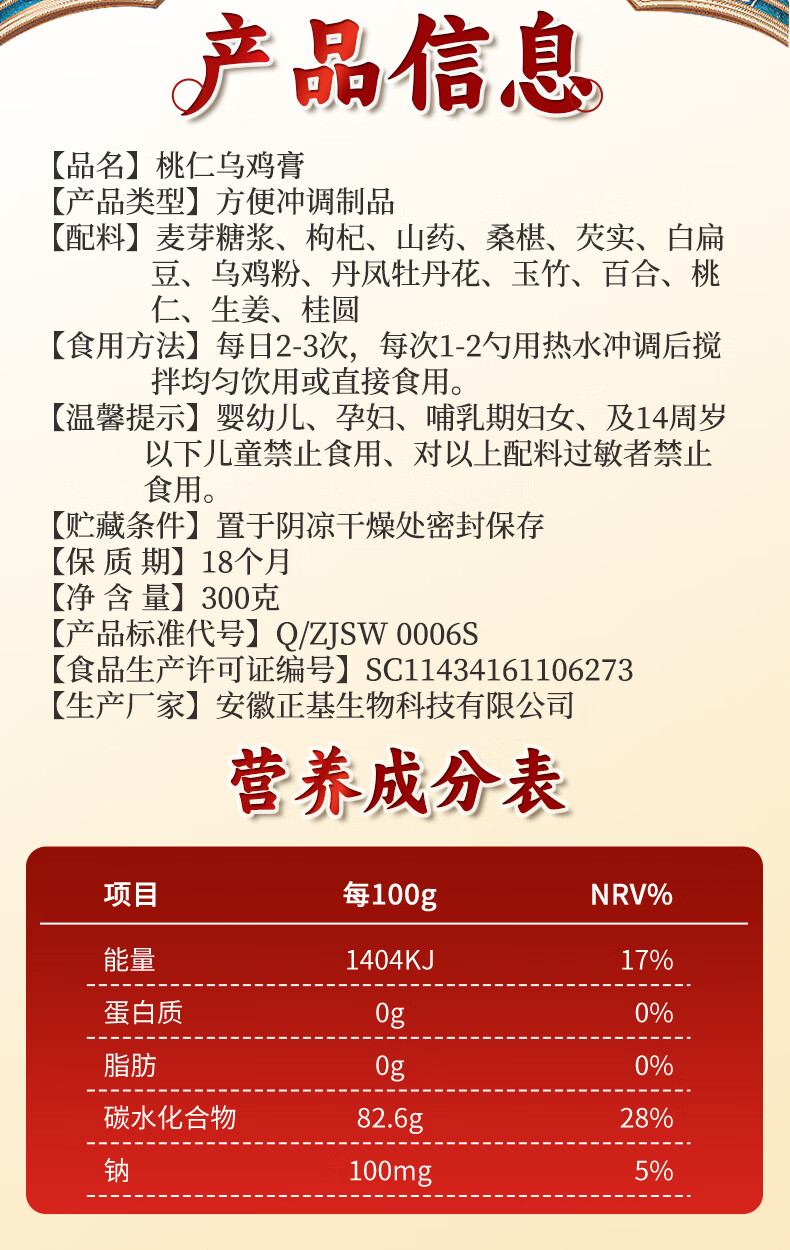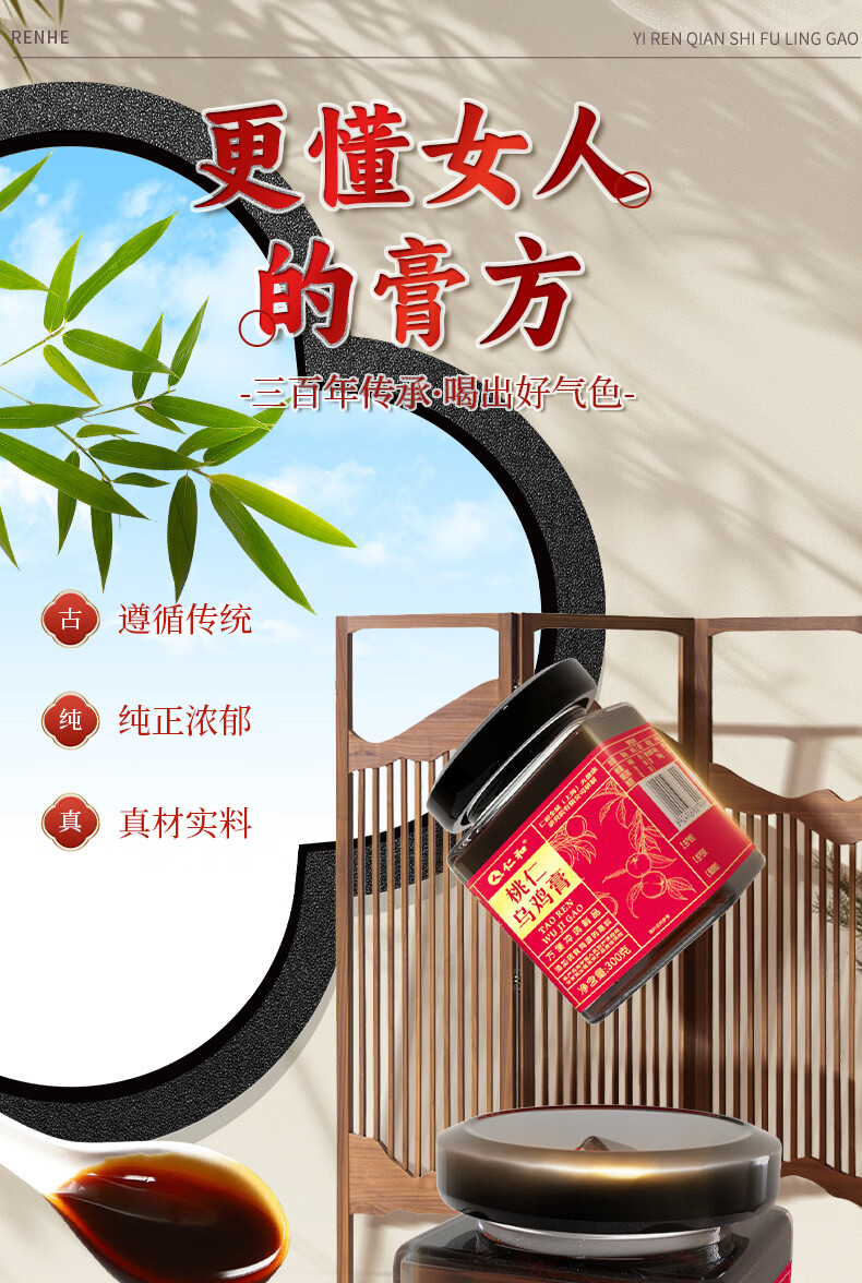 仁和桃仁乌鸡膏玉灵膏300g桂圆养生正品膏 300g*3罐