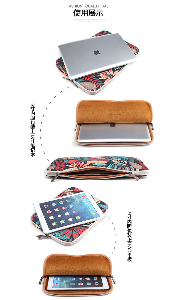 【优选】彩叶缤纷笔记本内胆包电脑包苹果 彩叶黑底 6寸竖款包Kindle(1个装)