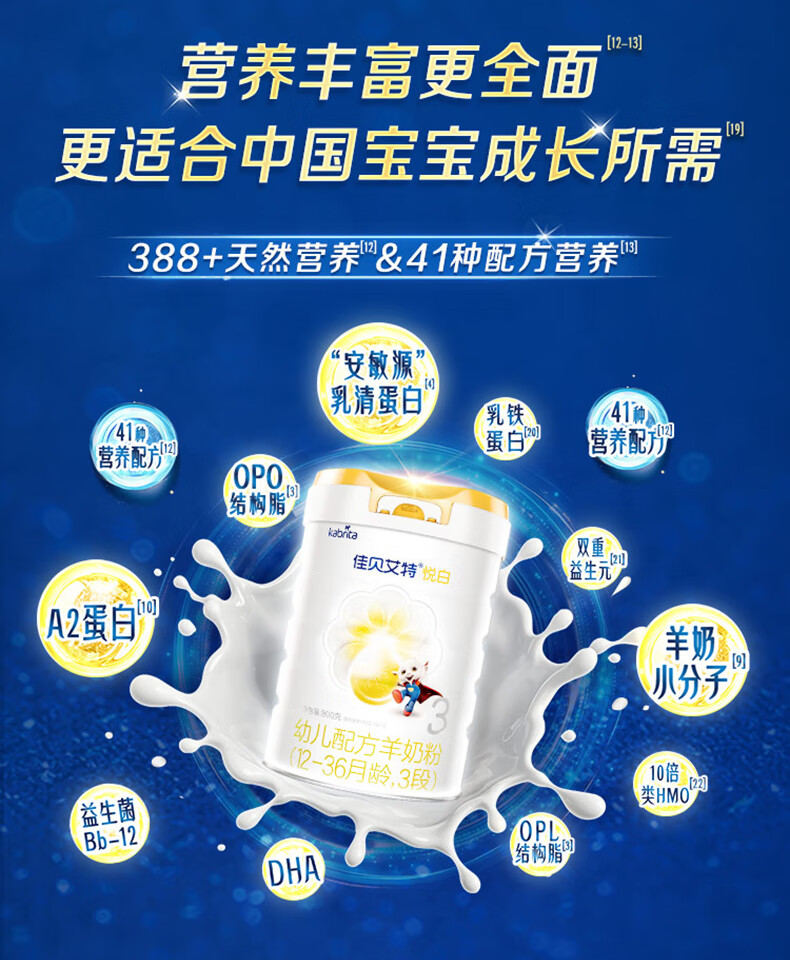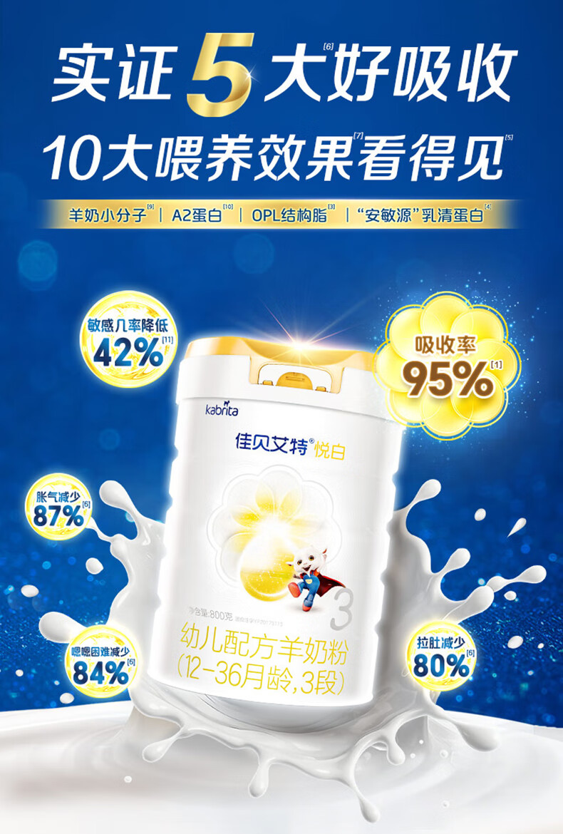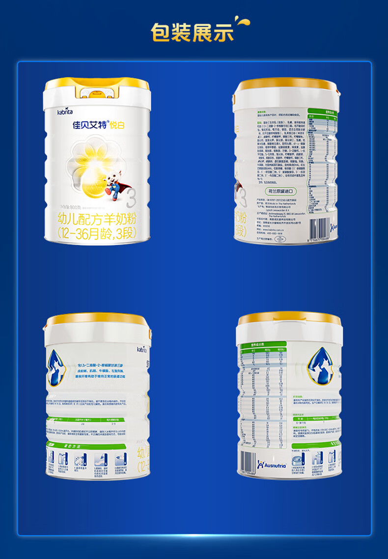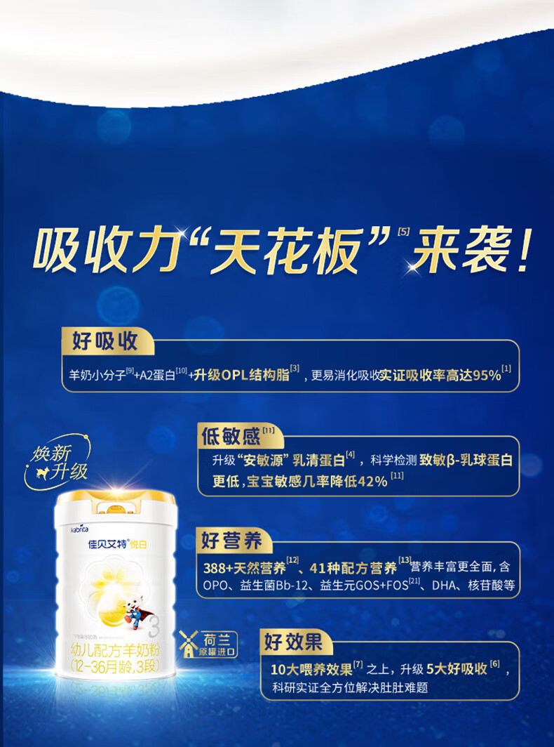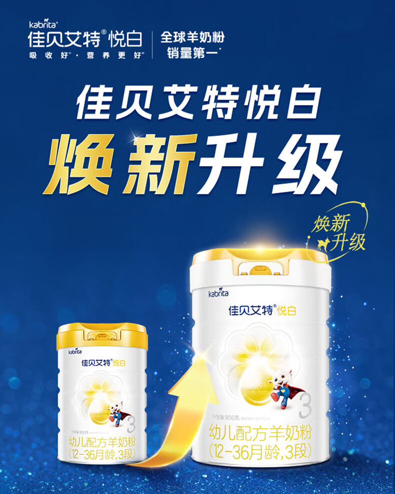 佳贝艾特(Kabrita)新悦白婴幼儿配方羊奶粉 3段(1-3岁)800克 天然A2蛋白