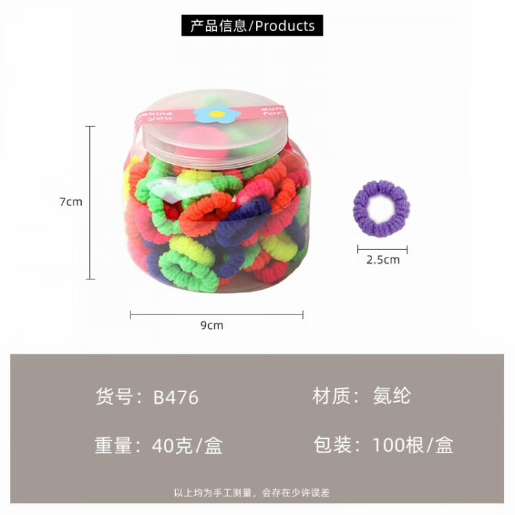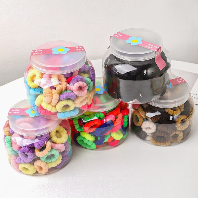 十全十美(IT'S A 10)100根盒装皮筋儿童无痕头绳发饰甜美收纳杯发绳针织无接缝发圈 3#春天色(约100根)