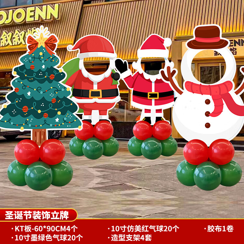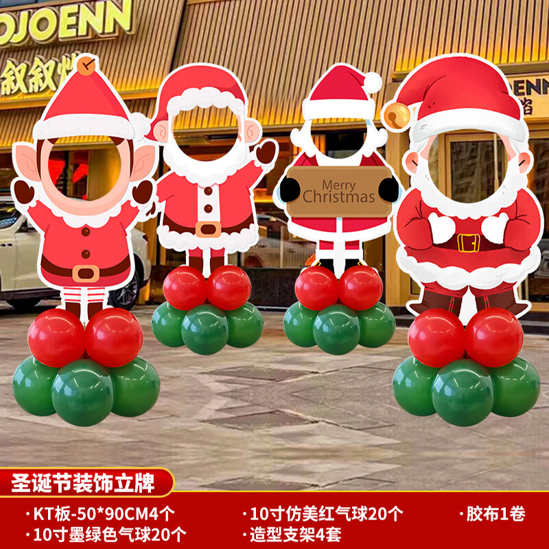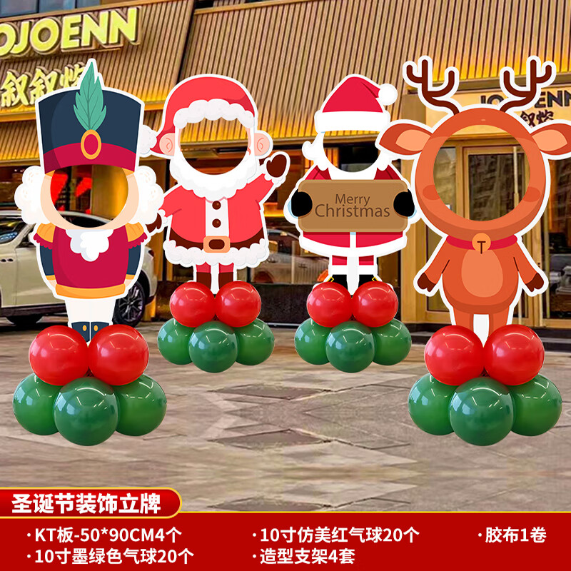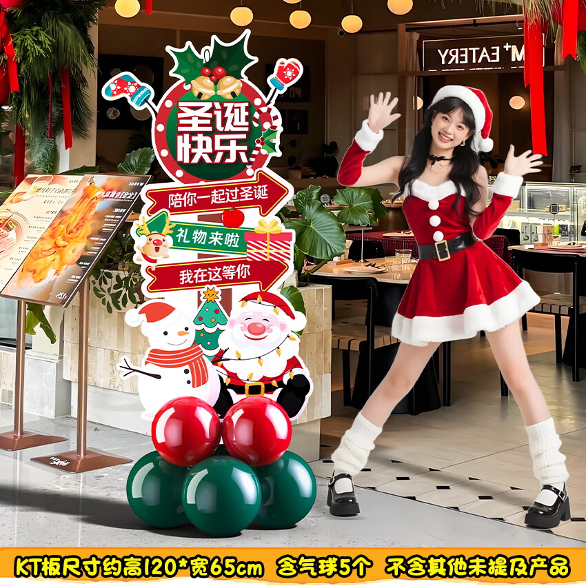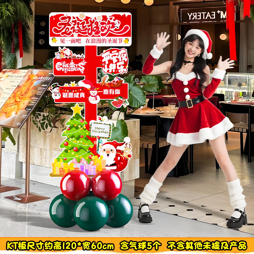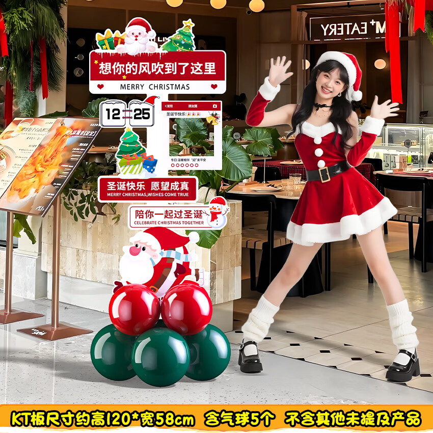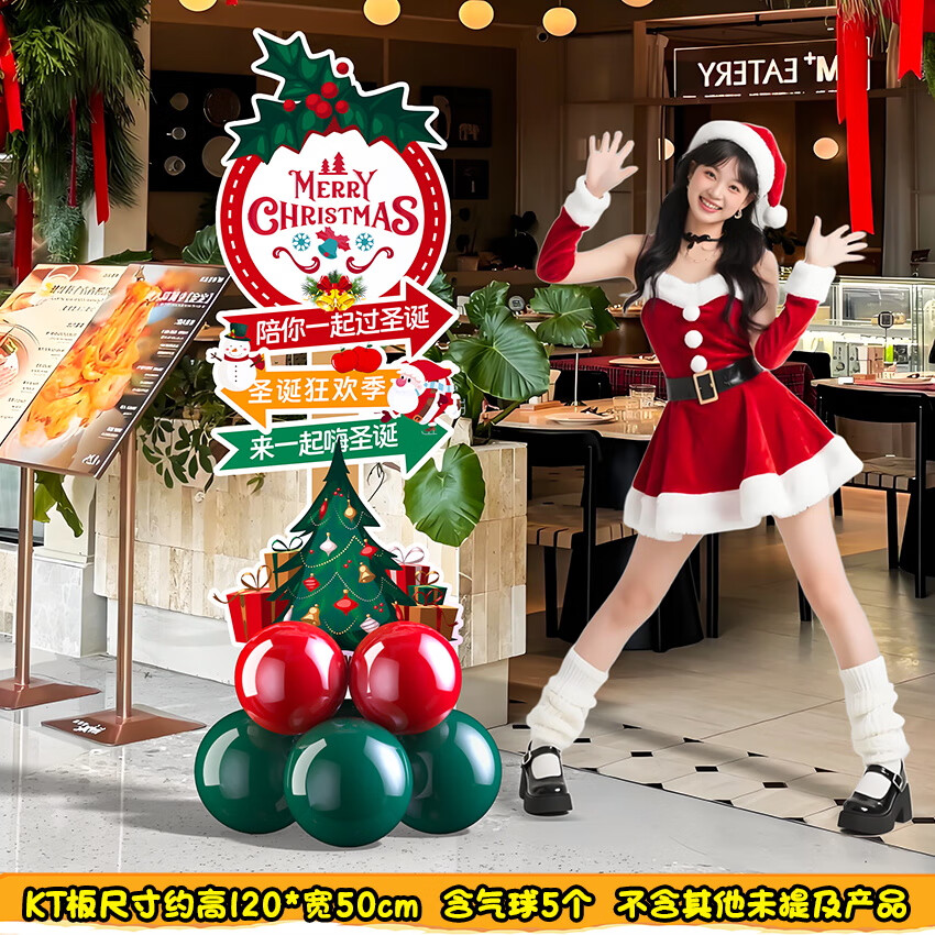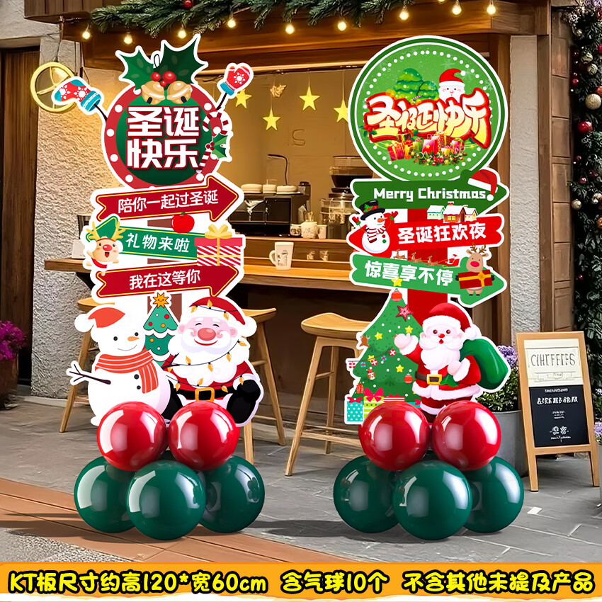 2025圣诞节装饰场景布置商场店铺氛围拍照道具气球kt板背景墙定制 当日发/02款圣诞节手举牌