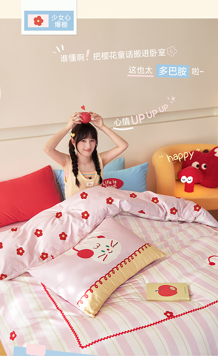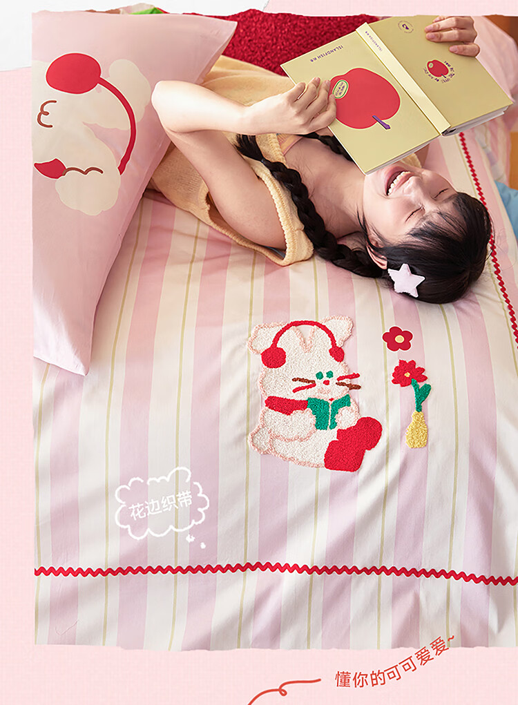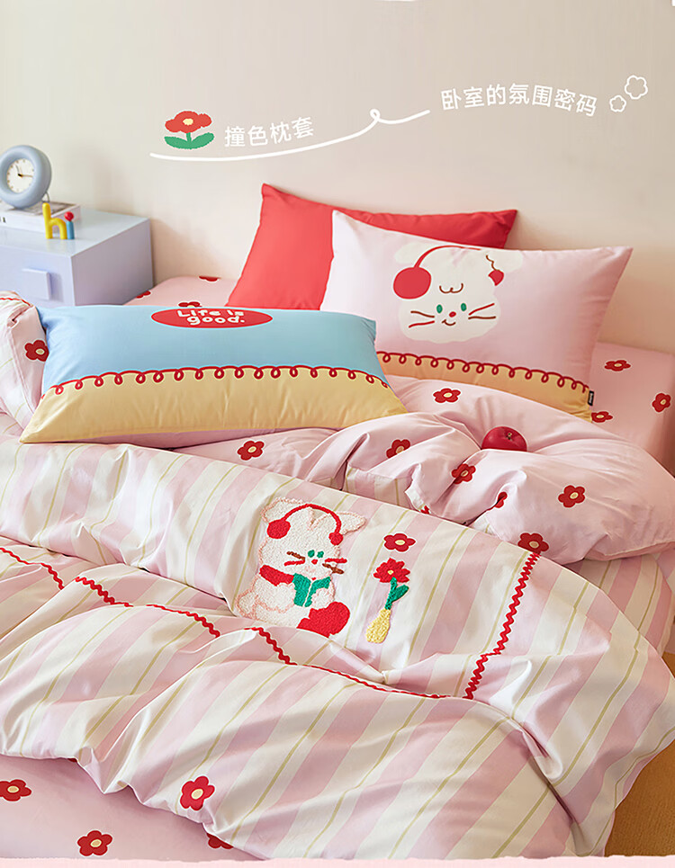 高睿老粗布非纯棉床笠单件加厚床罩防滑床单防尘罩全包席梦思保护罩 花底耳机兔 【单床笠】 90cm*200cm