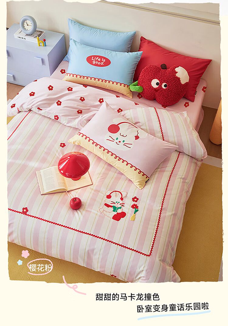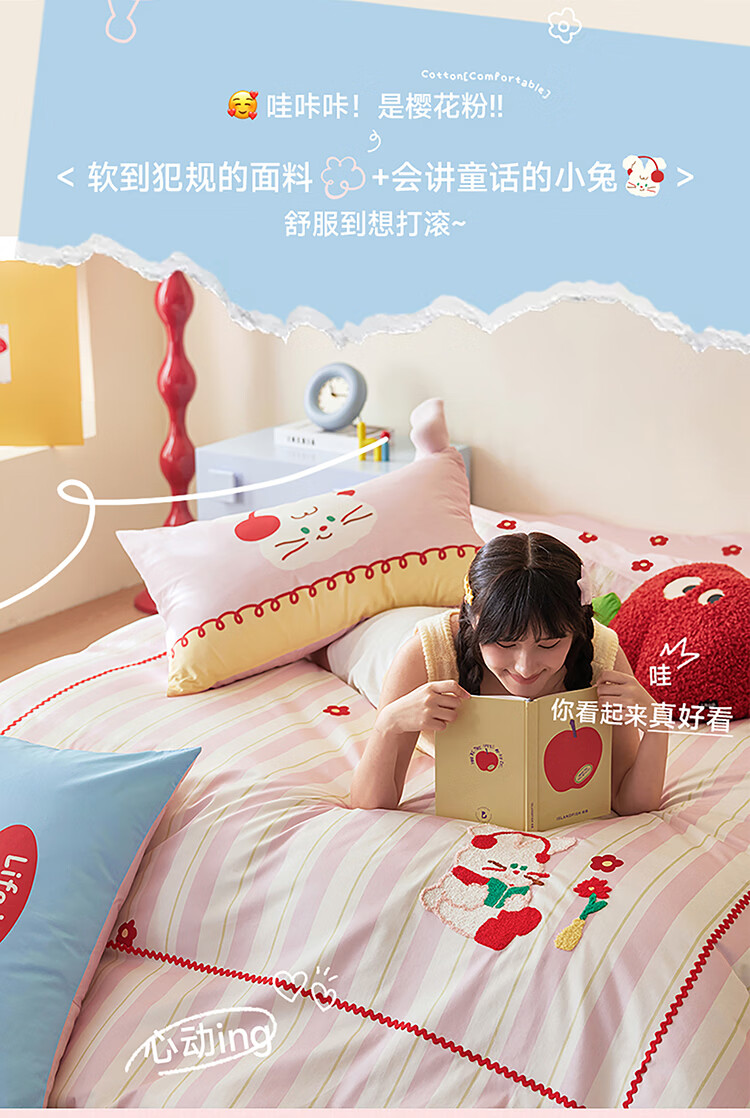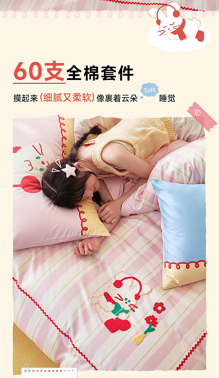 多喜爱家纺纯棉床上四件套 轻奢60支全棉贡缎刺绣双人床单被套床品套件1.5床203*229cm
