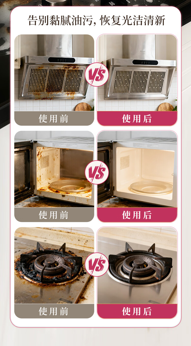 优洁士 抽油烟机清洗剂厨房重油污清洁剂油烟净油污净厨房多功能清洗剂 油烟机清洗剂 两瓶装 强力型