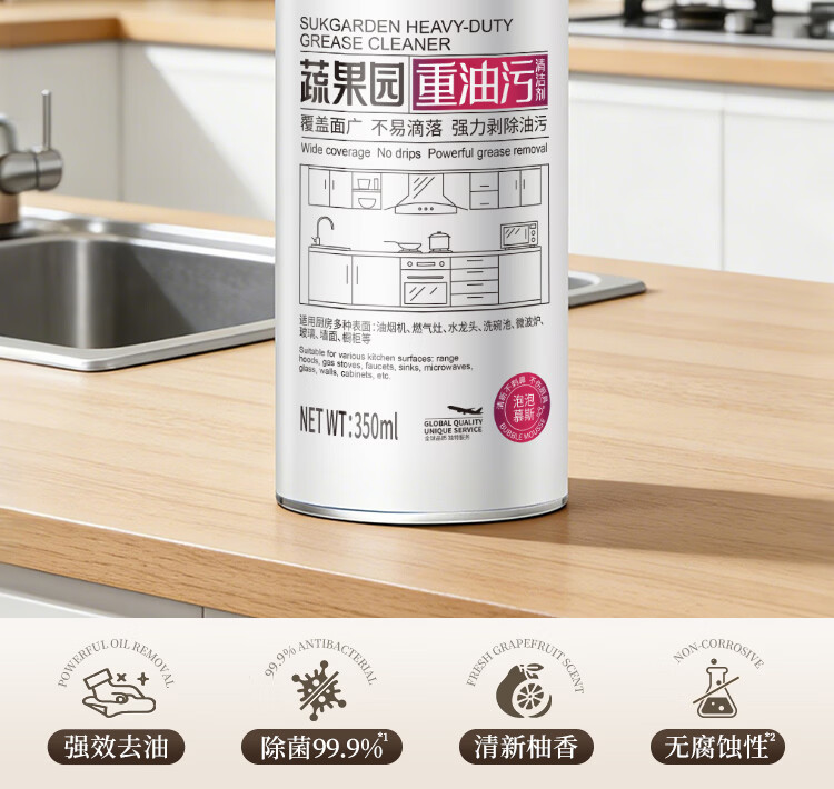 蔬果园重油污清洁剂350ml*2瓶厨房重油污清洁剂油烟机灶台