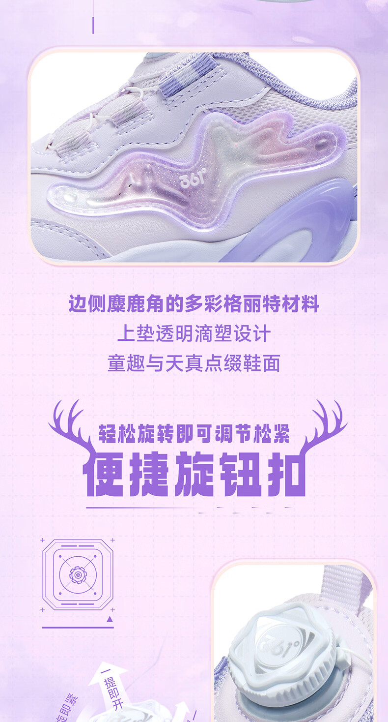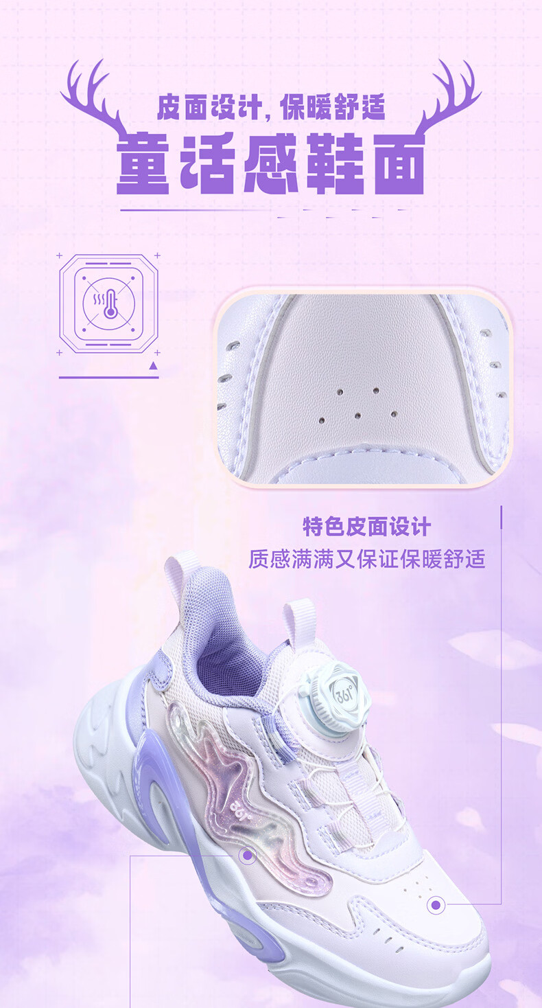 361°童鞋2025冬季小童女童旋纽扣跑鞋 白32