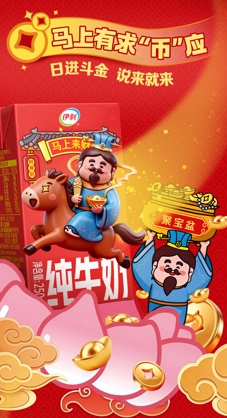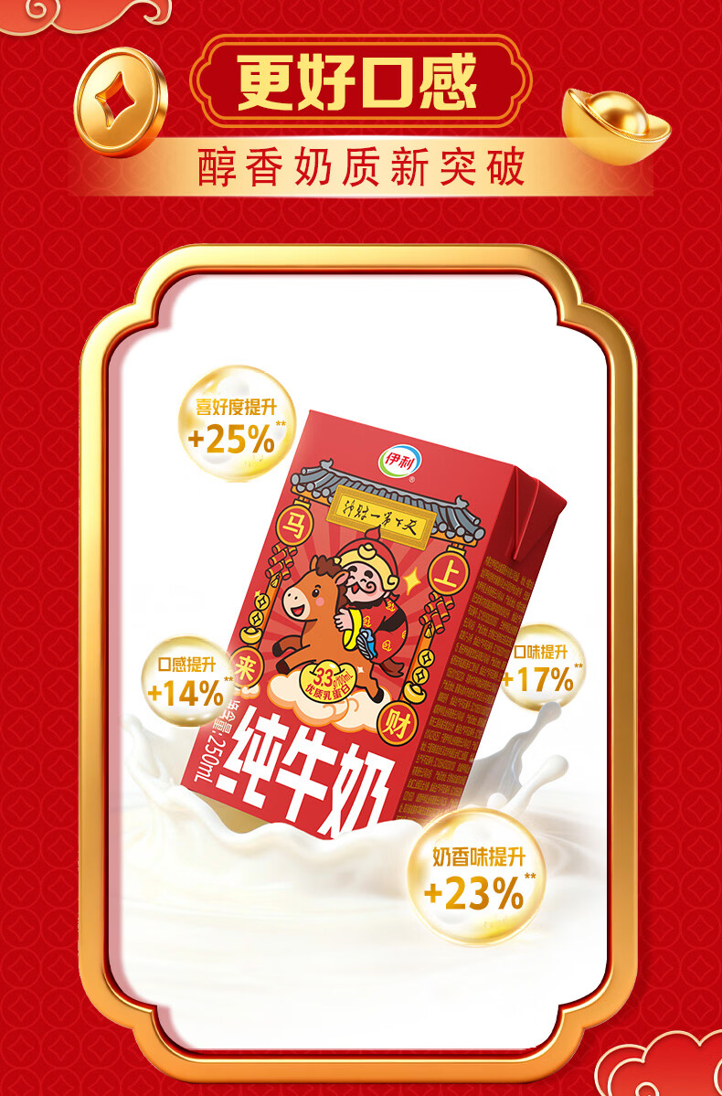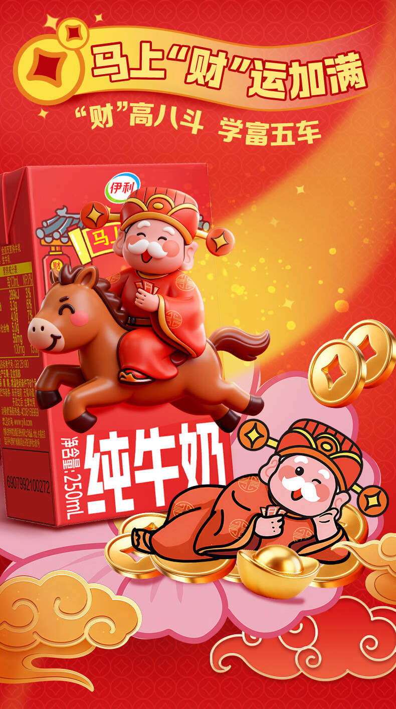 伊利【新鲜日期】纯牛奶250ml*21盒 年货送礼 财神年货礼盒装