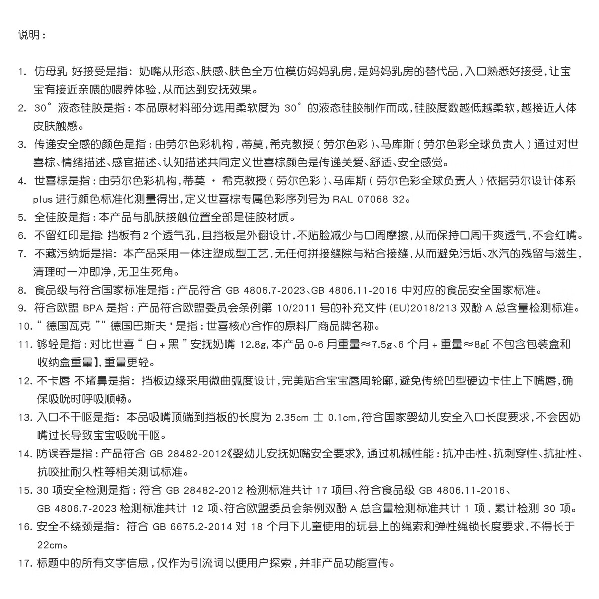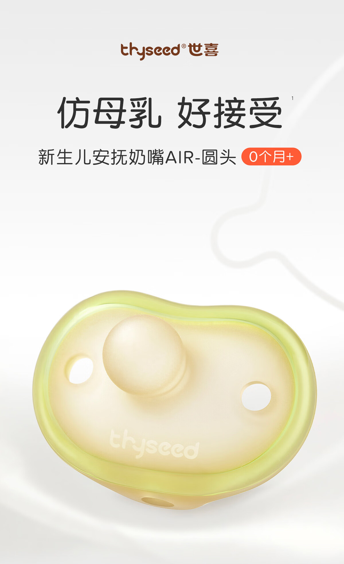 世喜安抚奶嘴0-3-6个月防胀气新生婴儿日用圆头全硅胶超轻air款