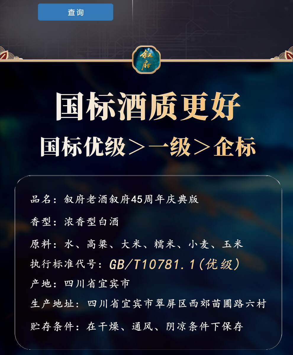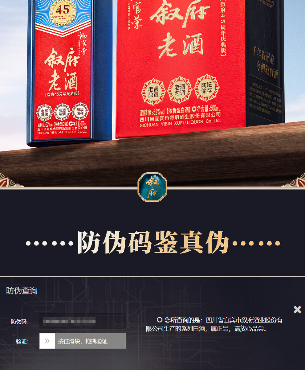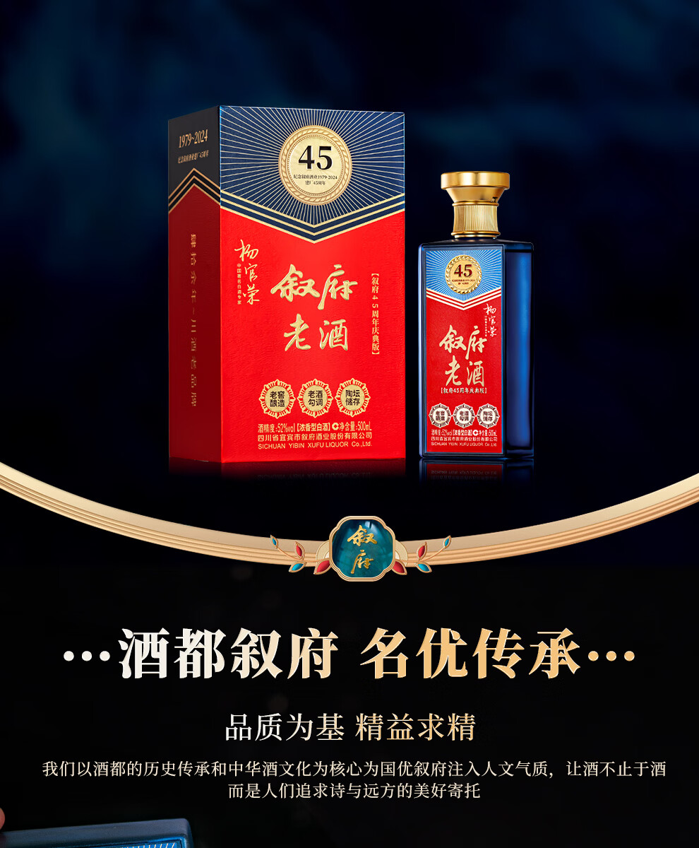 叙府老酒建厂纪念酒 45周年庆典版 纯粮浓香型白酒 大师签名 52%vol 500mL 6瓶 原箱发货