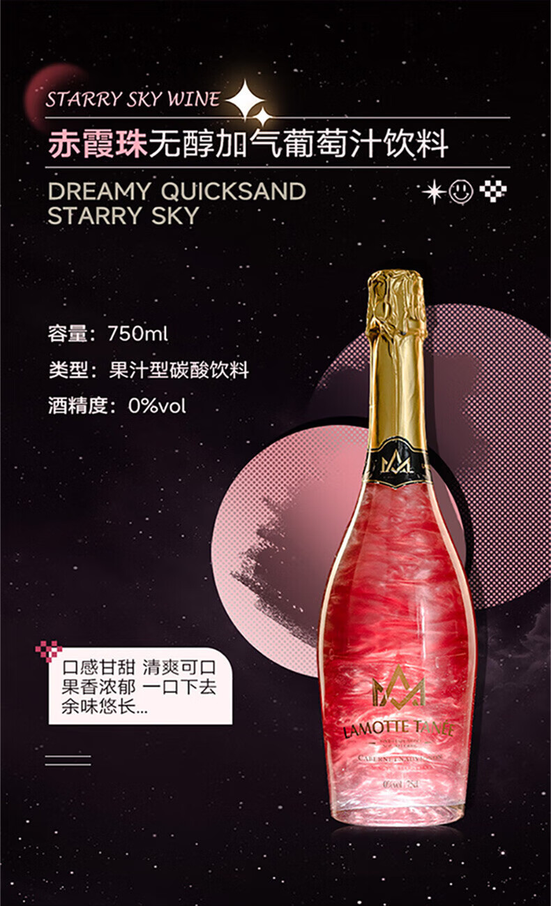 拉蒙塔尼星空酒 无醇无酒精葡萄汁红白葡萄起泡酒气泡酒 年货礼盒 750ML*4