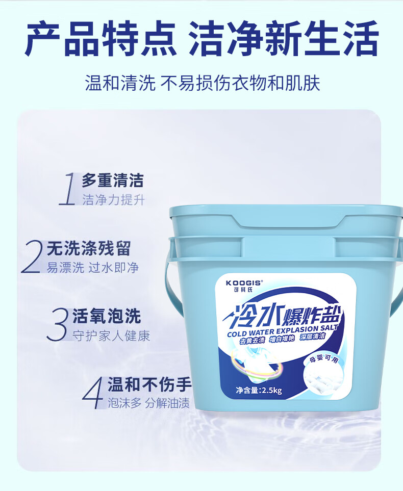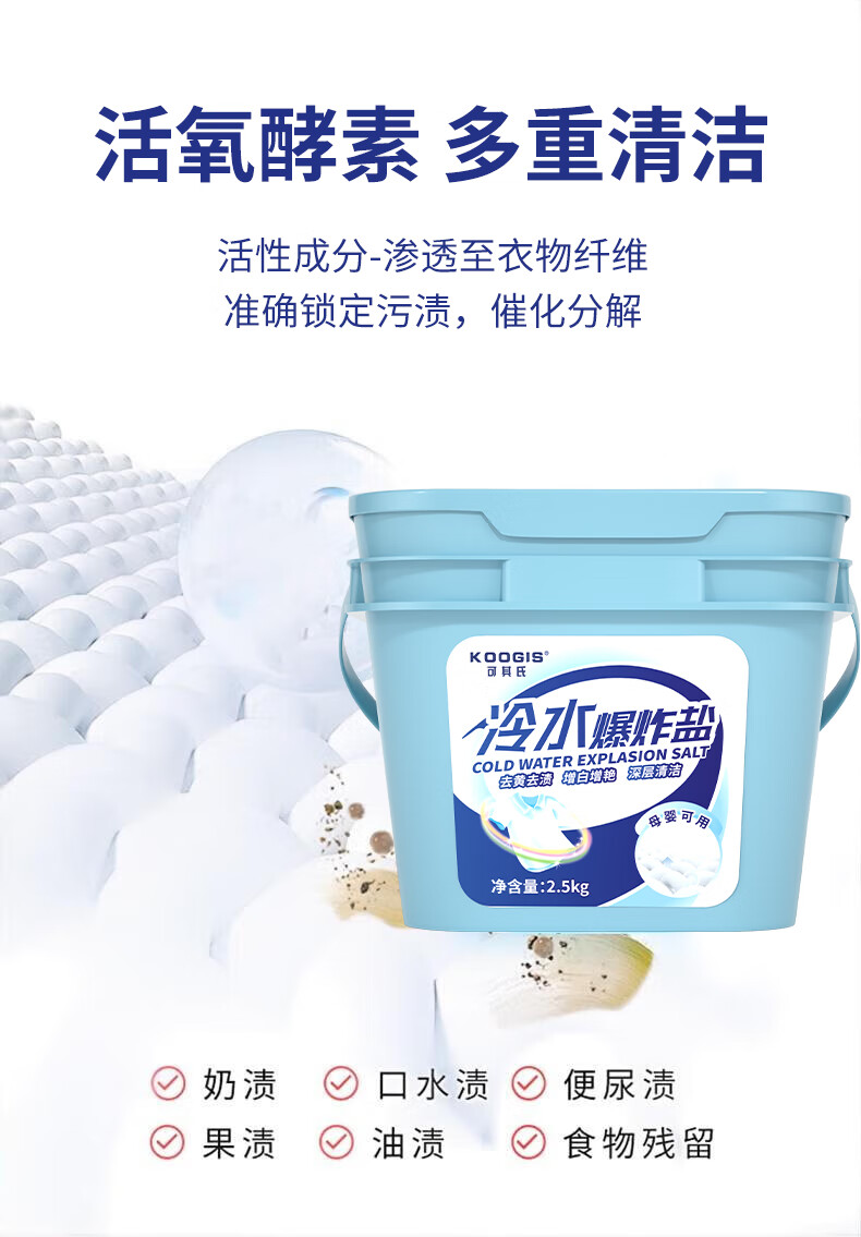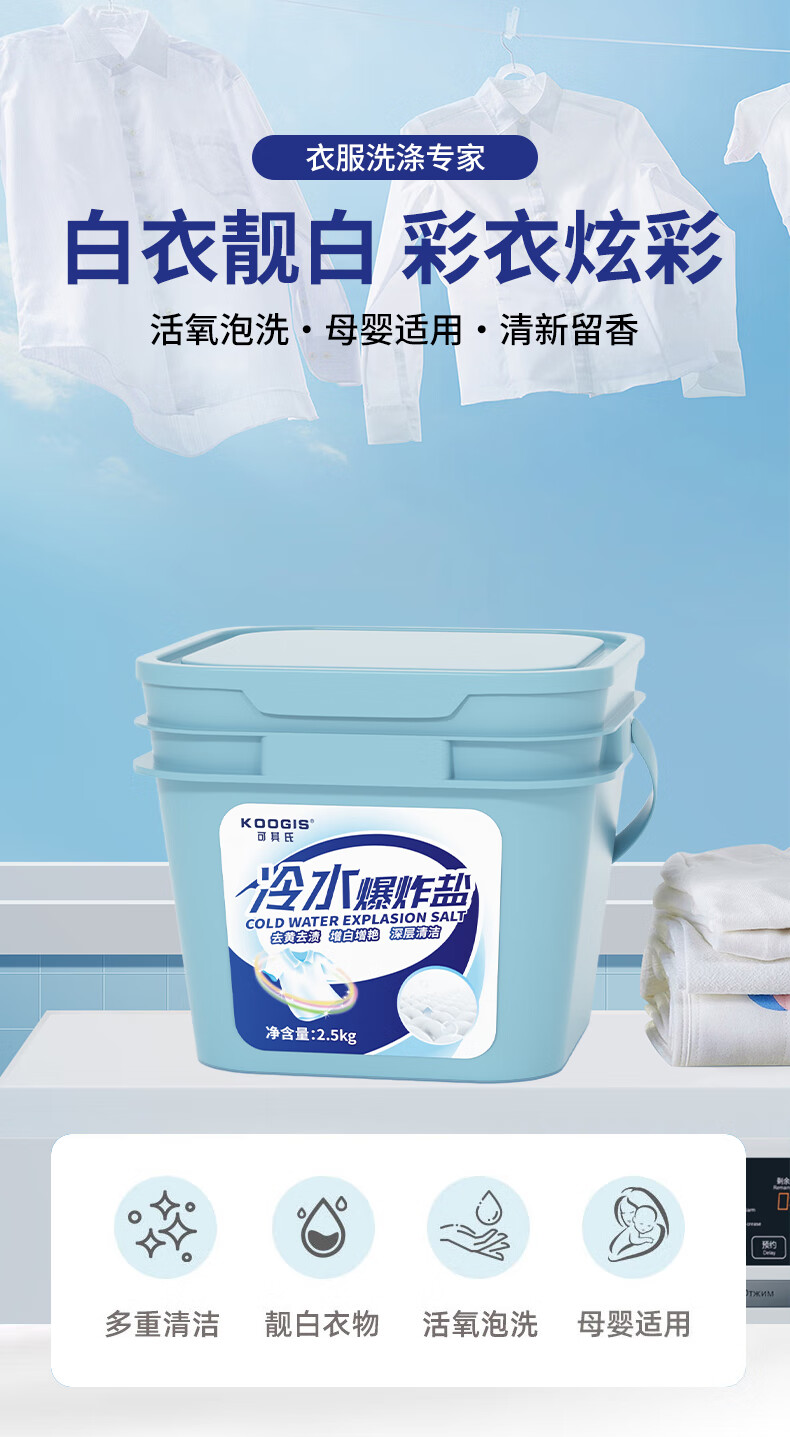 KOOGIS冷水爆炸盐衣服去污渍去黄增白漂白剂水白色衣物服彩漂洗衣液神器