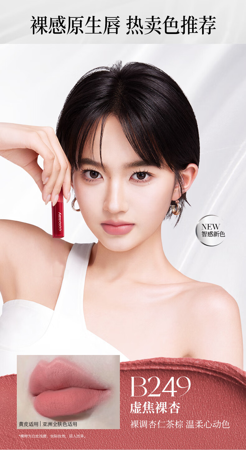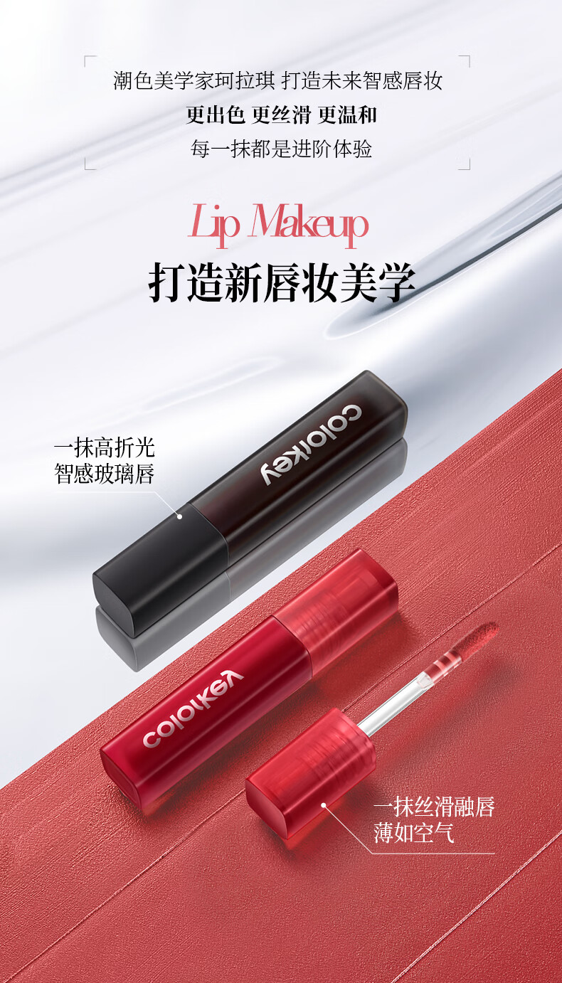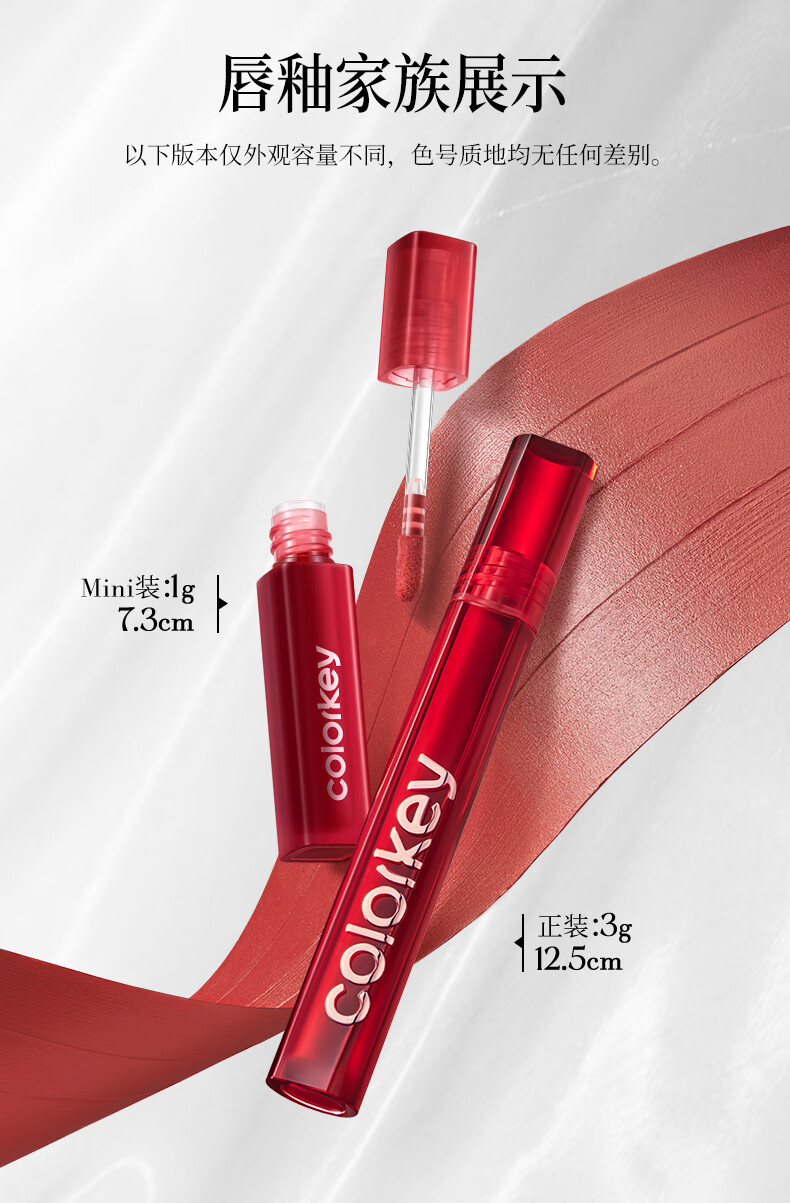 Color Key珂拉琪系列空气唇釉R608迷你装口红不沾杯雾面哑光送女友新年礼物