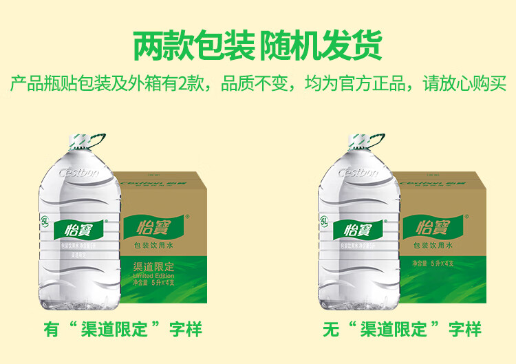怡宝包装饮用水5L*4瓶整箱装 渠道限定