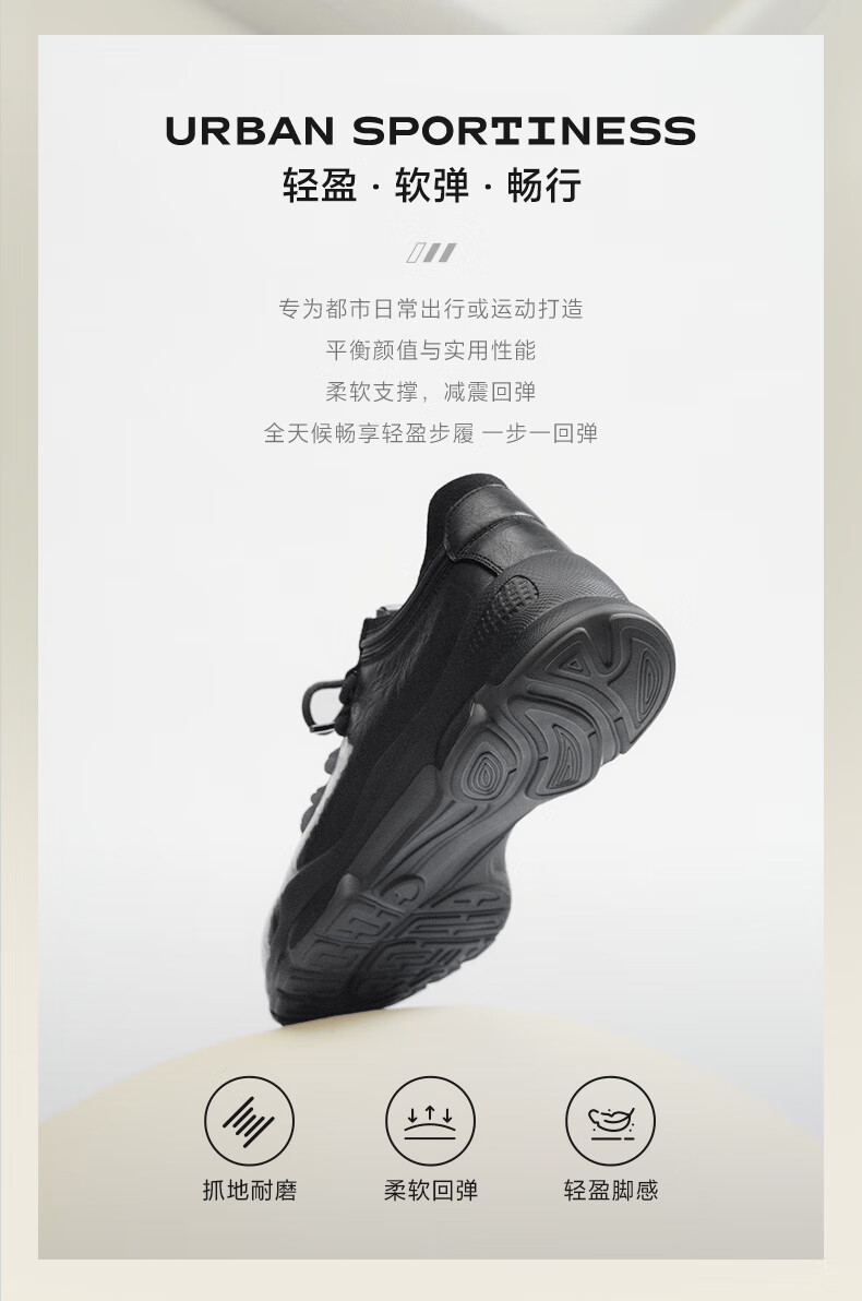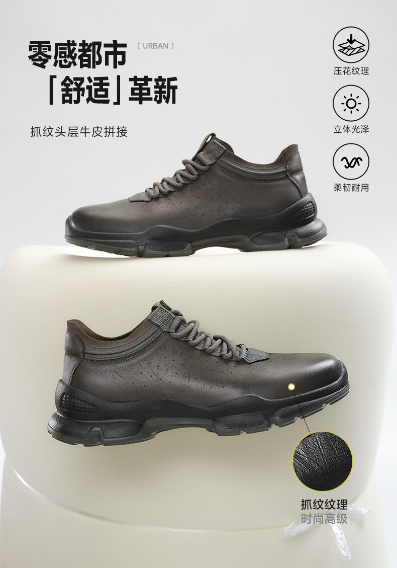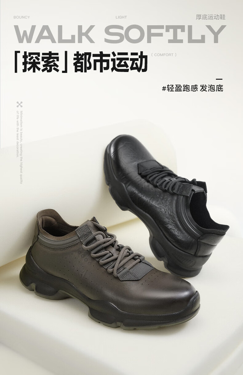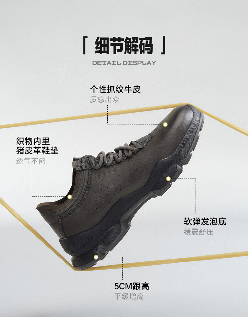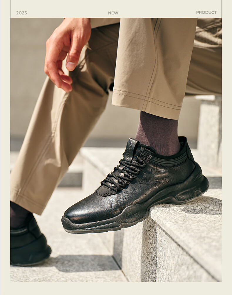 百丽厚底增高健步鞋男25秋新抓纹牛皮户外休闲运动鞋A2215CM5 黑色 40 (250mm)