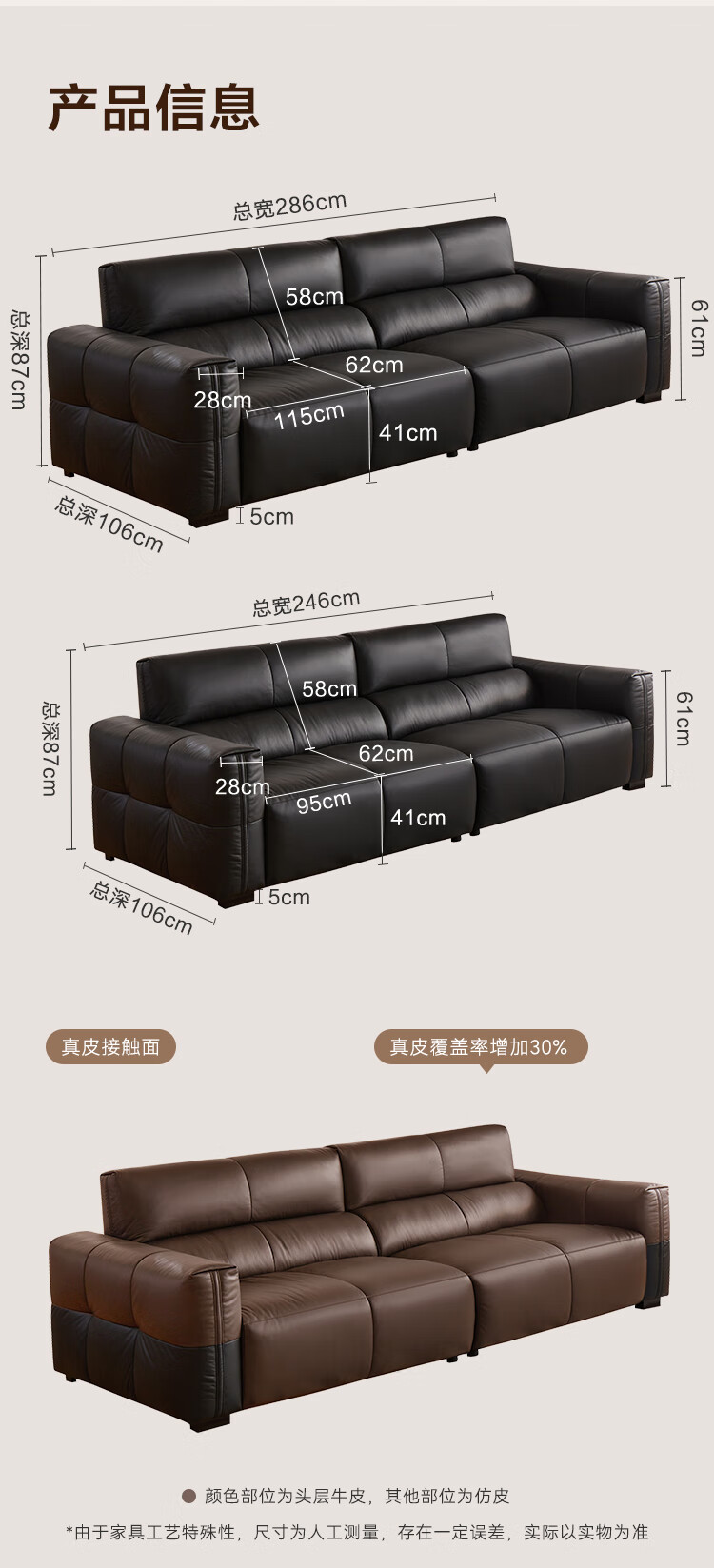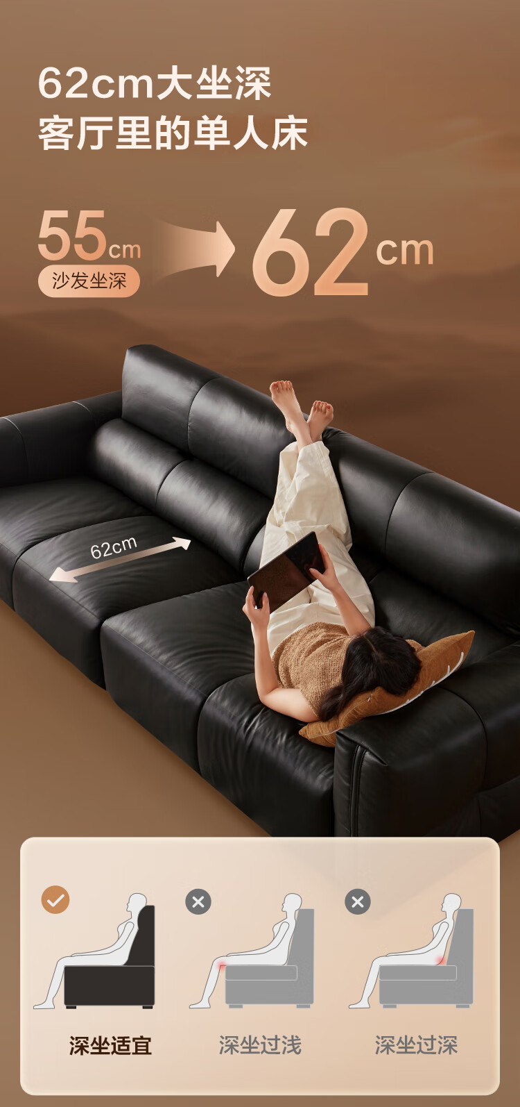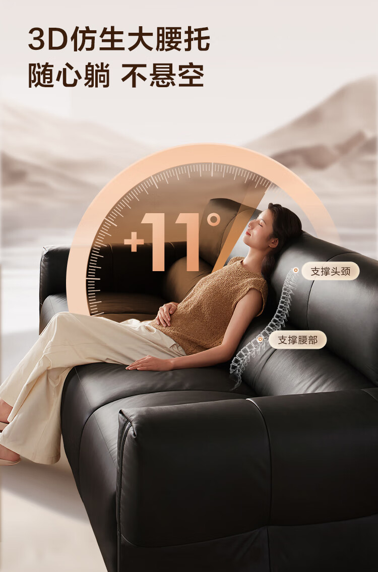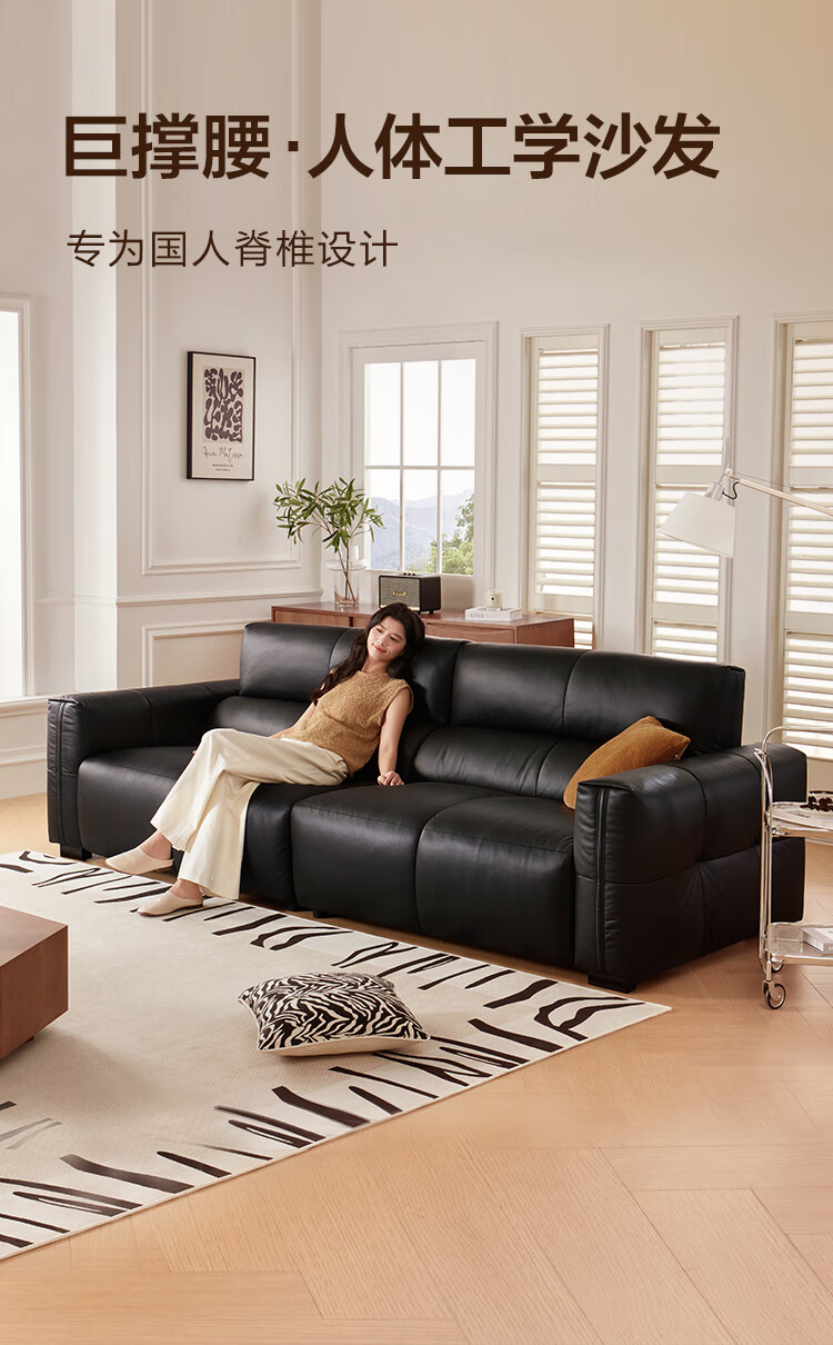 京东京造巨撑腰皮艺沙发 人体工学坐靠系统防刮耐磨生态皮客厅大户型2.86m