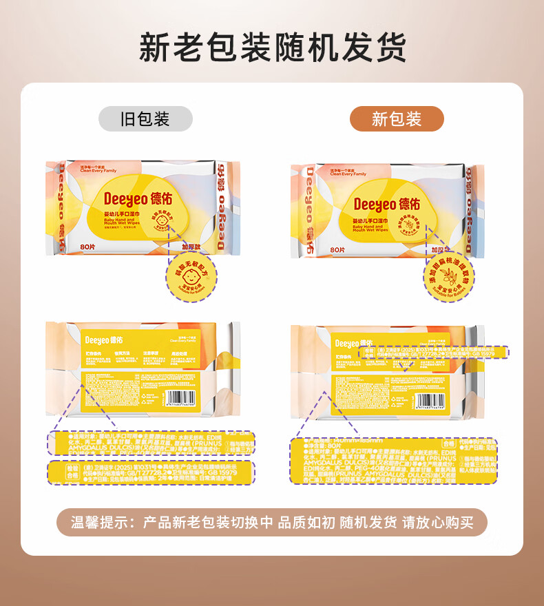 德佑婴儿手口湿巾 手口专用加厚尊享版 新生儿湿纸巾大包囤货80抽18包