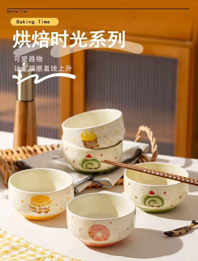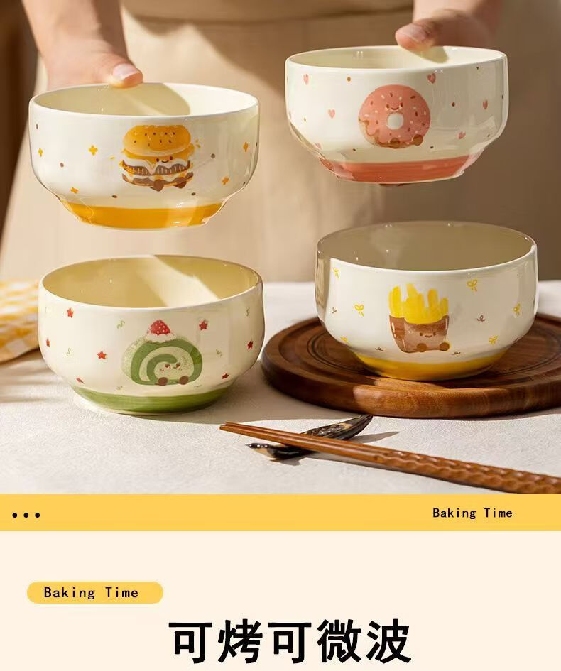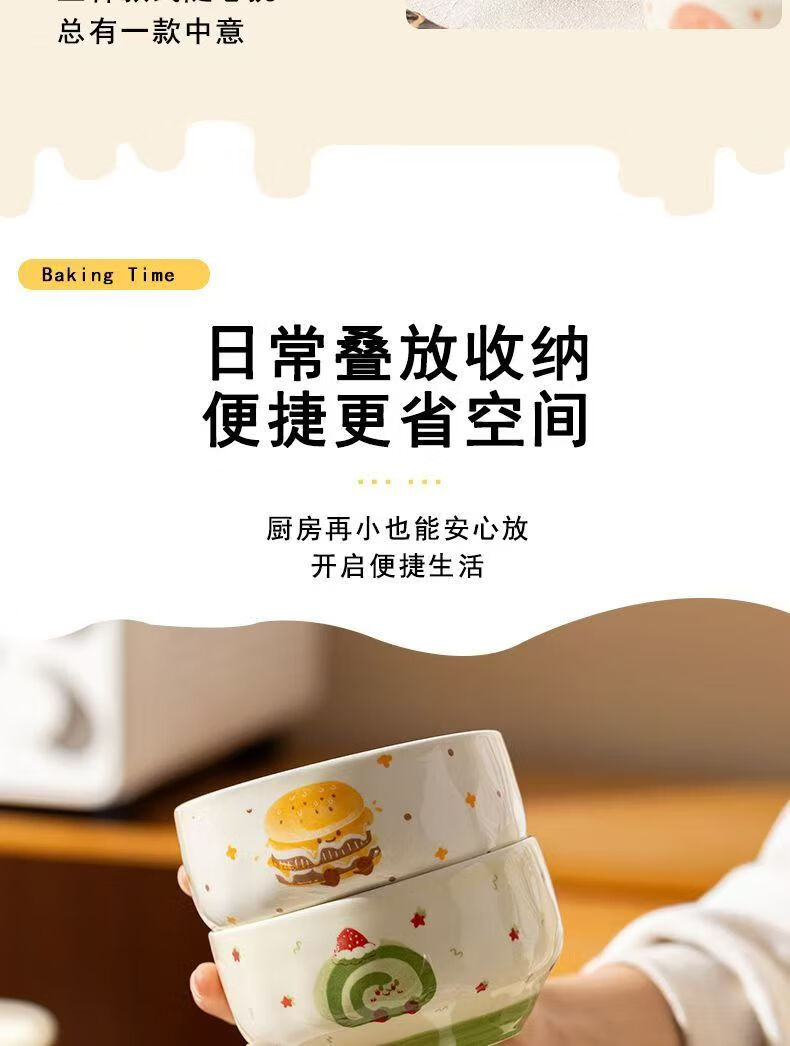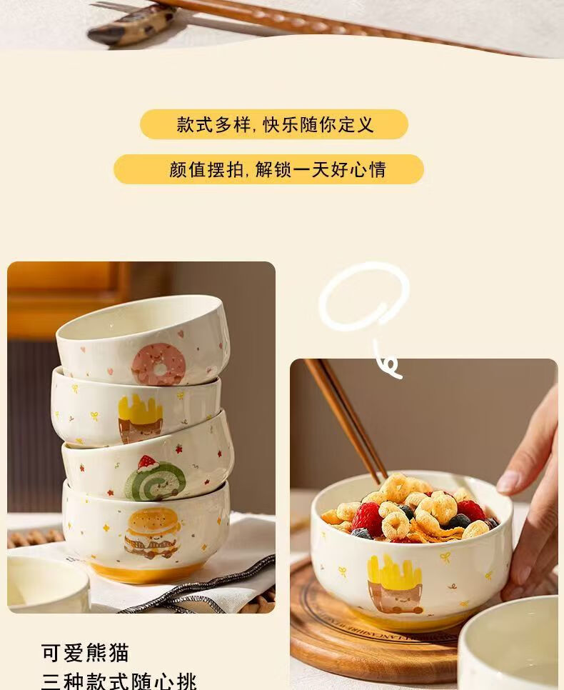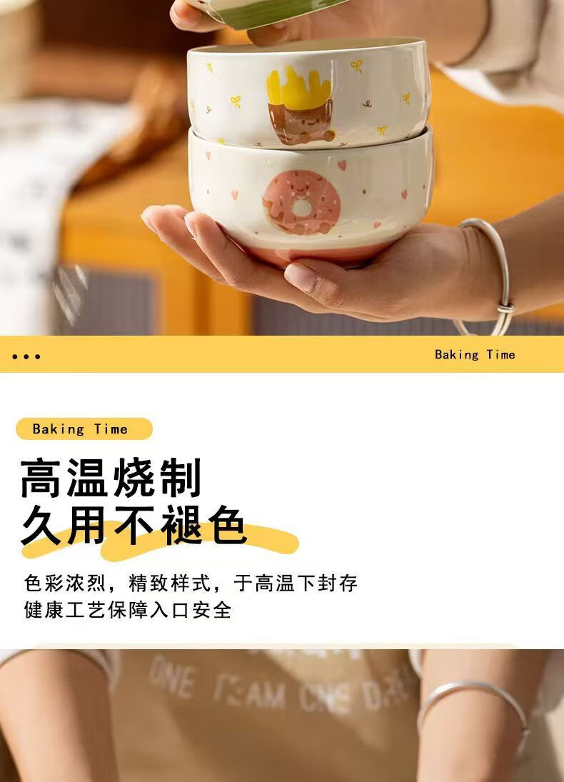 碗家用吃饭碗新款可爱ins风餐具陶瓷釉下彩高颜值简约少女心 【混色】4.5英寸新款奶油碗2只装