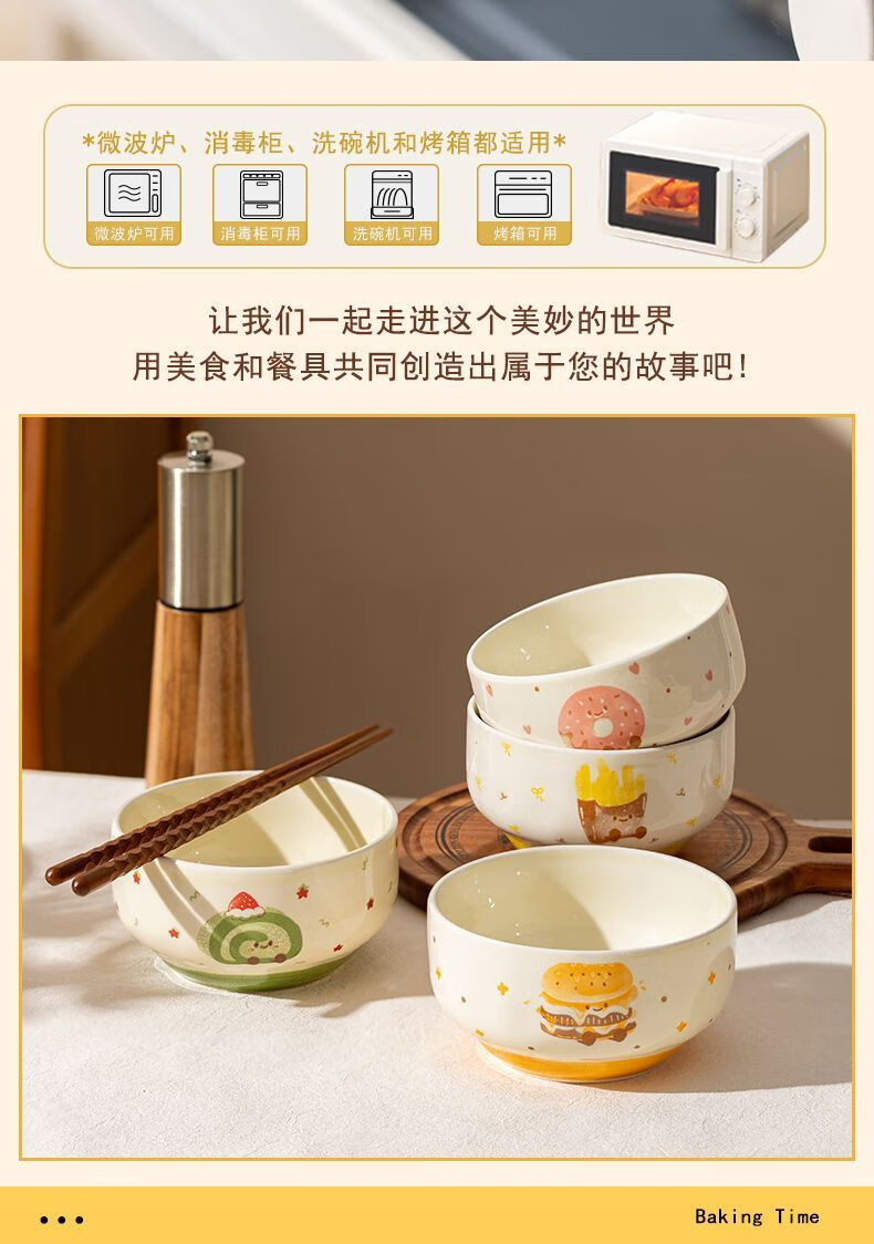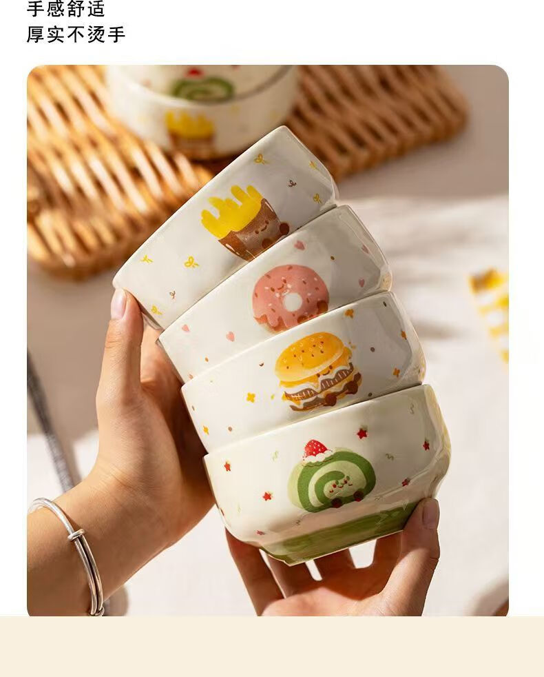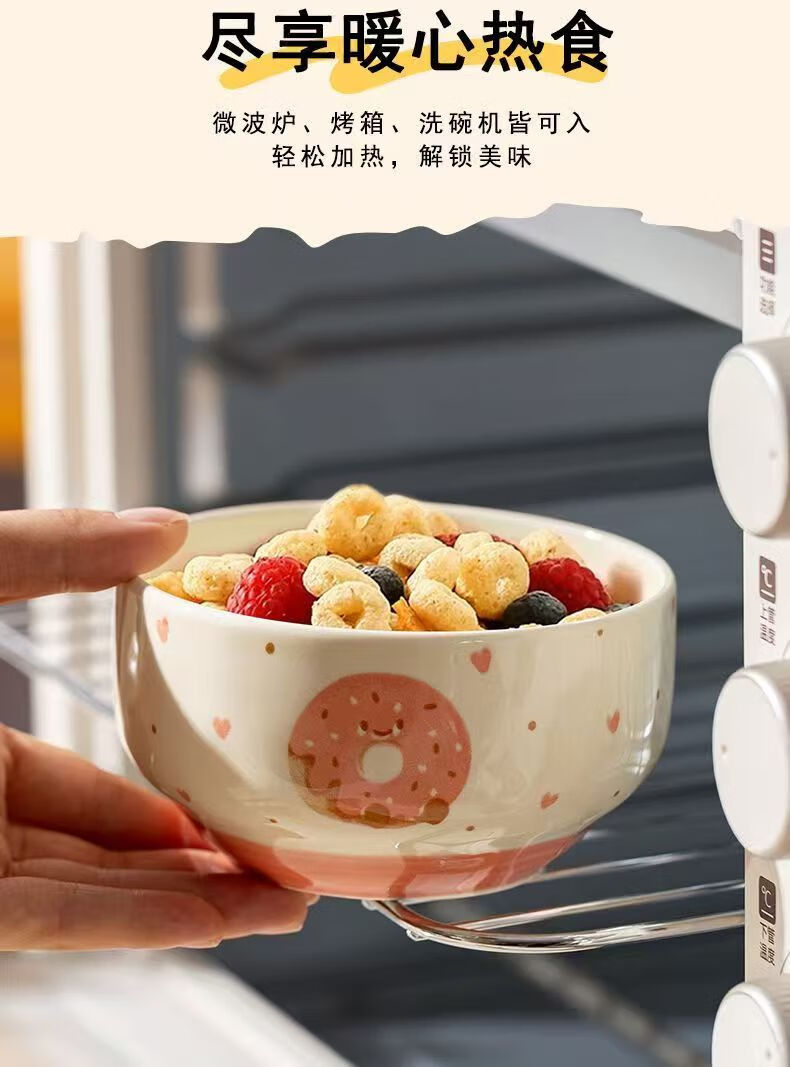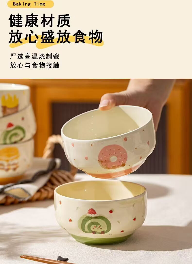 碗家用吃饭碗新款可爱ins风餐具陶瓷釉下彩高颜值简约少女心 【混色】4.5英寸新款奶油碗2只装