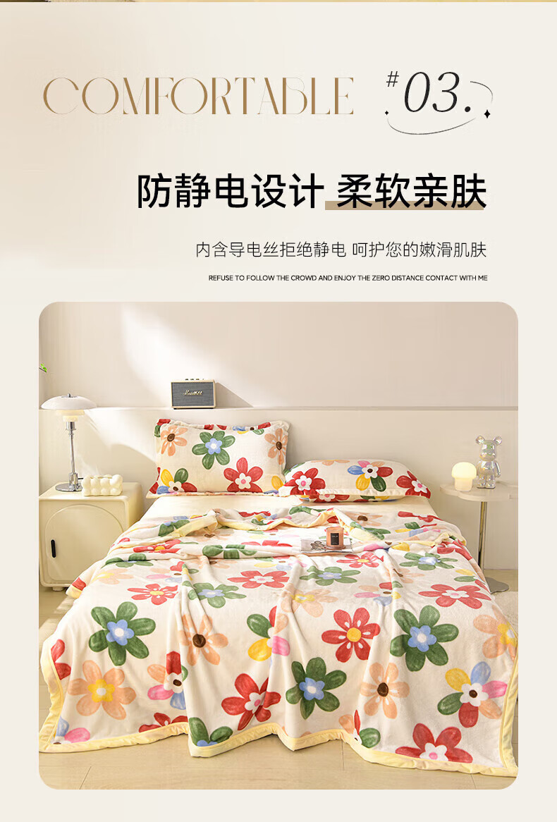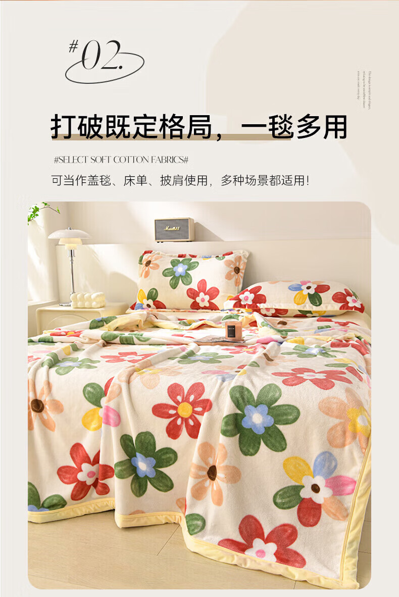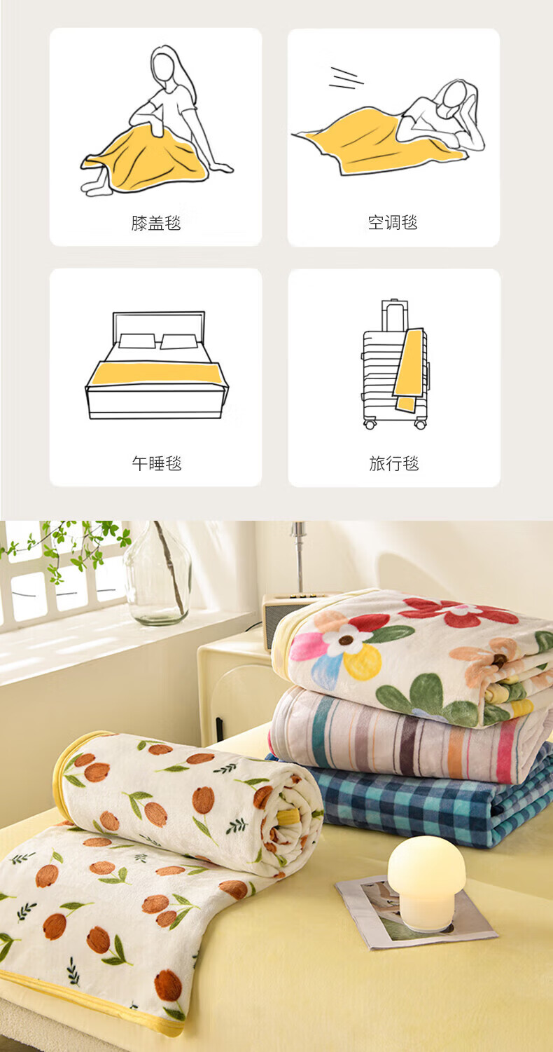 软贝牛奶绒法兰绒毛毯 单双人学生宿舍绒毯床单 午睡空调盖毯子 郁金香 150x200cm单毛毯