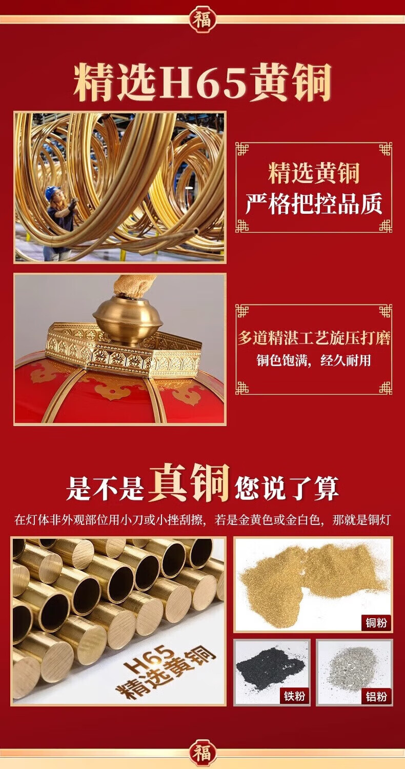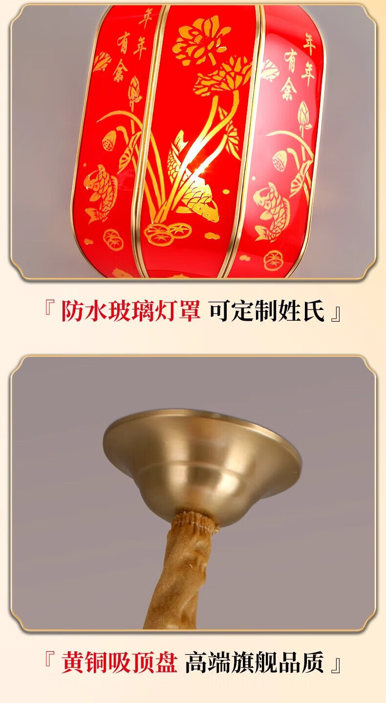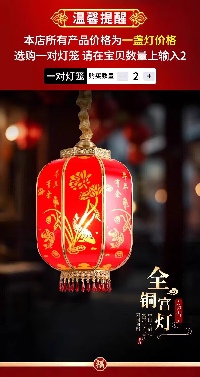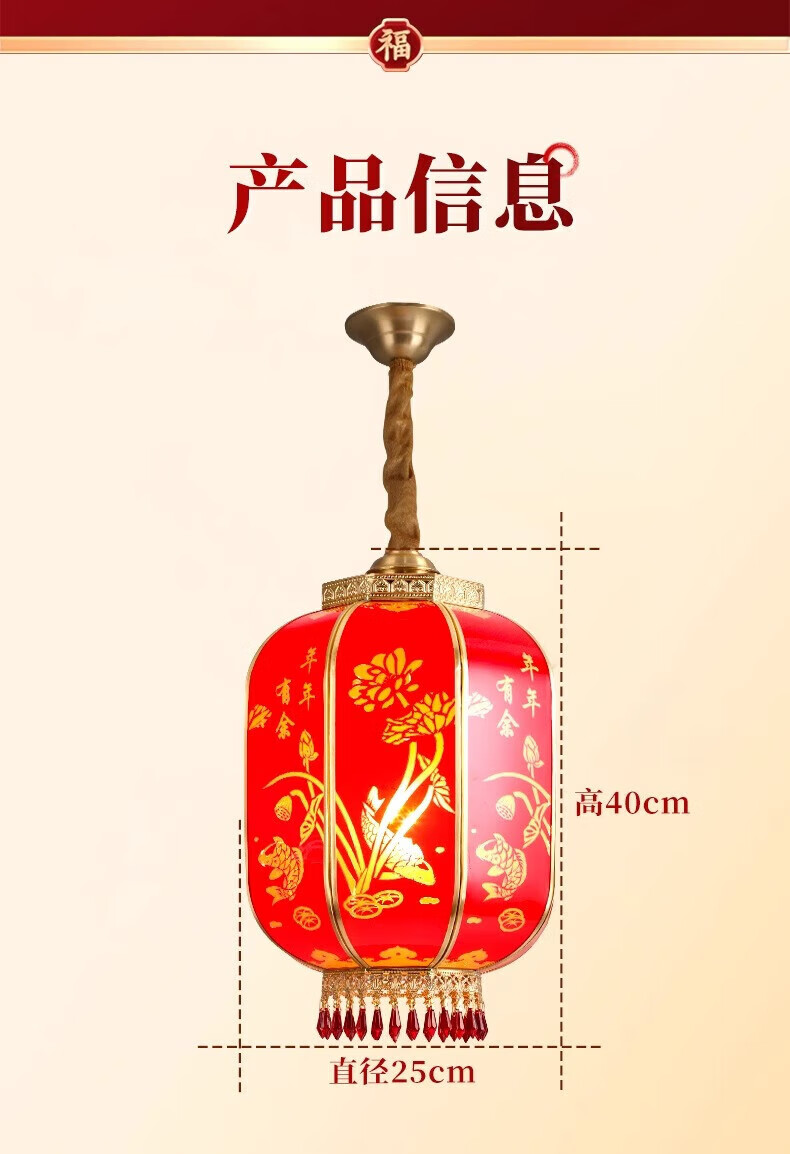 全铜宫灯阳台别墅中式灯笼明清古典福过年春节喜庆大门挂饰灯笼 金福款宫灯-直径25cm-1个全铜