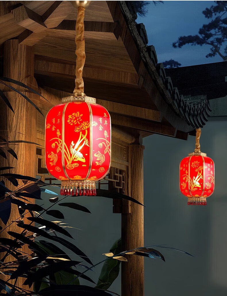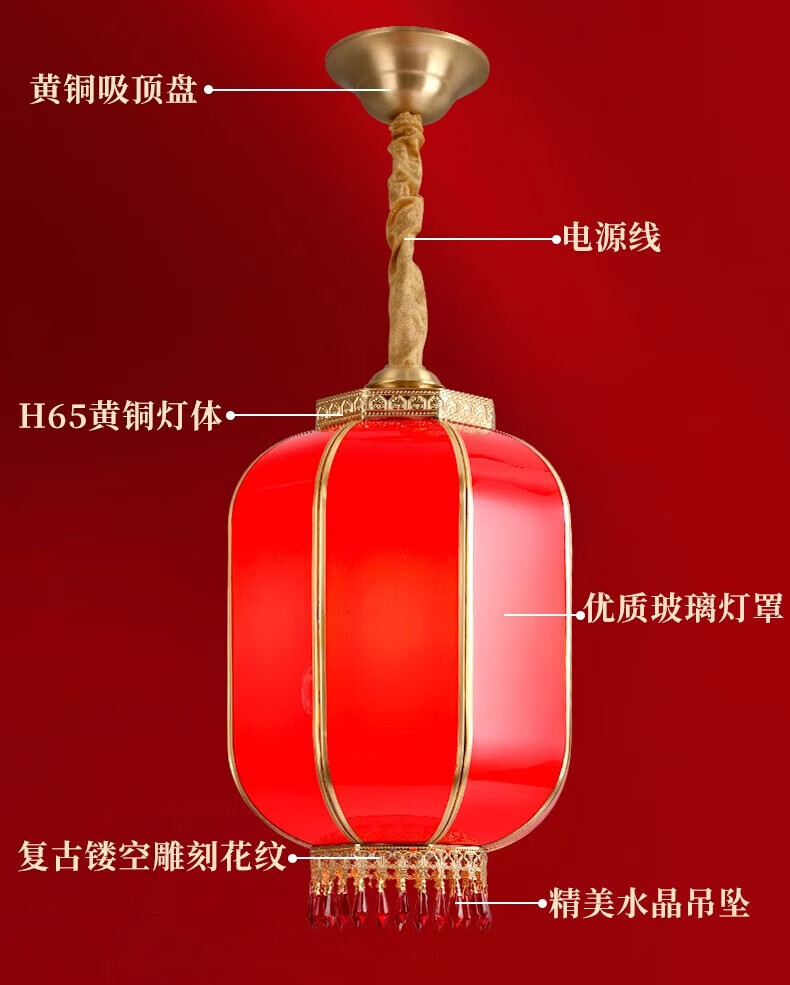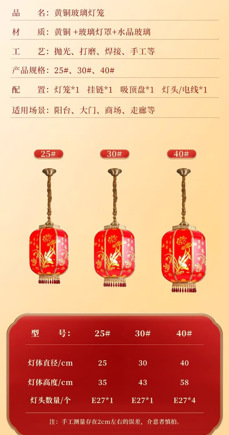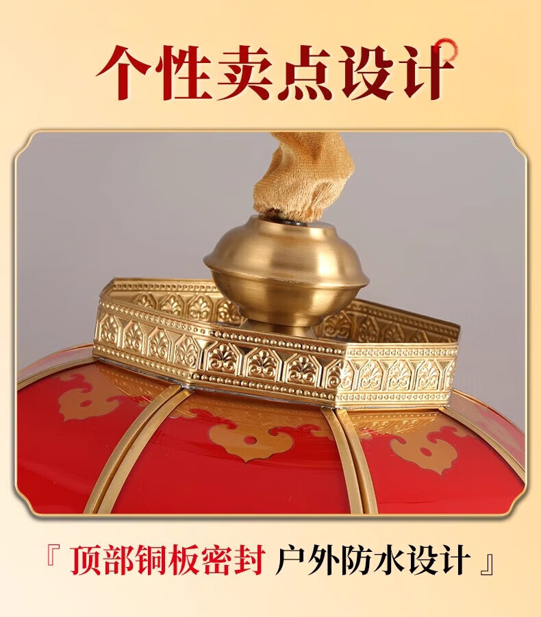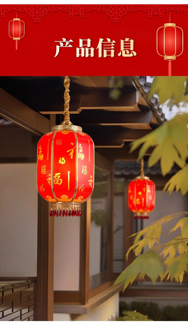 全铜宫灯阳台别墅中式灯笼明清古典福过年春节喜庆大门挂饰灯笼 金福款宫灯-直径25cm-1个全铜