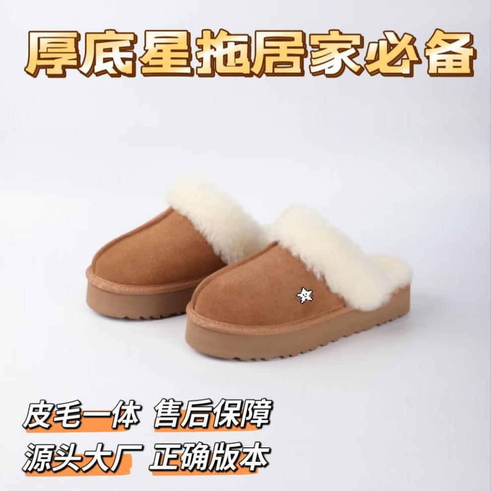 UGG EVERSHEEPSKINS雪地靴UGG厚底星拖包头拖鞋冬季羊皮毛一体棉拖顶版一比一 1:1厚底星拖栗色-带标 脚胖拍大一码 40
