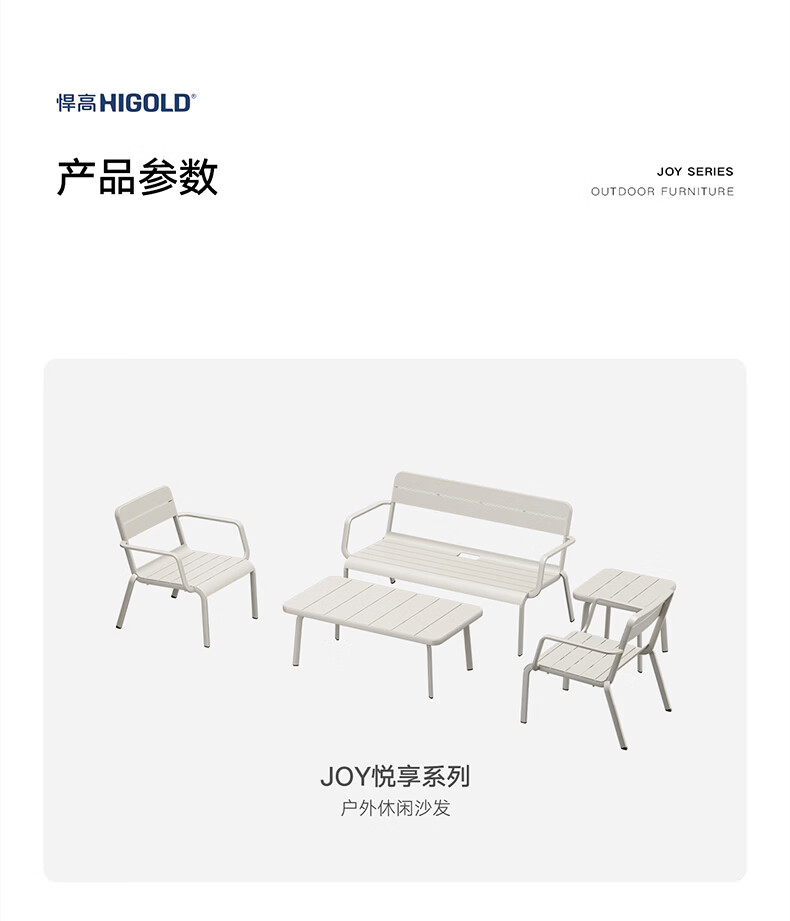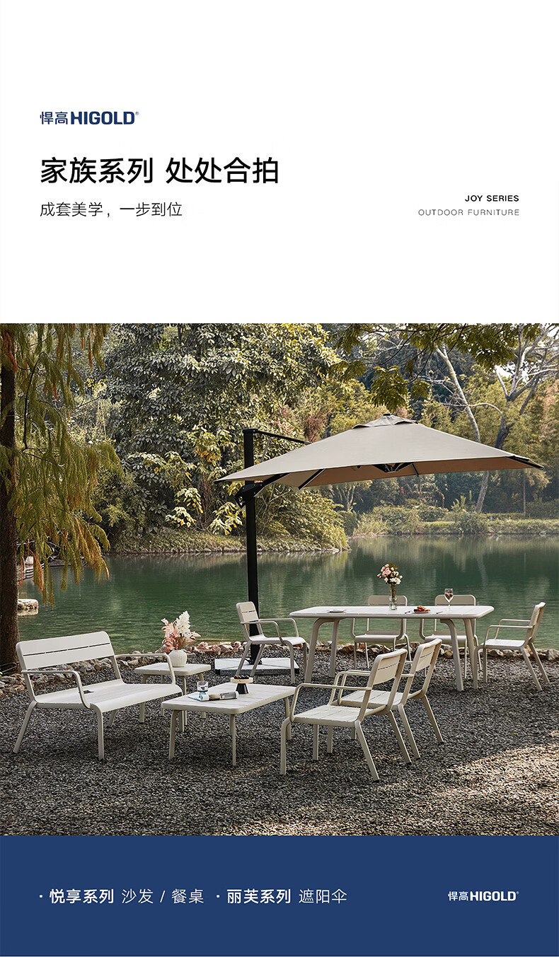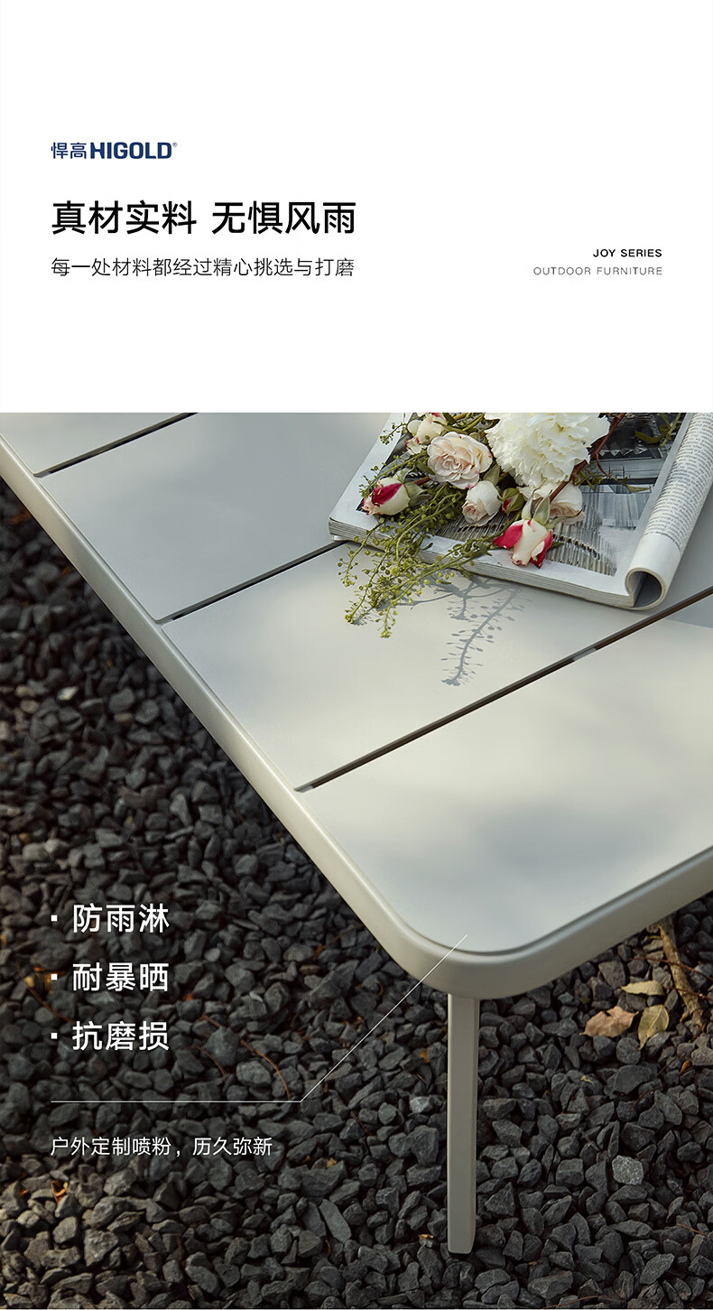 悍高(HIGOLD)户外桌椅室外别墅阳台花园庭院休闲喝茶餐桌椅组合铝合金防雨防晒 1+1+2+茶几+侧几